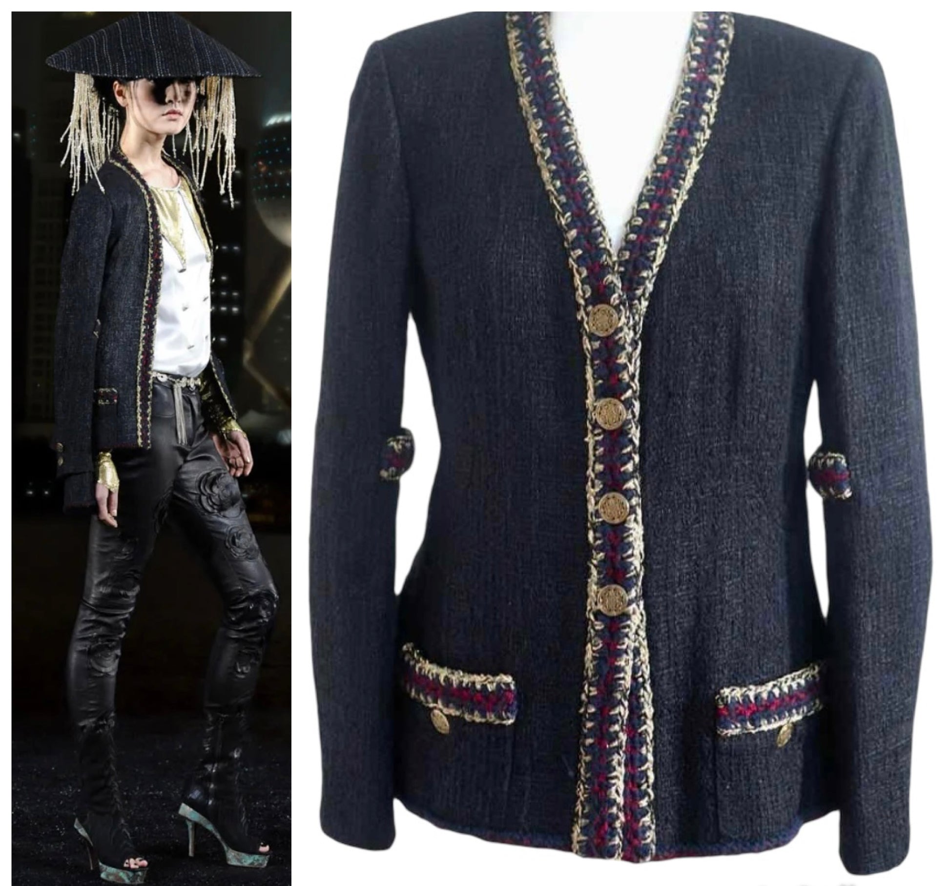 CHANEL 10A PARIS-SHANGHAI BLACK TWEED BRAIDED TRIM JACKET FR 34