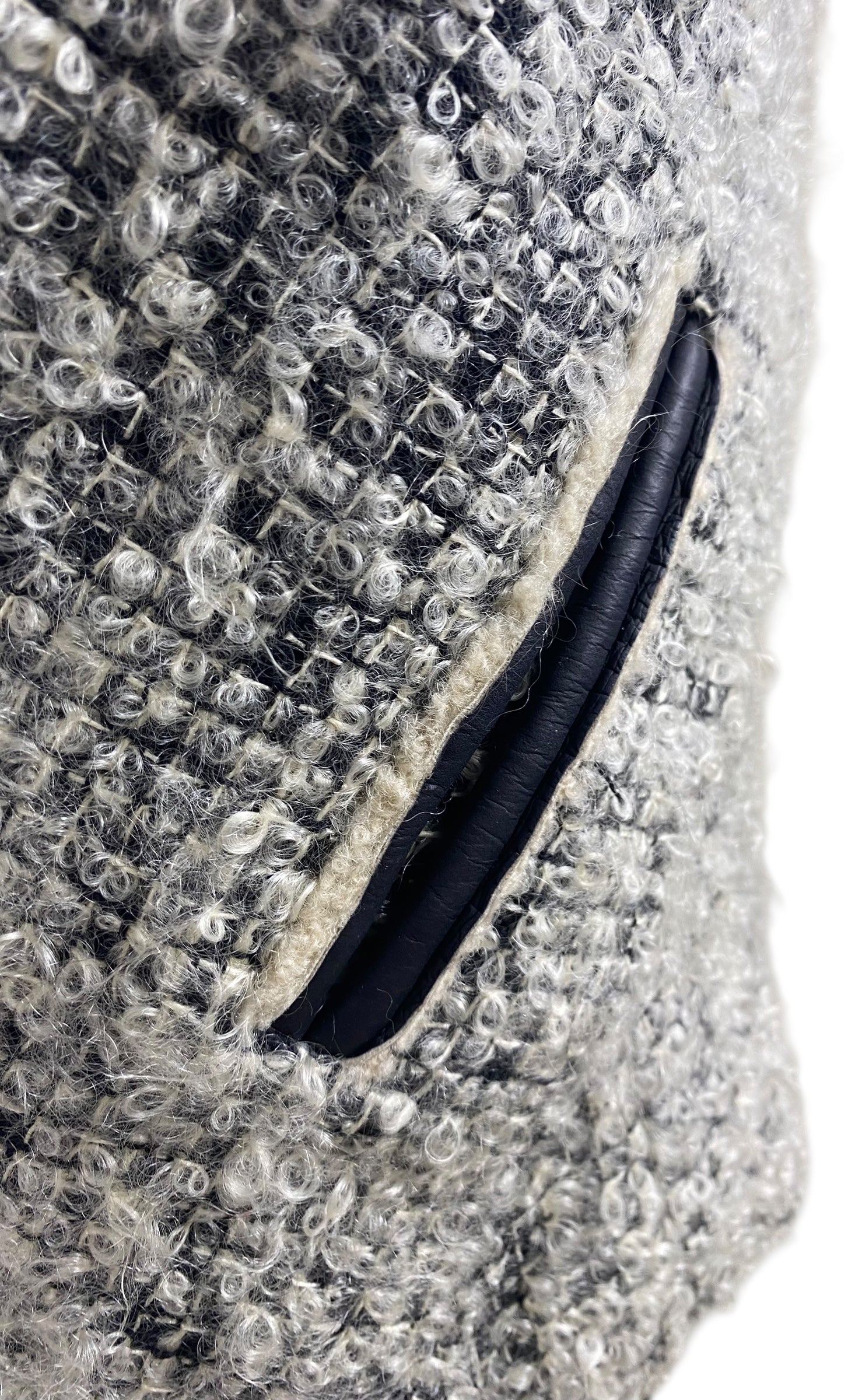Chanel 10A Shanghai Shearling Tweed CC Grey Black Leather Trim Jacket Coat FR 36