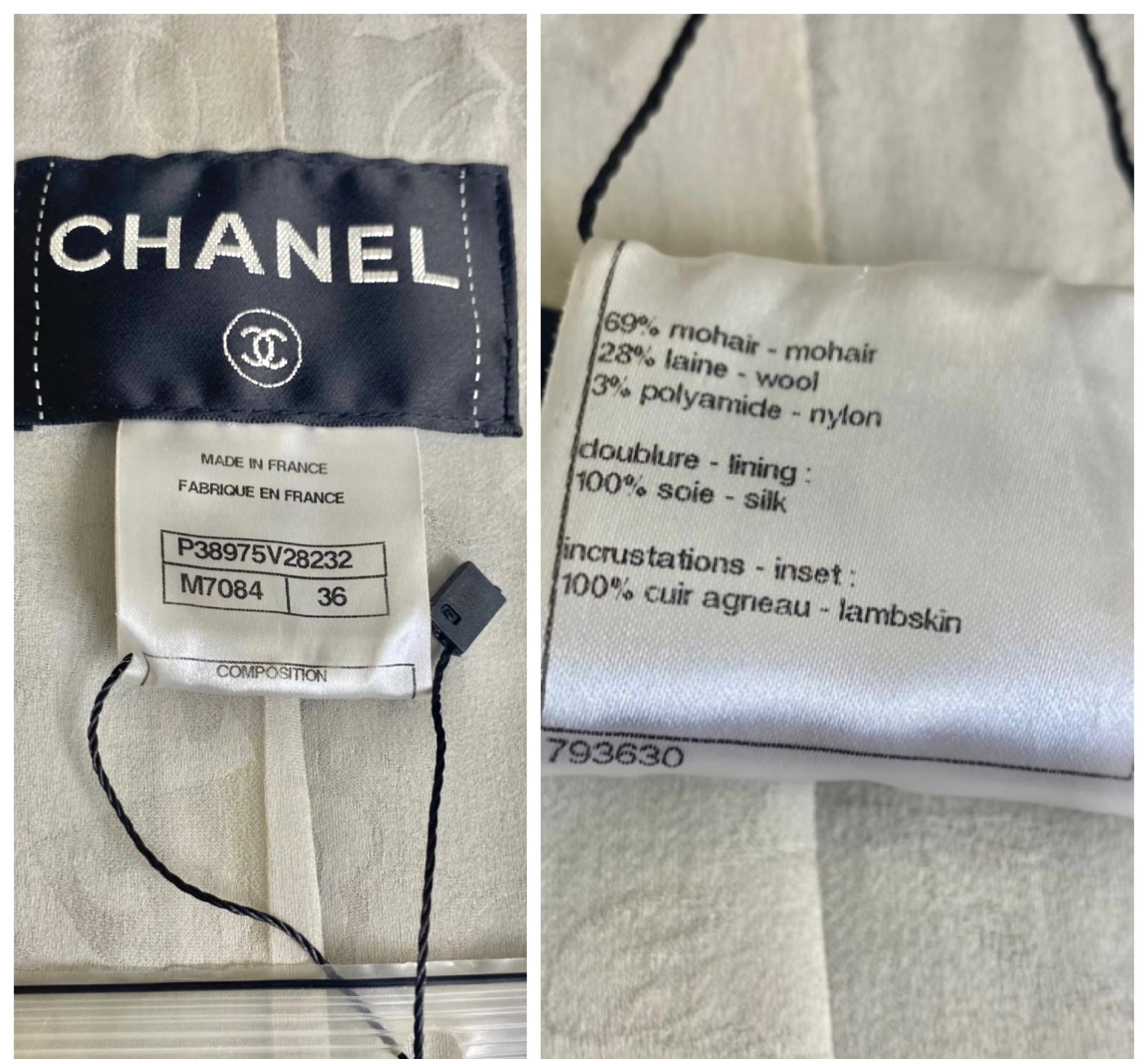 Jacket in Excellent Condition, light darkening at under arms & Silk Edges, Otherwise an amazing piece! Includes Full Set of Spare Parts! Spare Fabric Sample, Silk Sample, Extra Button, and Extra CC TurnLock Hardware.