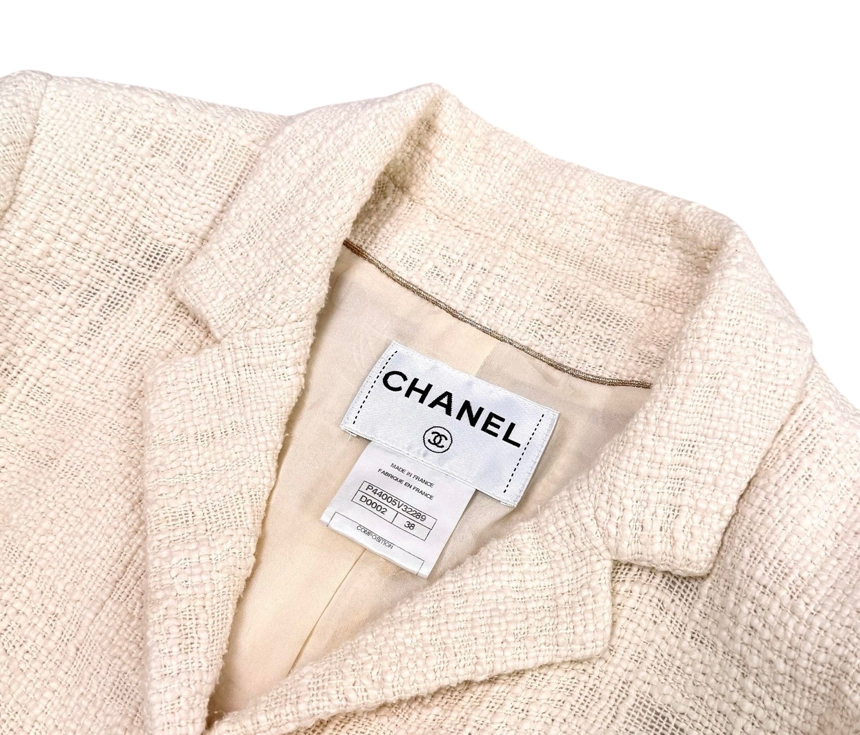 Chanel 12A Paris-Bombay Runway Ivory Ecru Cotton Blazer Long Jacket FR 38