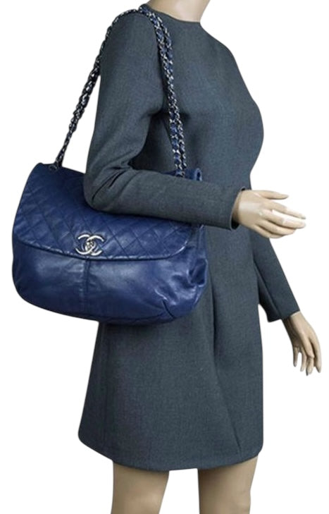 Chanel 13C Blue Lambskin Quilted Large Trianon Messenger Flap Handbag