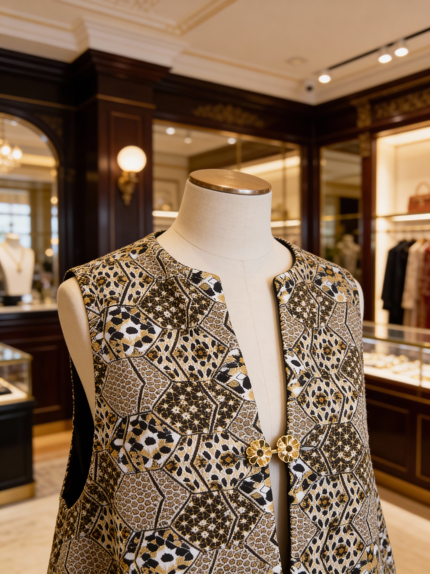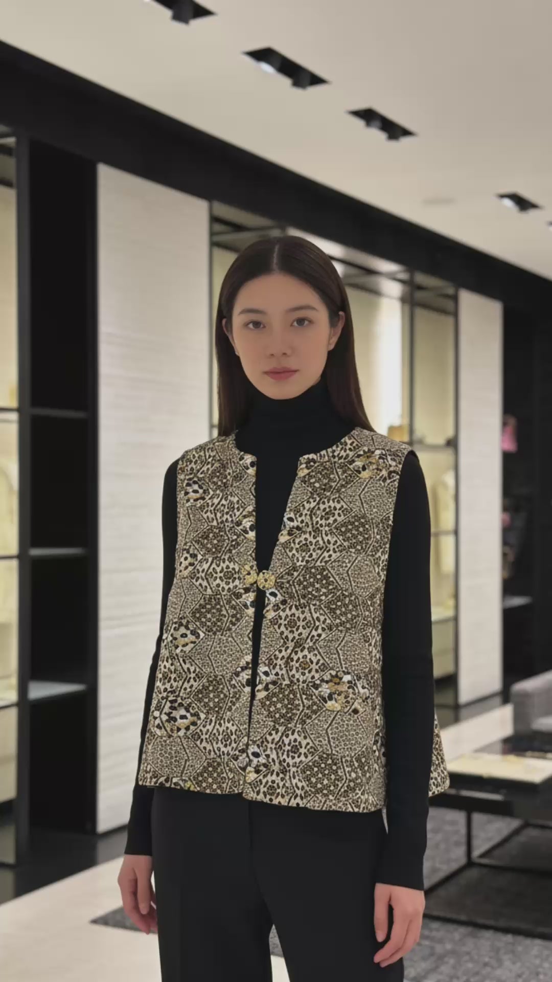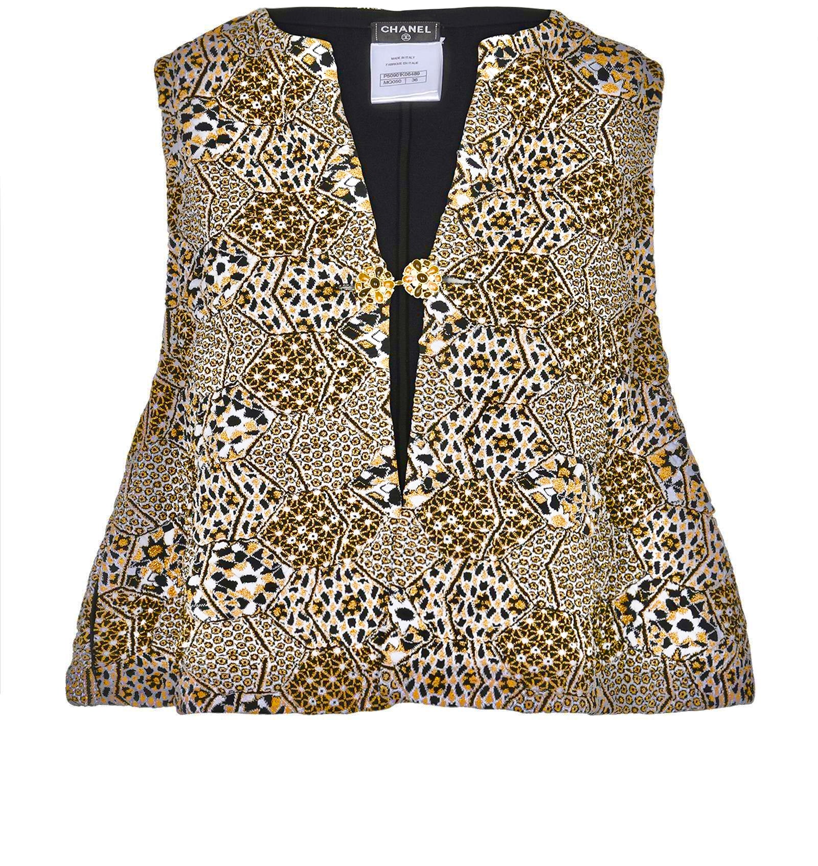 Chanel 15C Dubai Runway Geometric Animal Print Metallic Waistcoat Vest FR 40