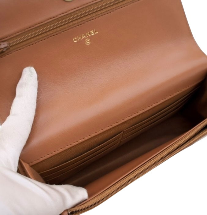Chanel 19 Caramel Lambskin 21P Wallet On Chain WOC Mixed Metal Hardware