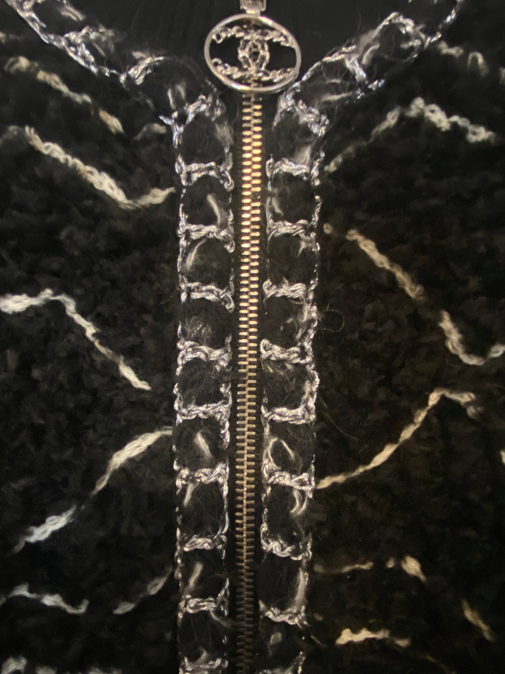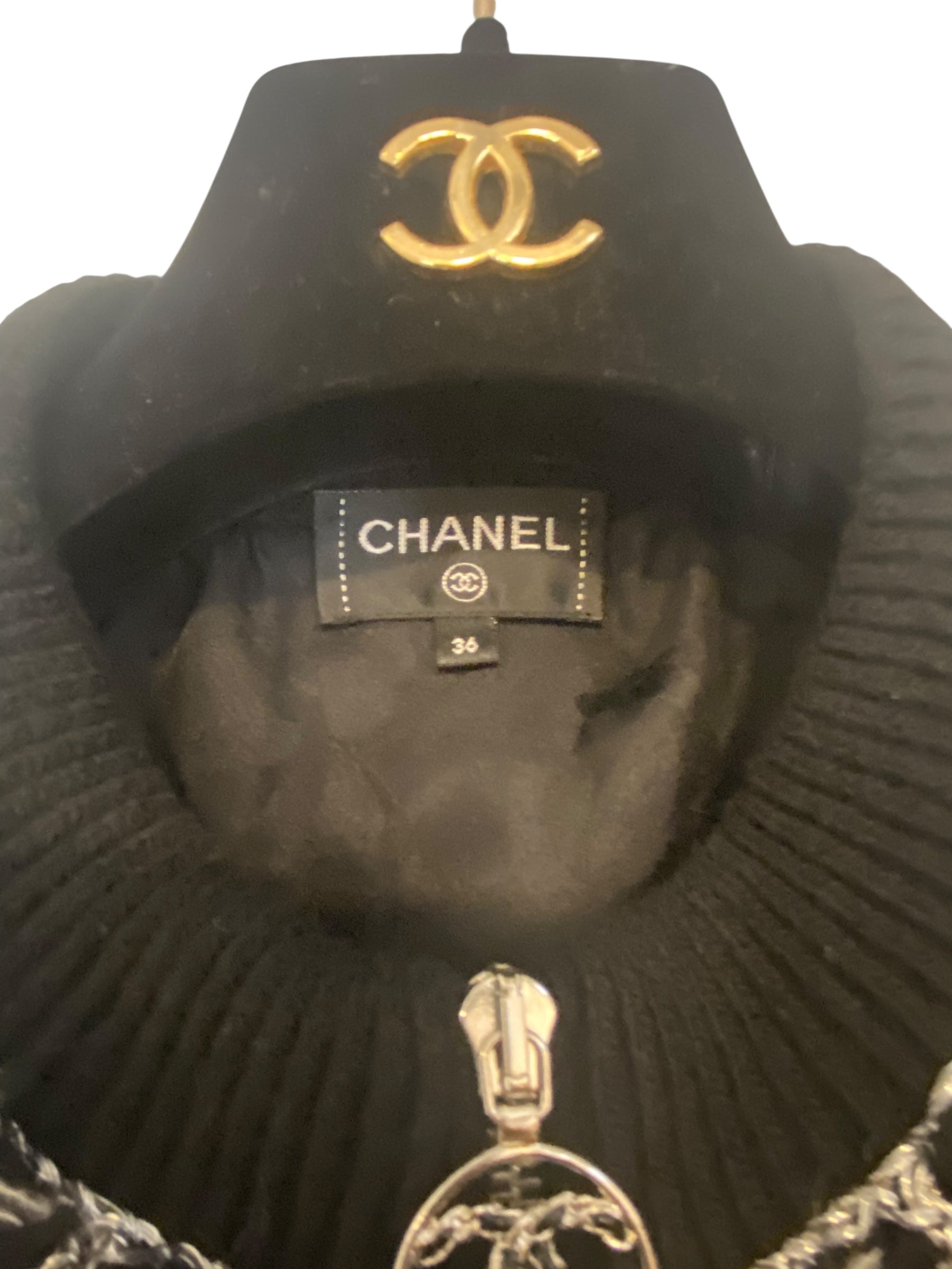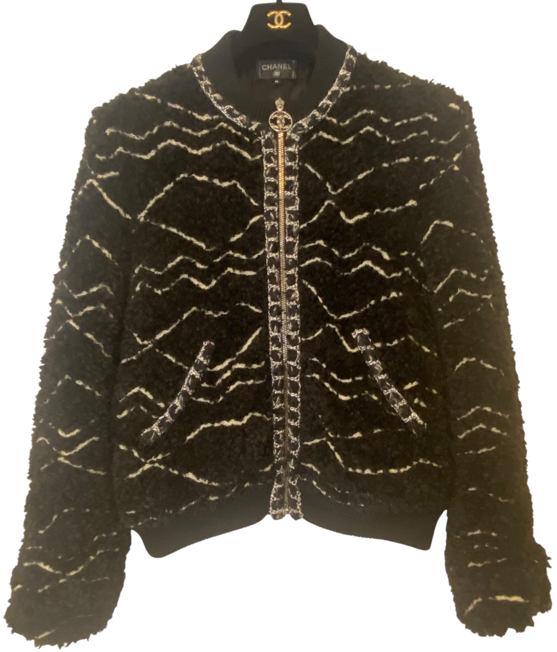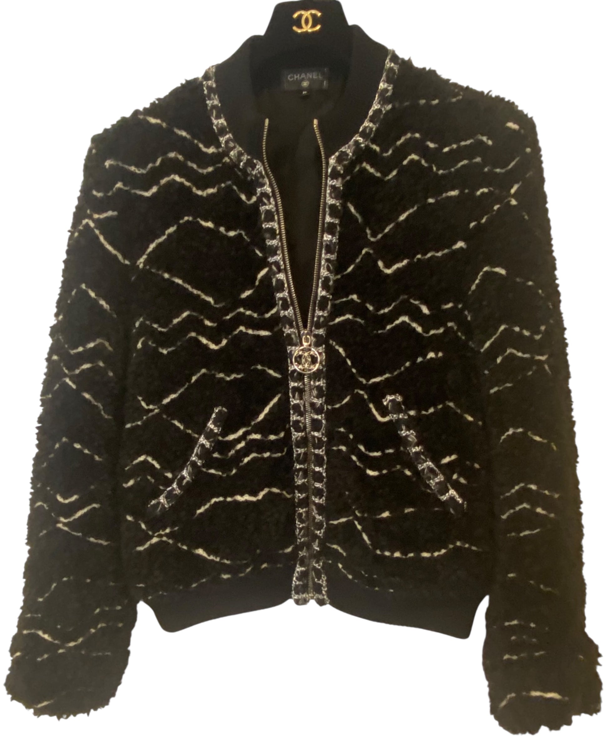 CHANEL 19B Black Alpaca CC Zipper Bomber Jacket Coat FR 36