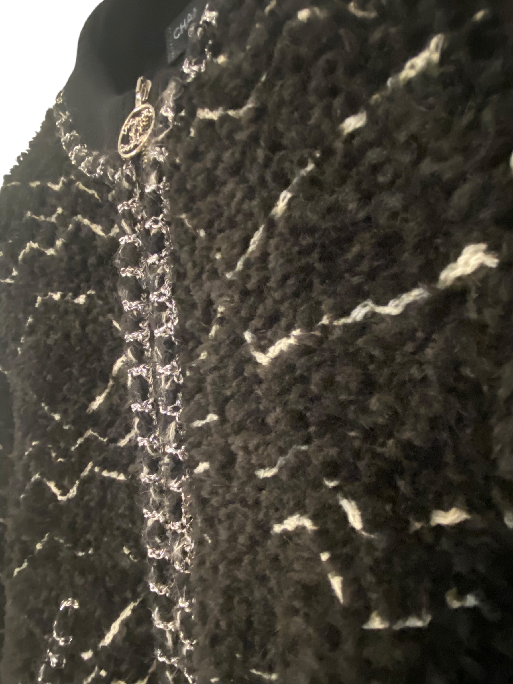 This fluffy material has a lovely thickness and the rounded shape typical of CHANEL makes this soft jacket really special. With alpaca blended in, it’s super warm. Perfect for the upcoming chilly season.