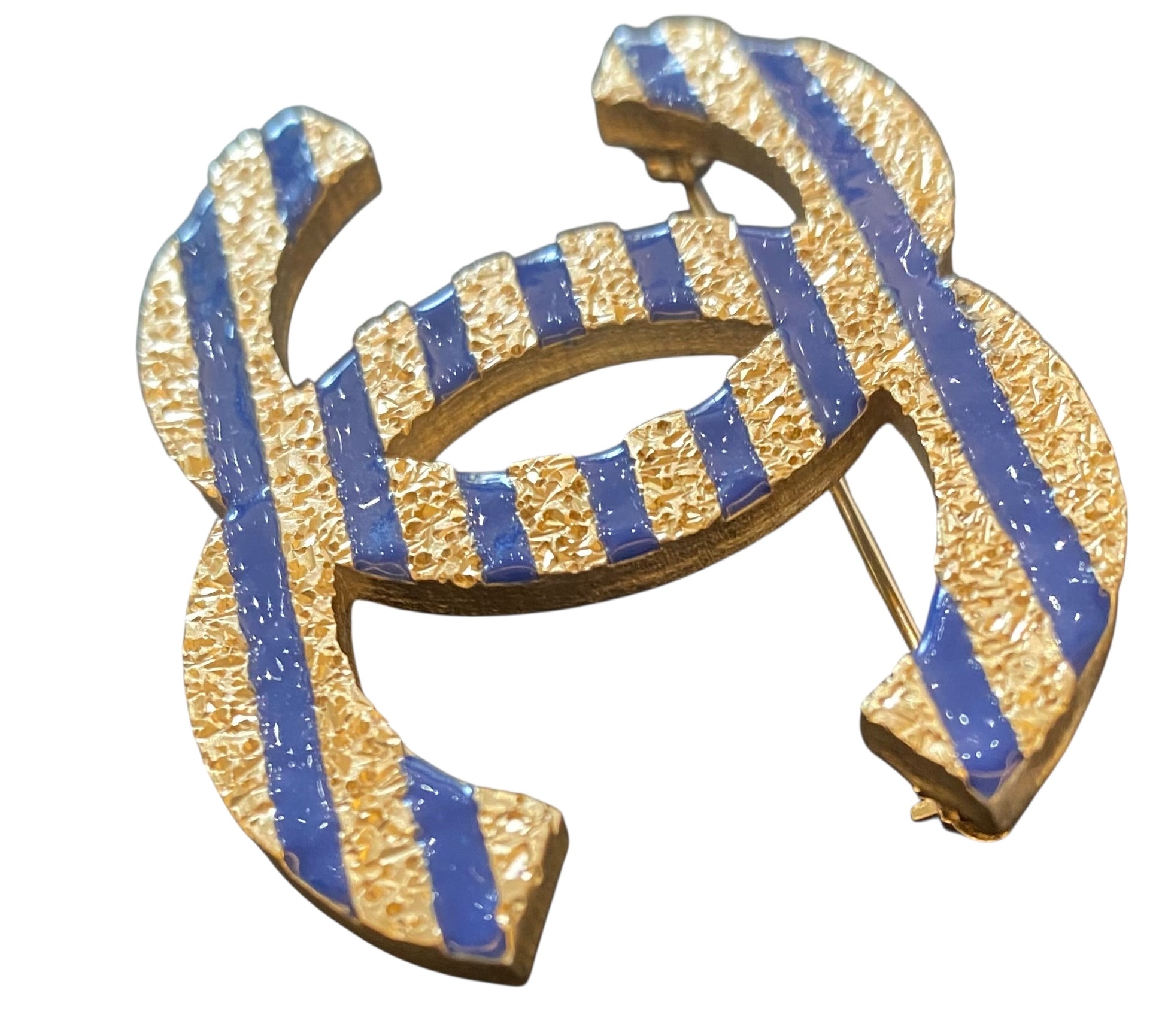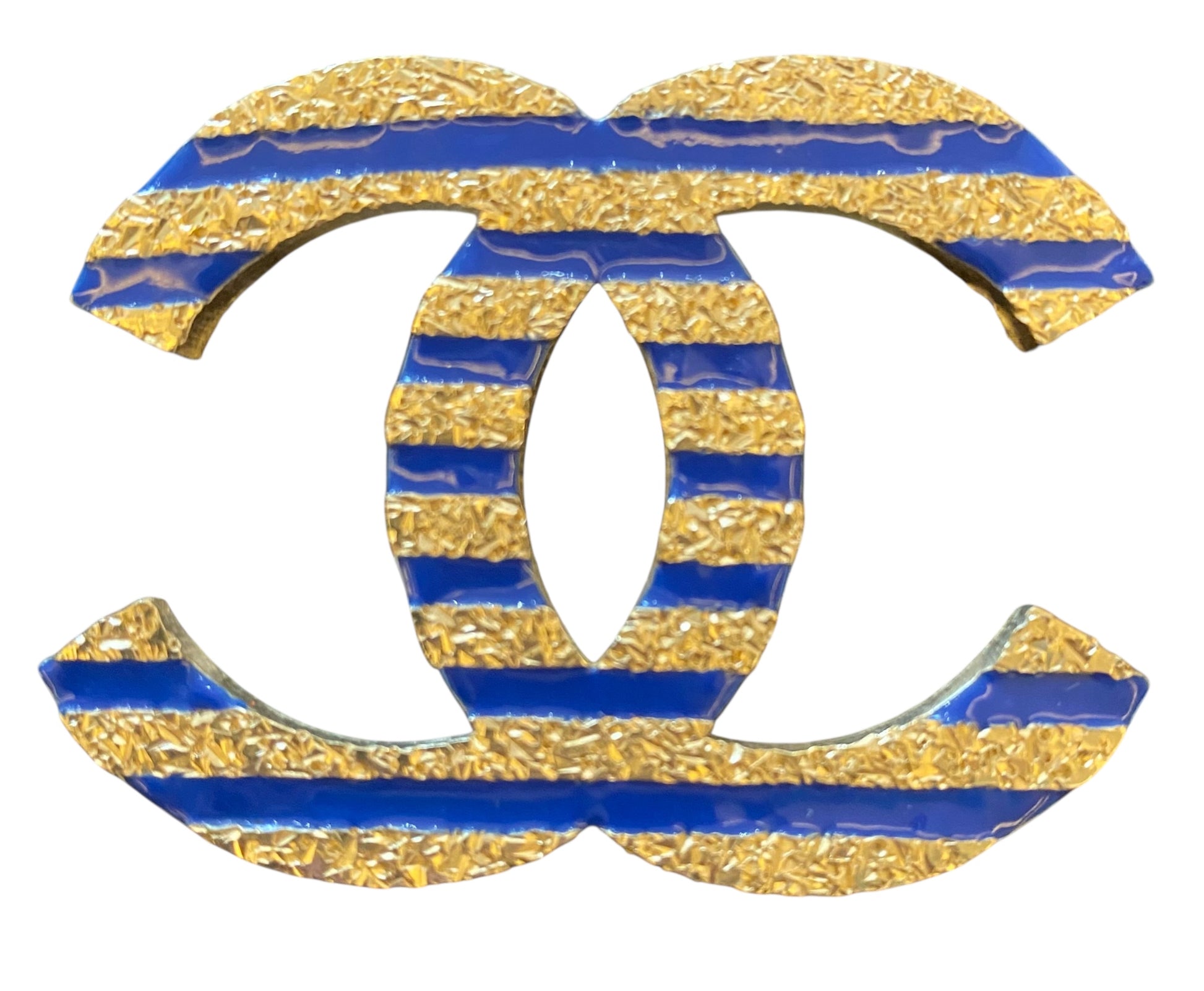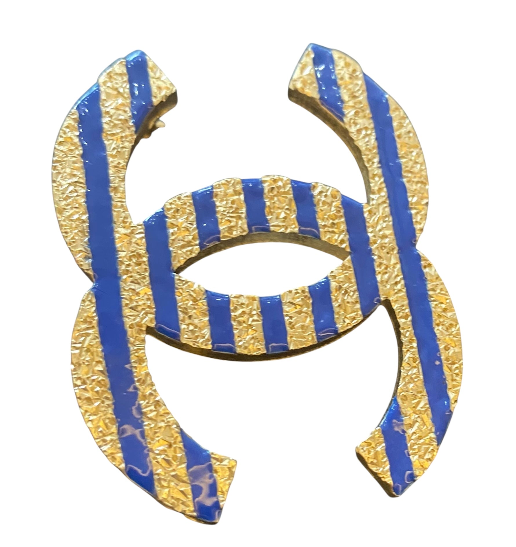 Chanel 19C La Pausa Large Blue Gold Stripe CC Brooch