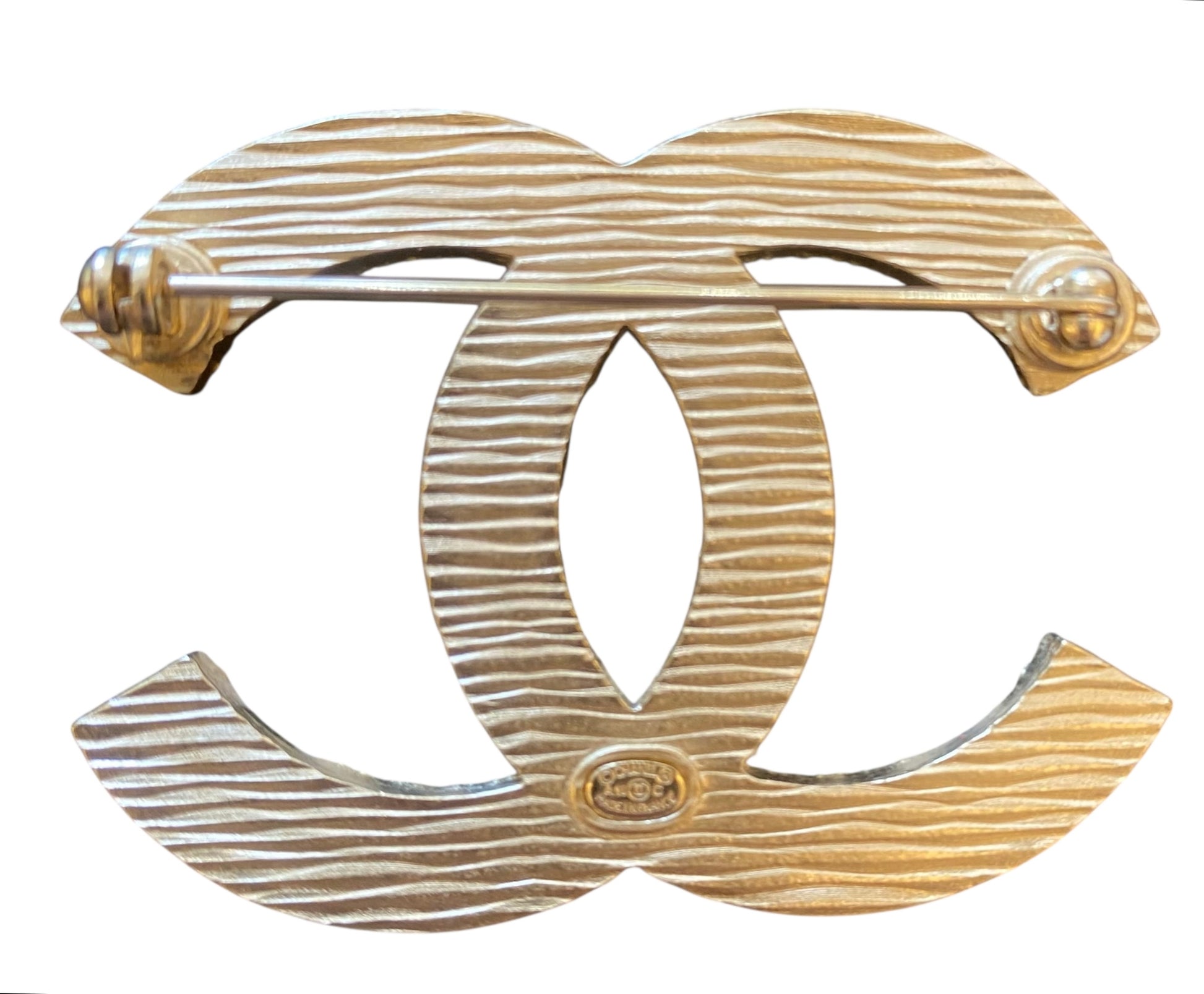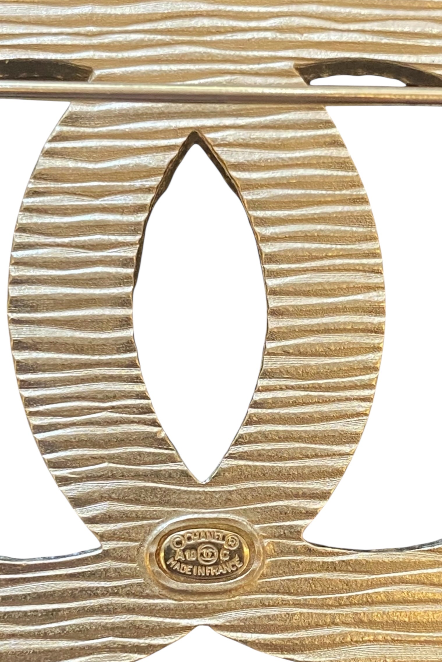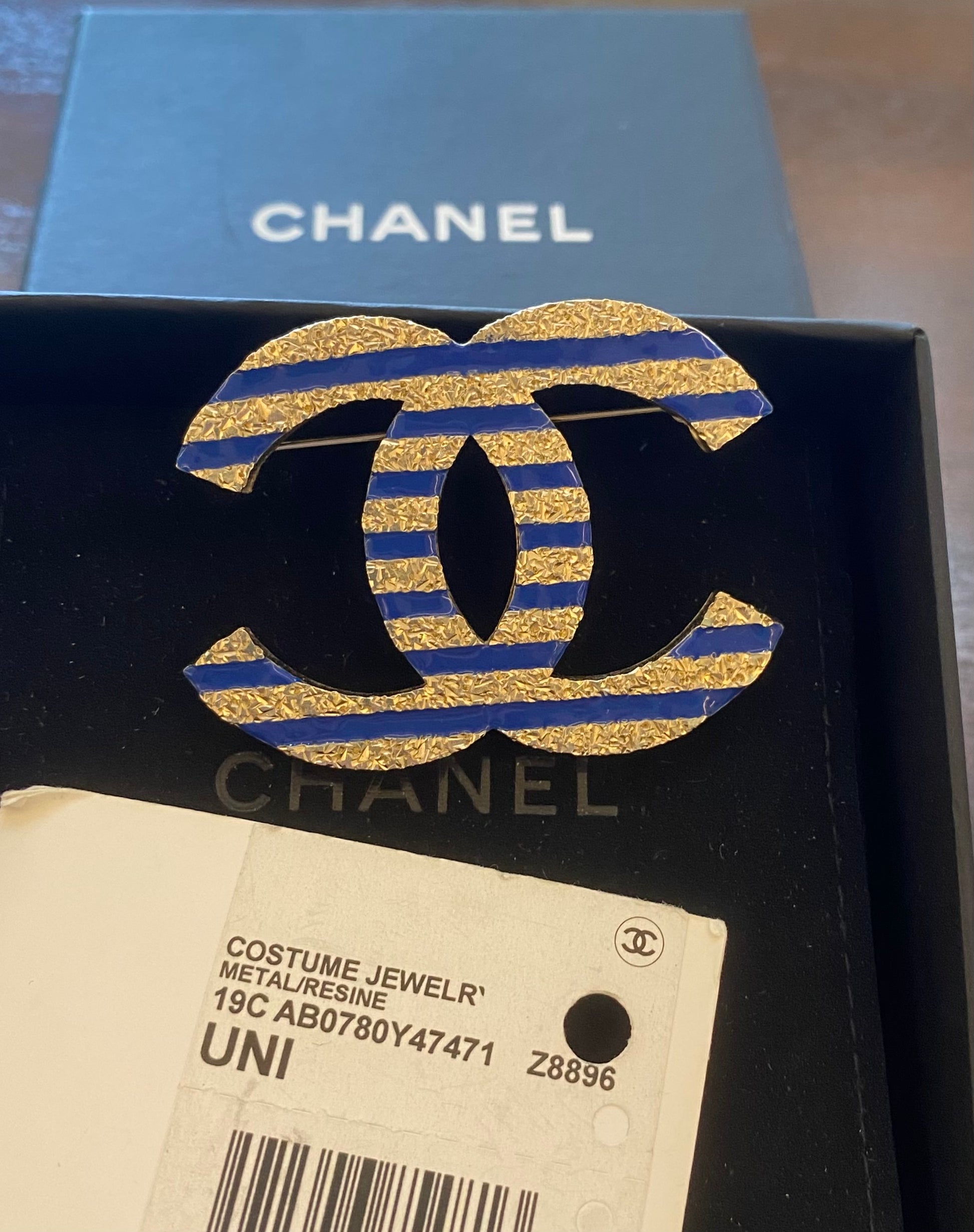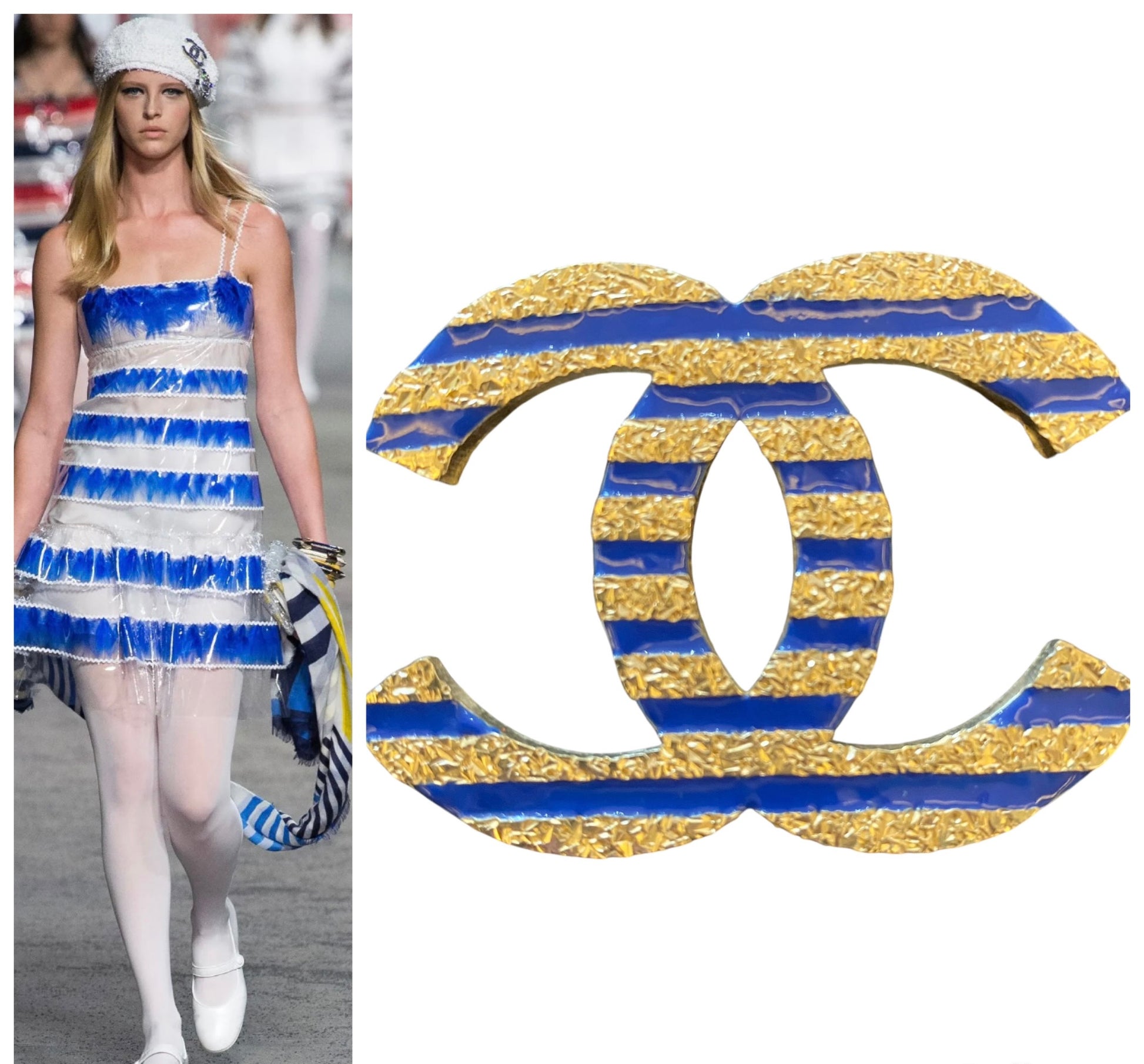 Chanel 19C La Pausa Large Blue Gold Stripe CC Brooch