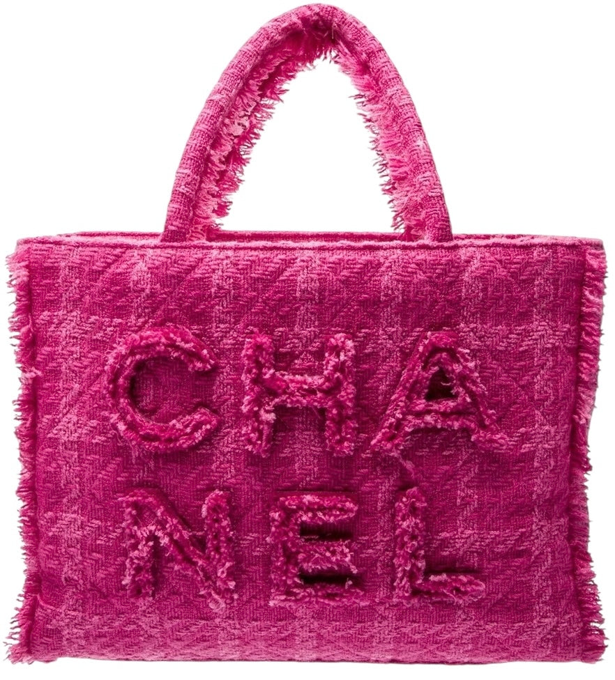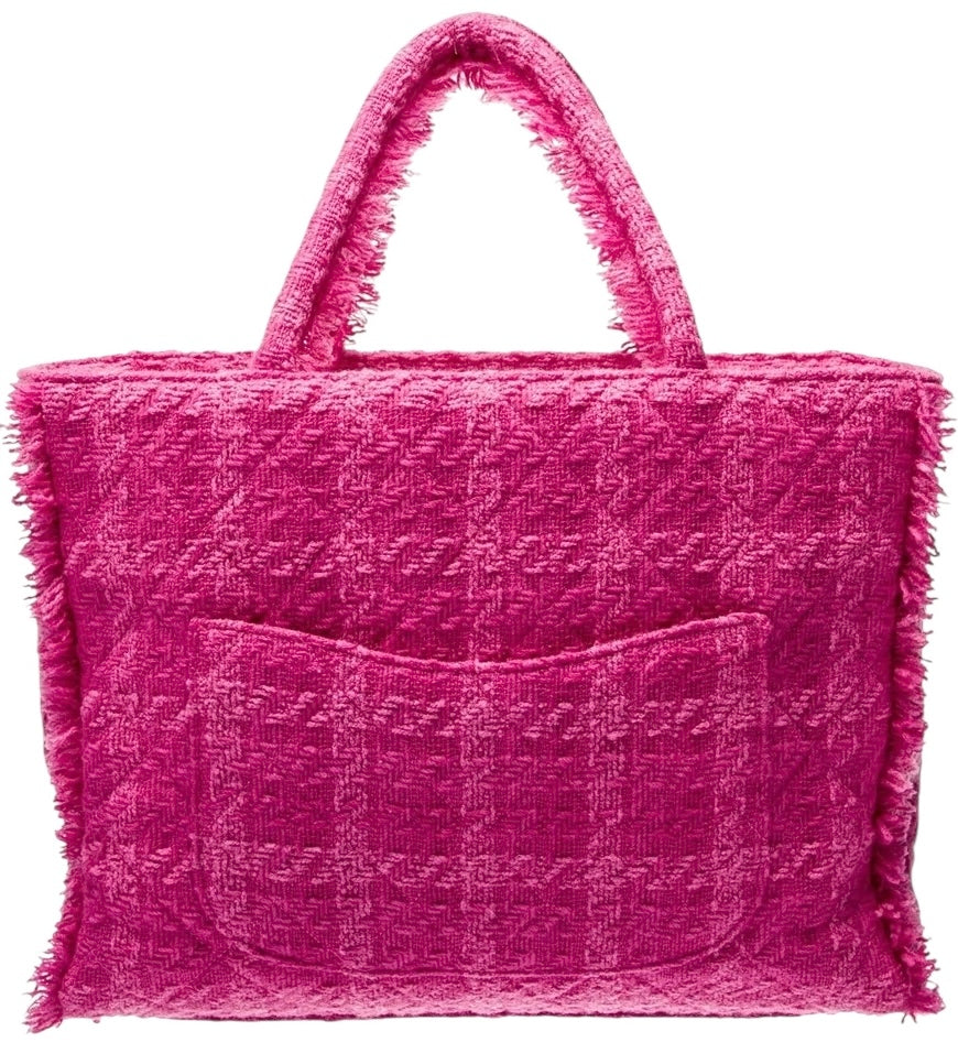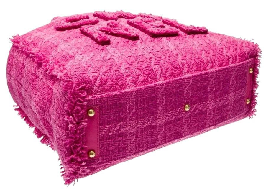 Chanel 19K Giant Large Logo Pink Fuscia Wool Tweed Shopping Bag GHW