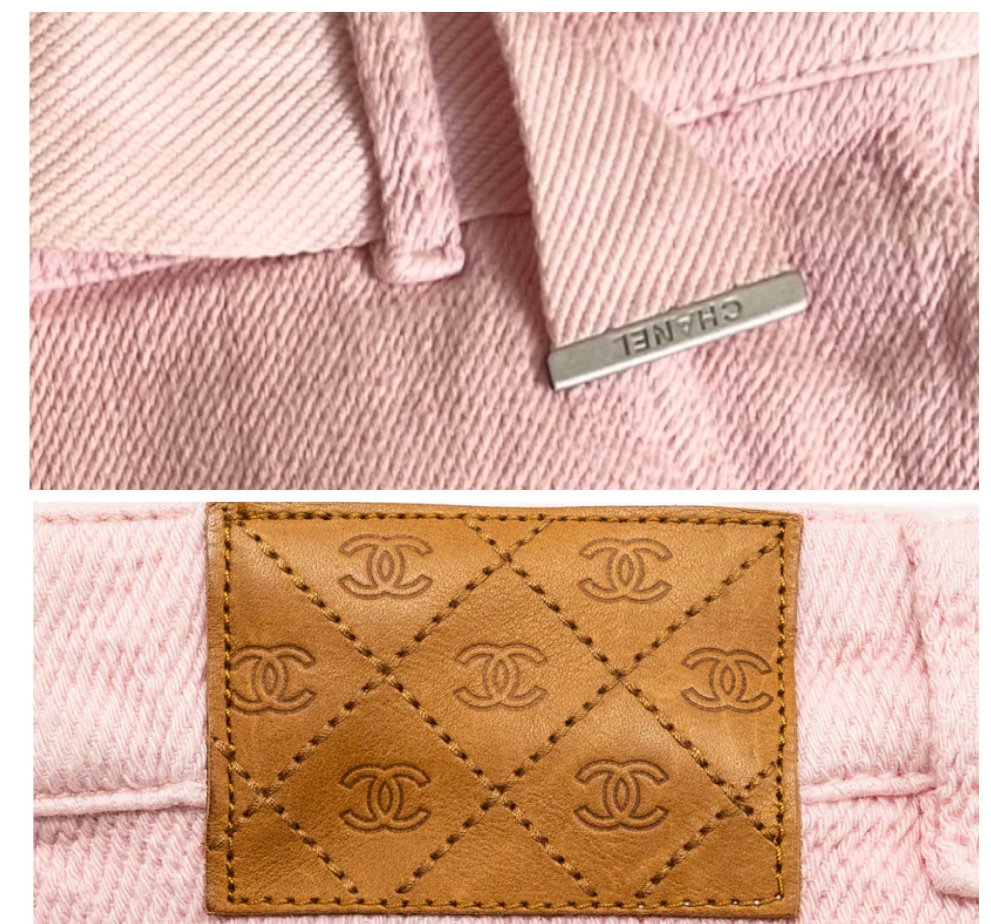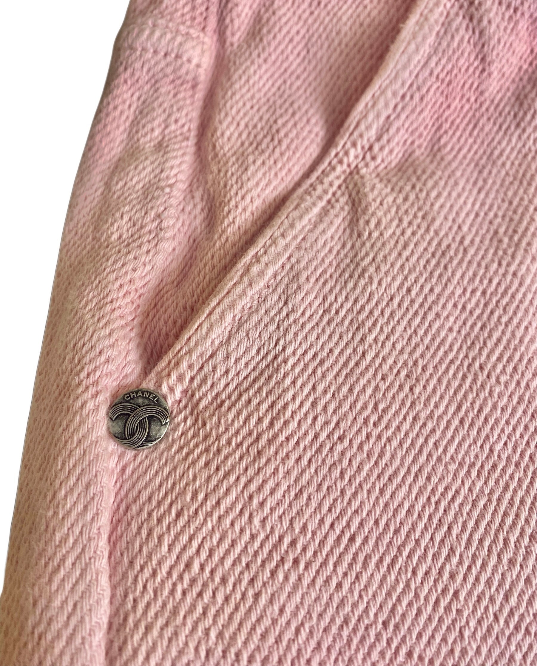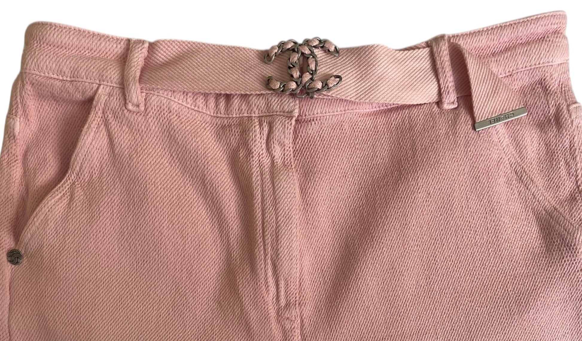 Chanel 19S Sand by the Sea CC Buckle Light Pink Cotton Wide Leg Jeans FR 44