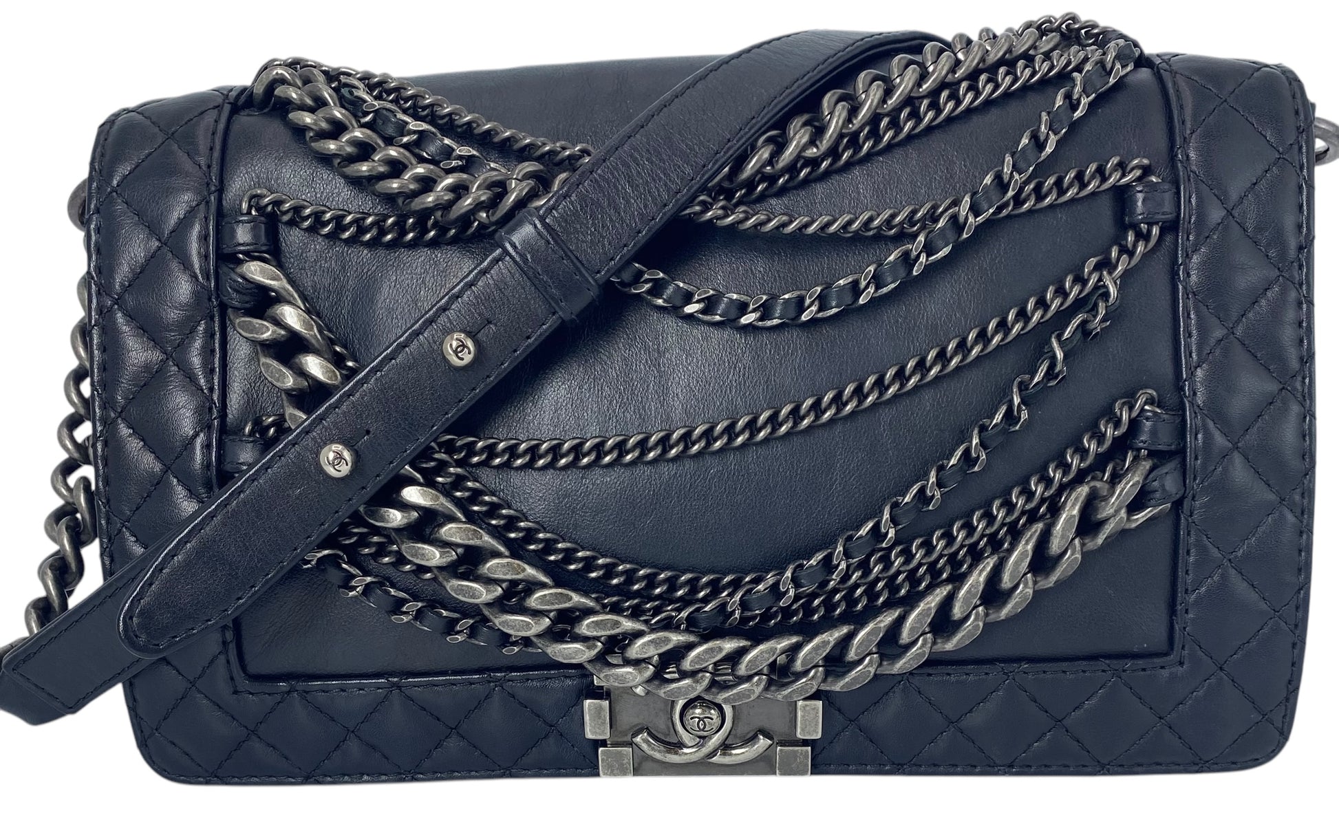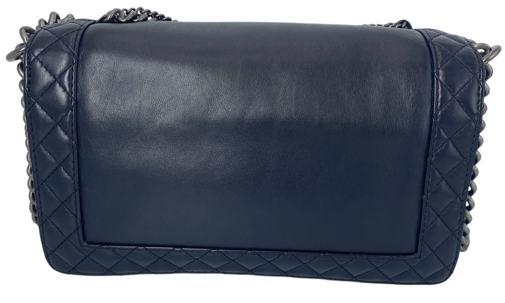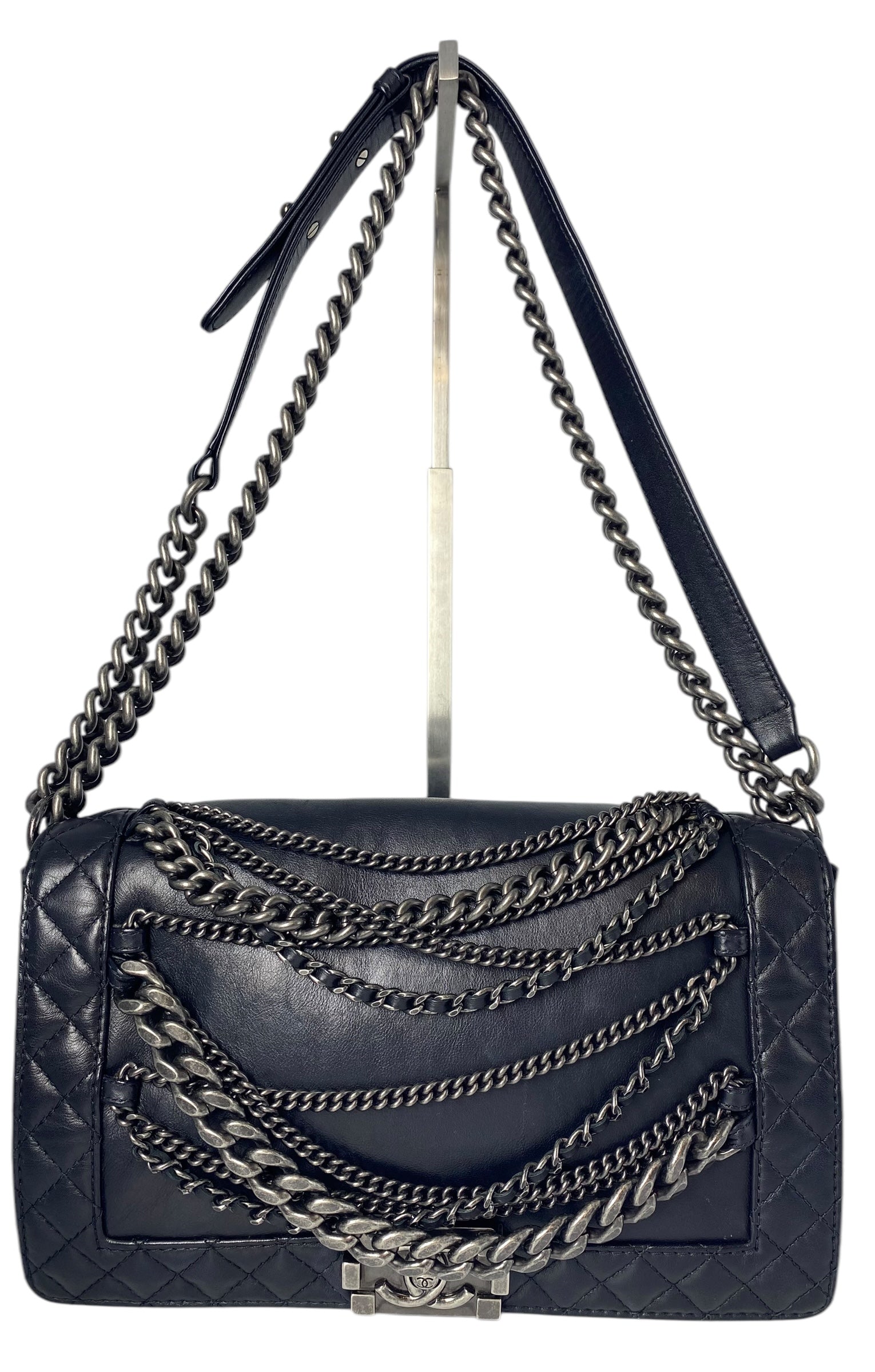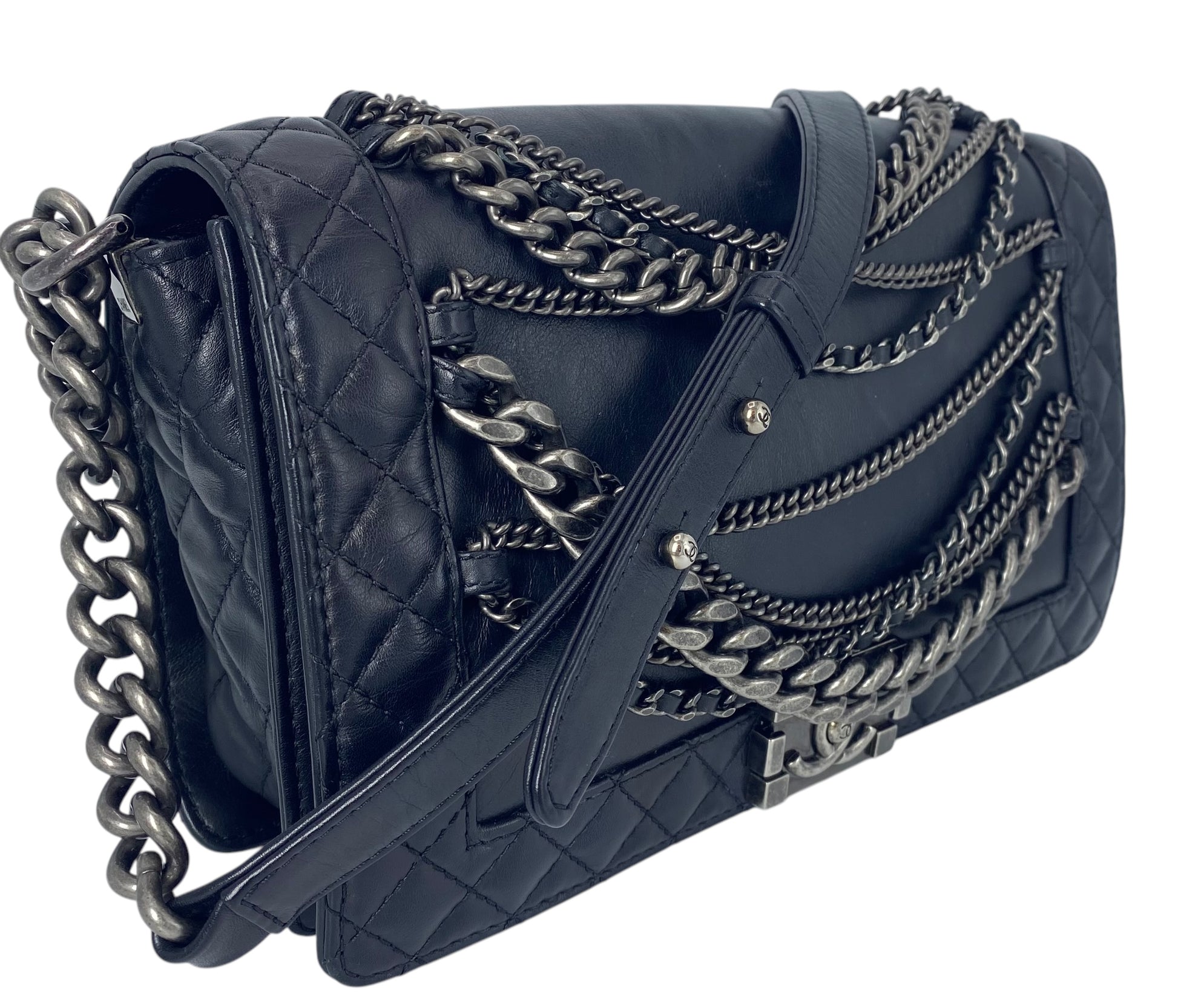 Chanel 2013 Enchained Boy Bag Black Leather Medium Flap Bag