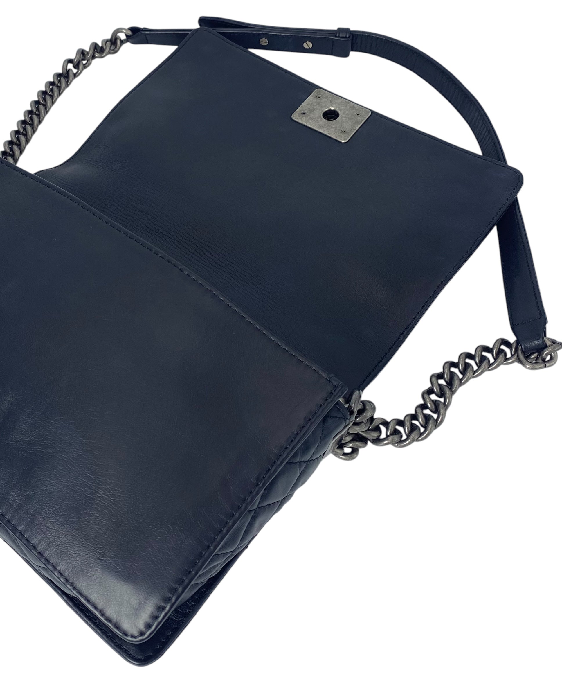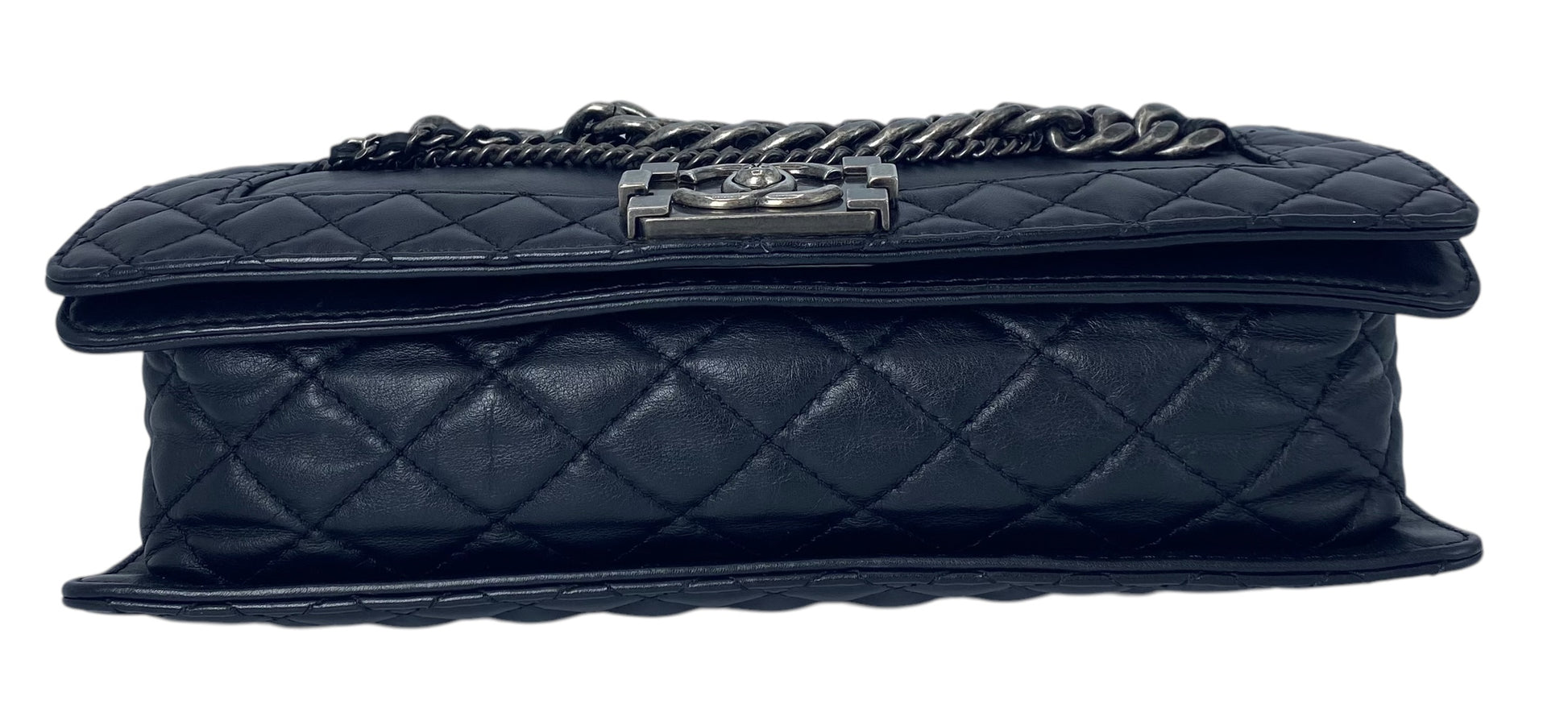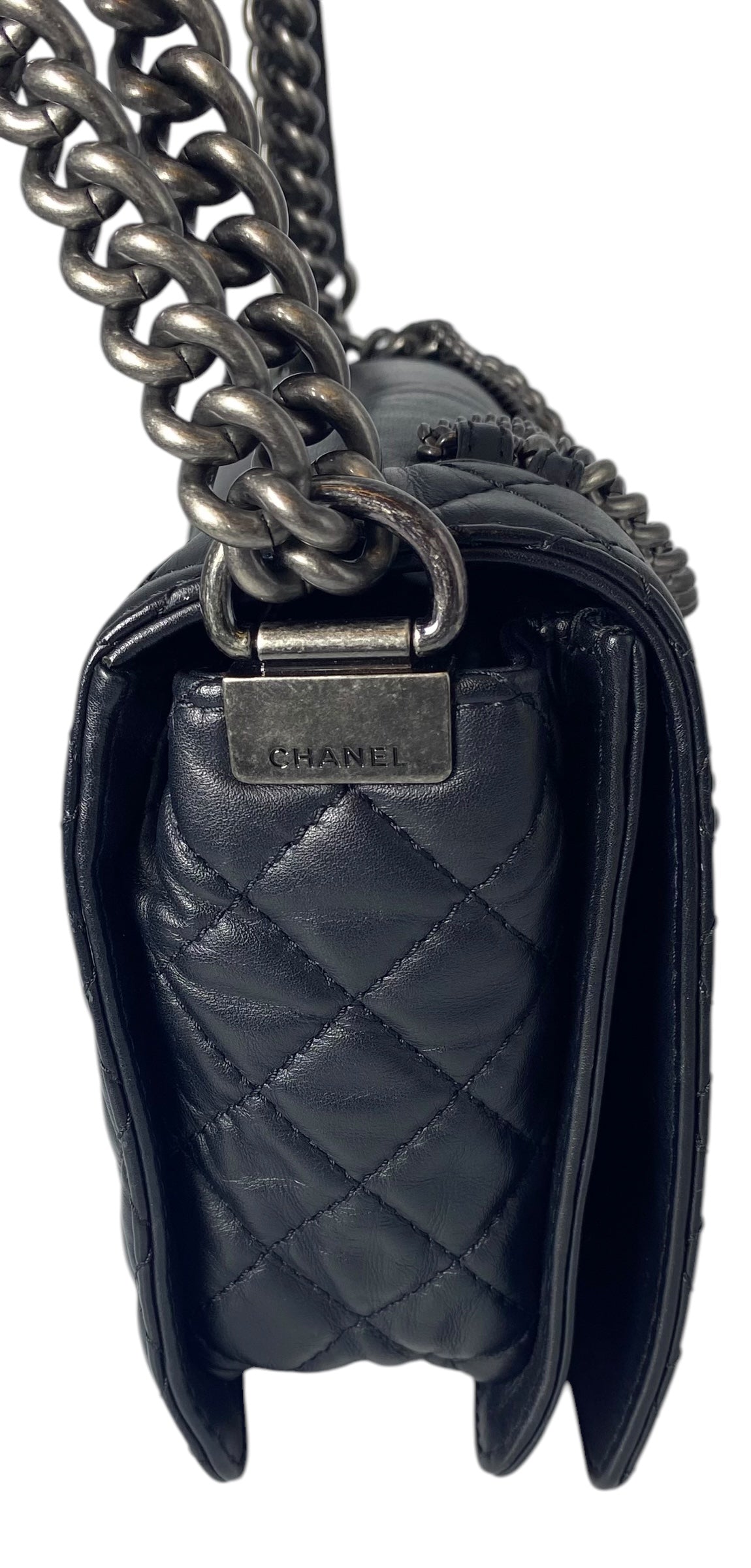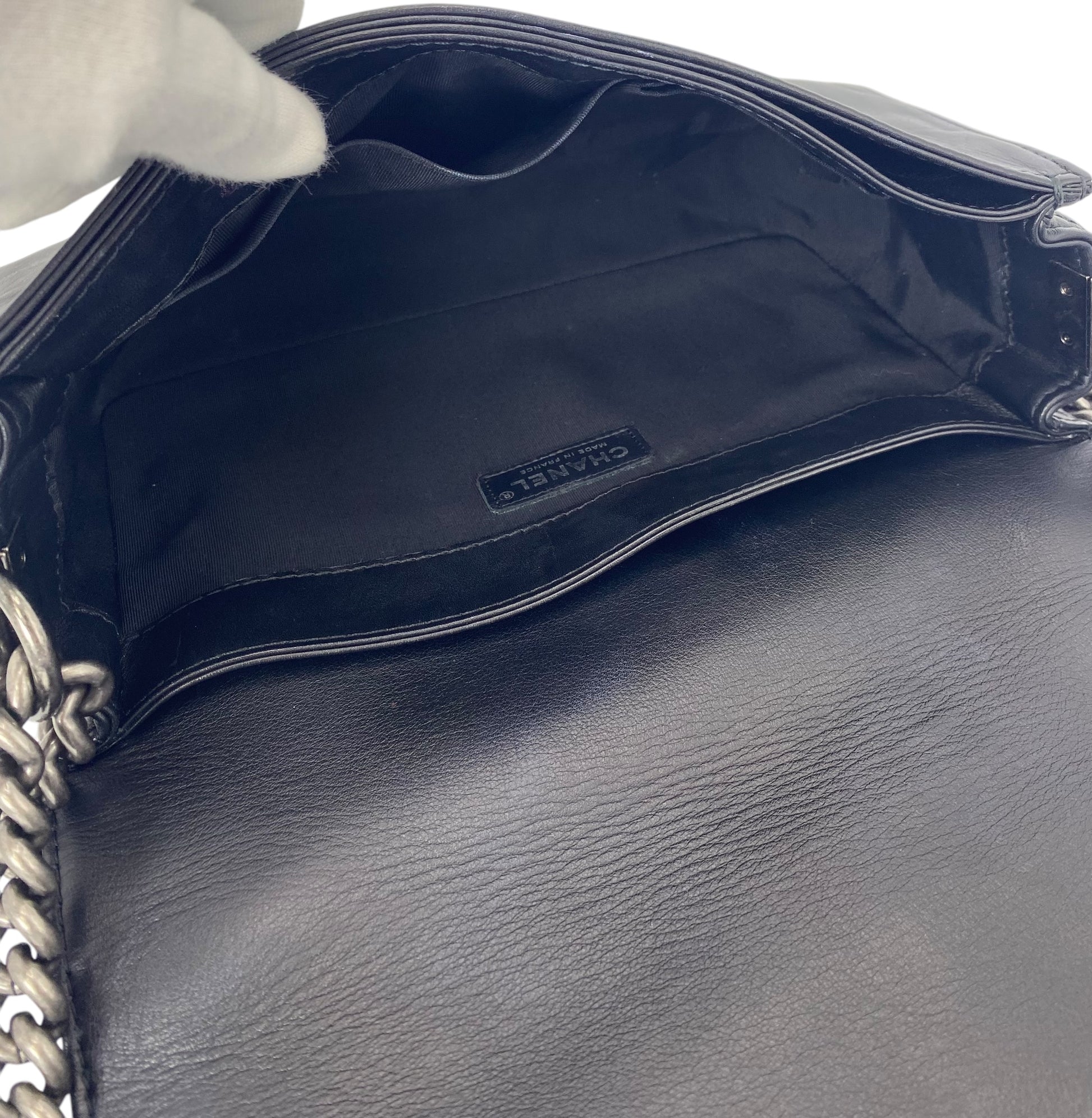 Chanel 2013 Enchained Boy Bag Black Leather Medium Flap Bag