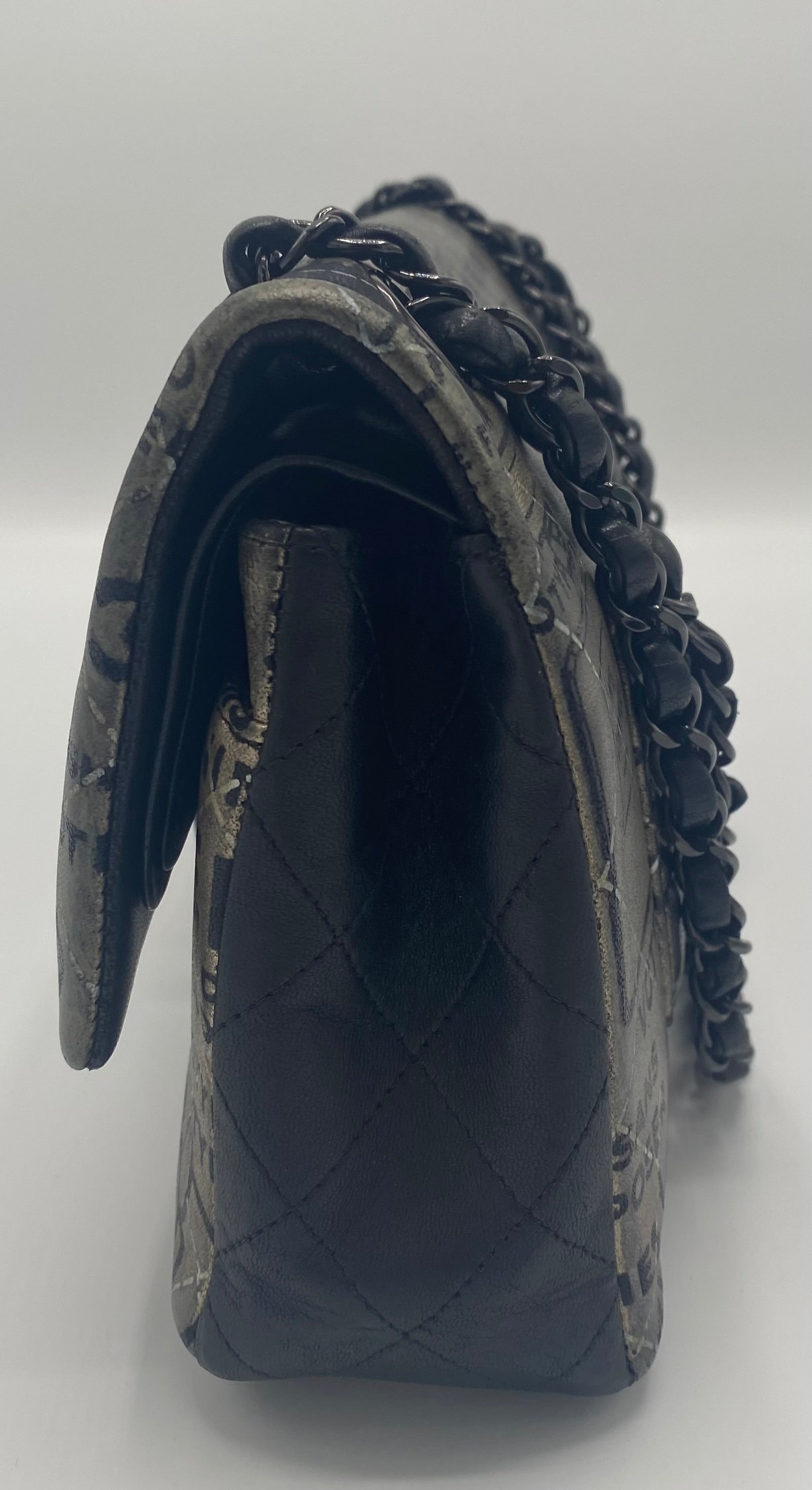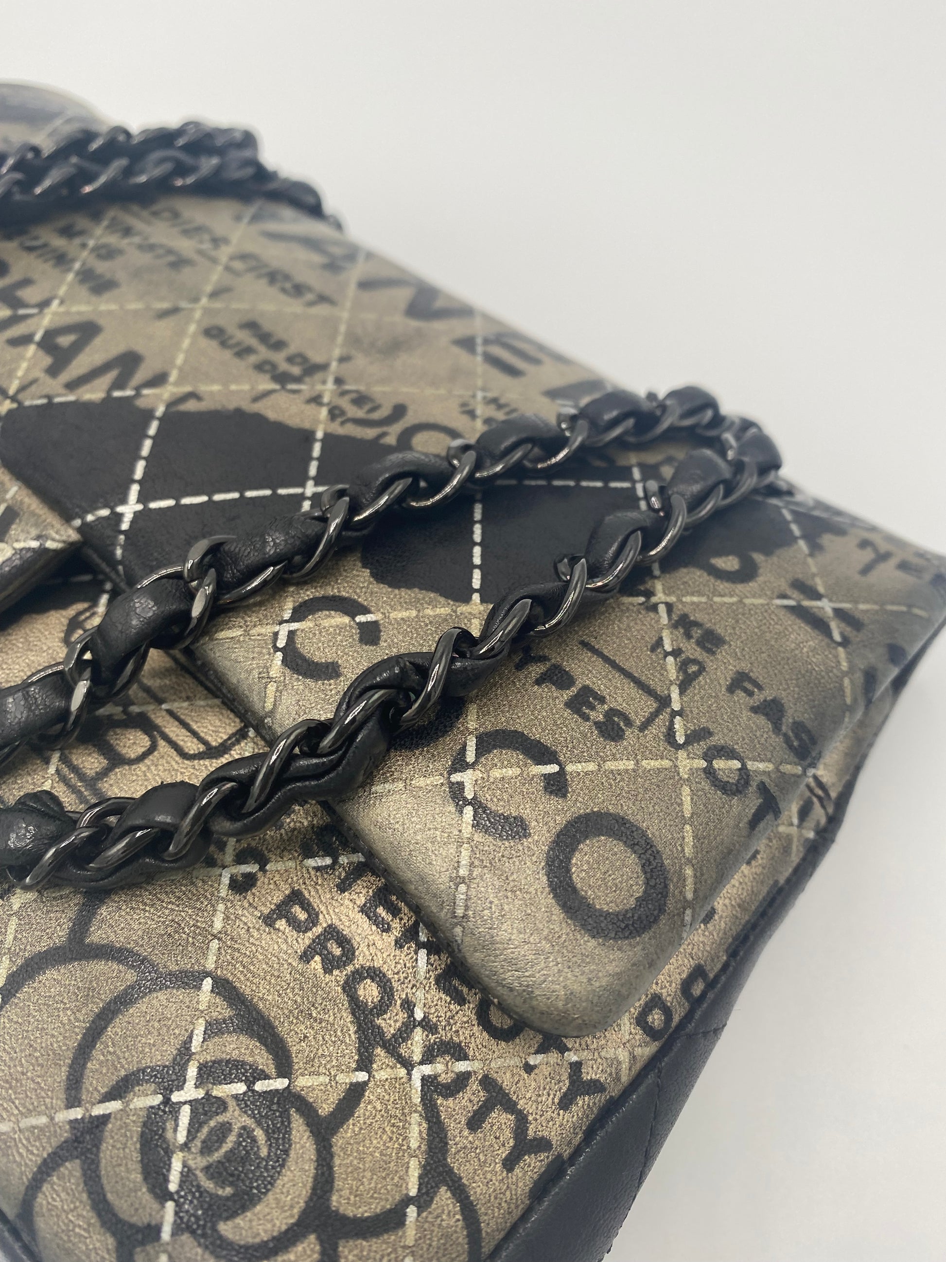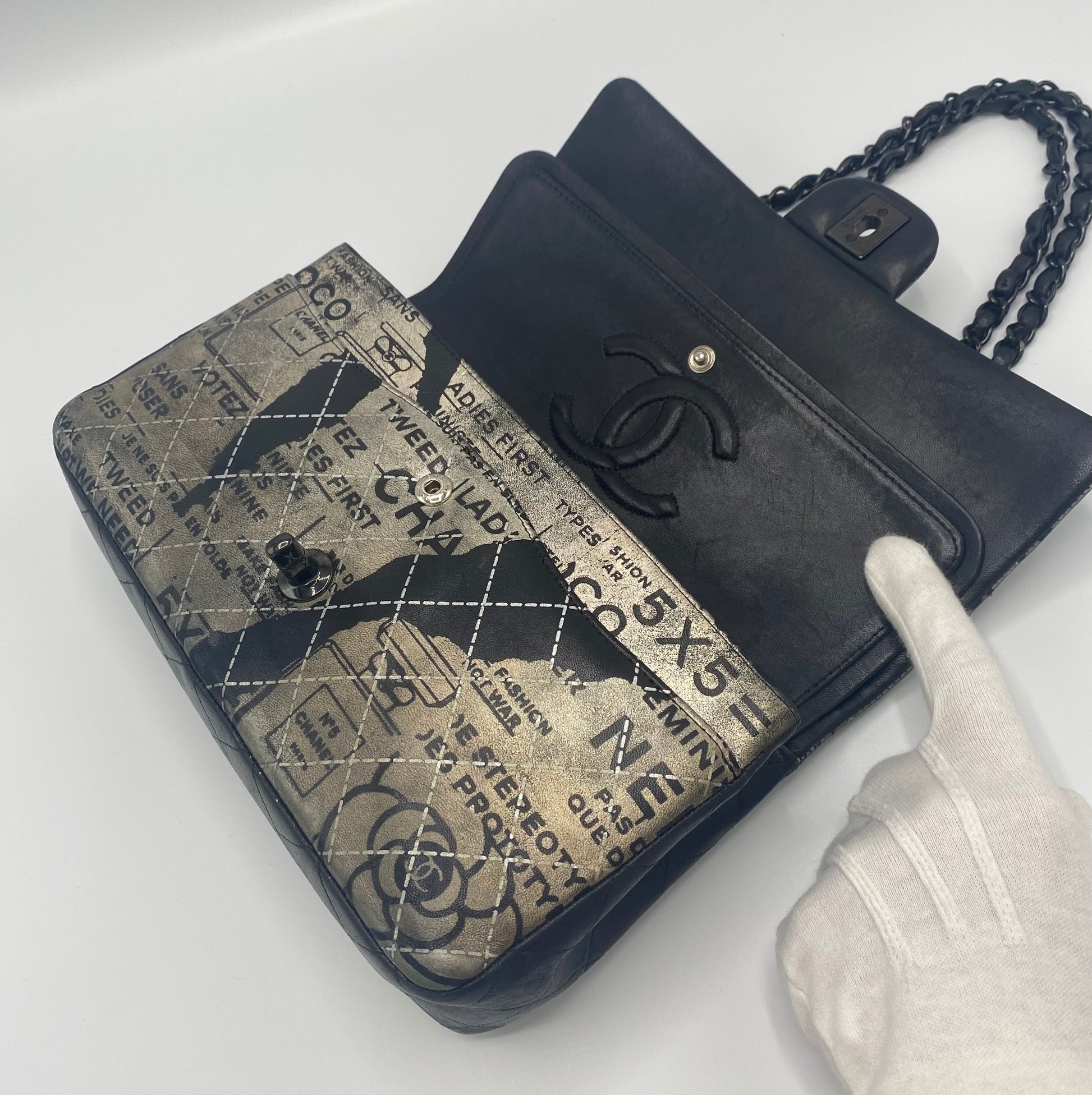 CHANEL 2015 GRAFFITI NEWSPAPER MEDIUM CLASSIC DOUBLE FLAP BAG SO BLACK