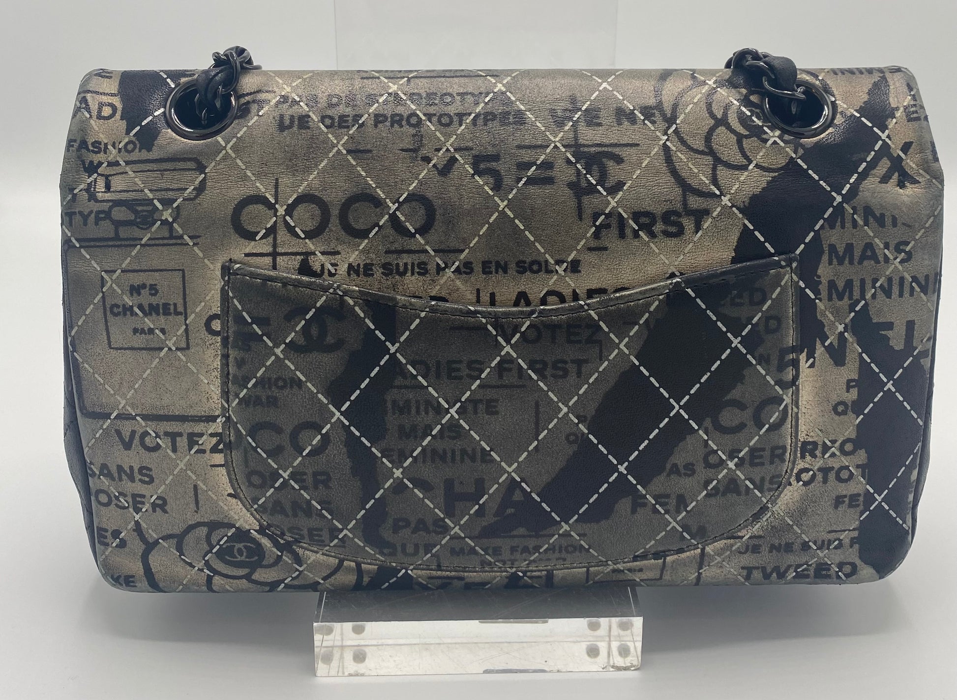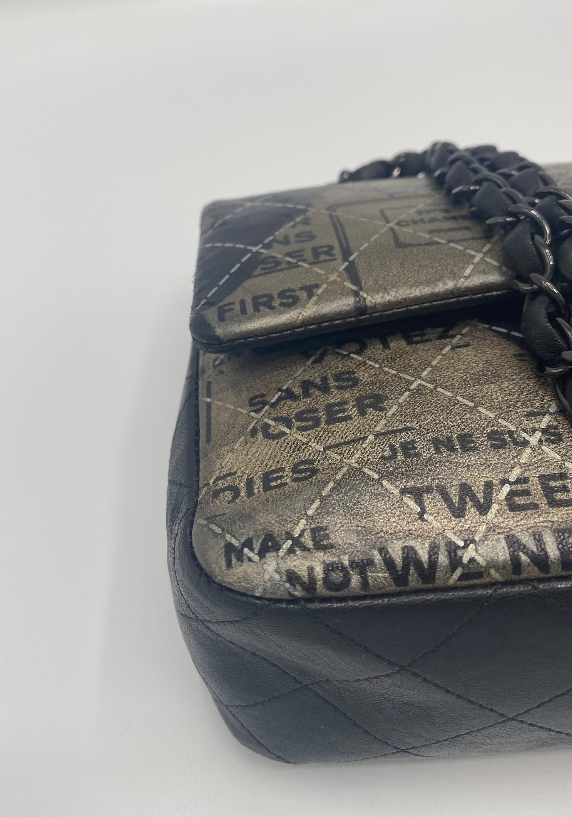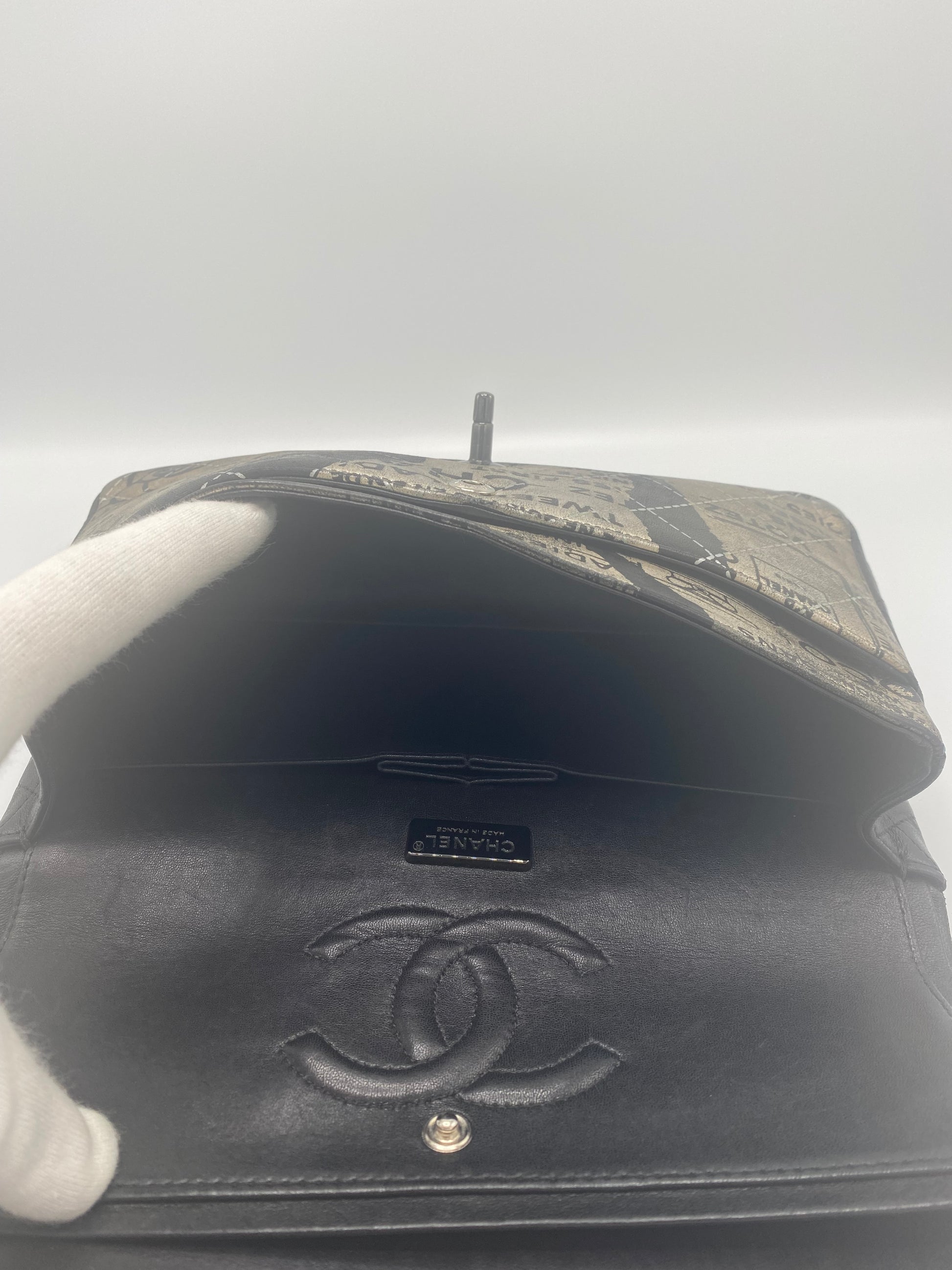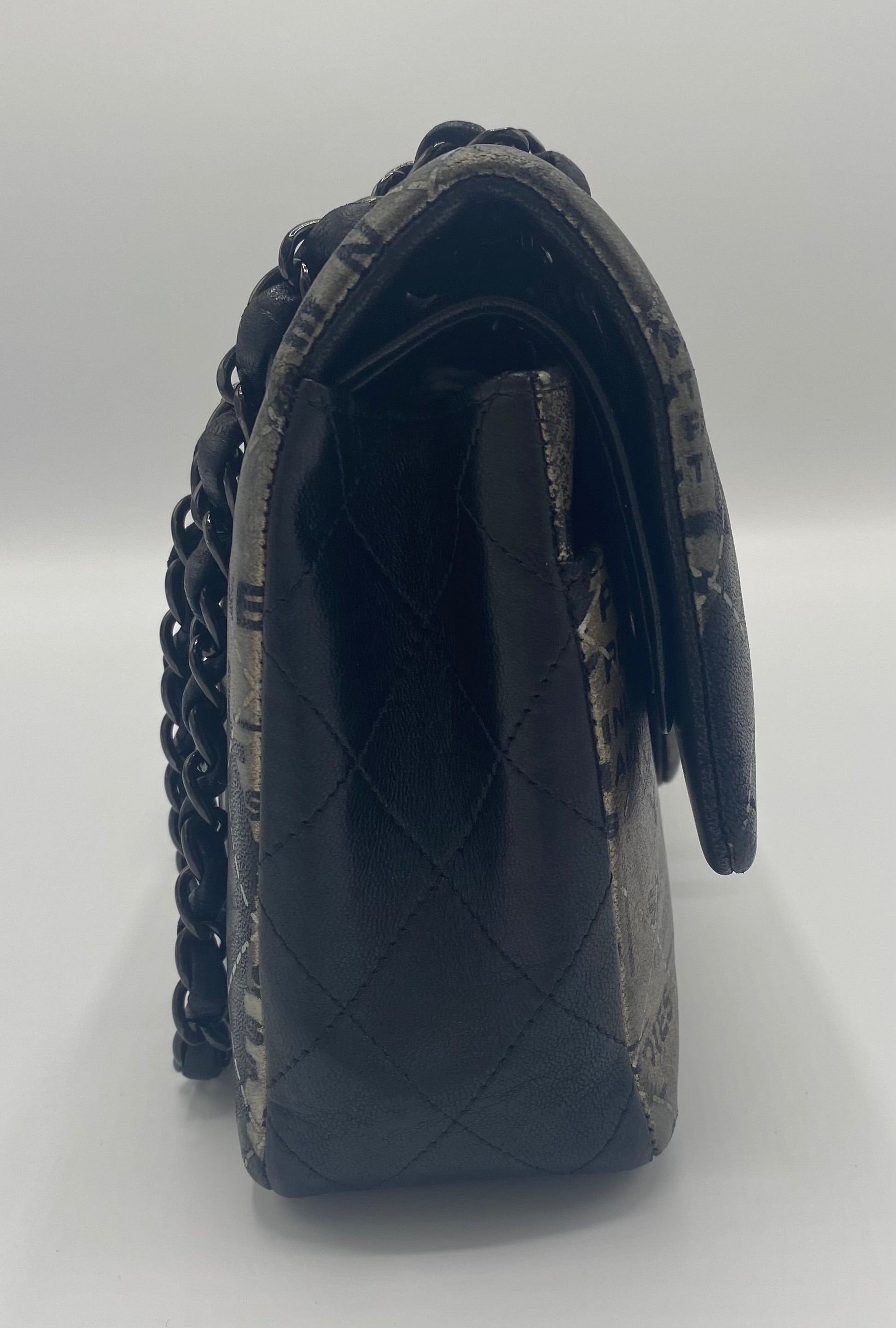 CHANEL 2015 GRAFFITI NEWSPAPER MEDIUM CLASSIC DOUBLE FLAP BAG SO BLACK