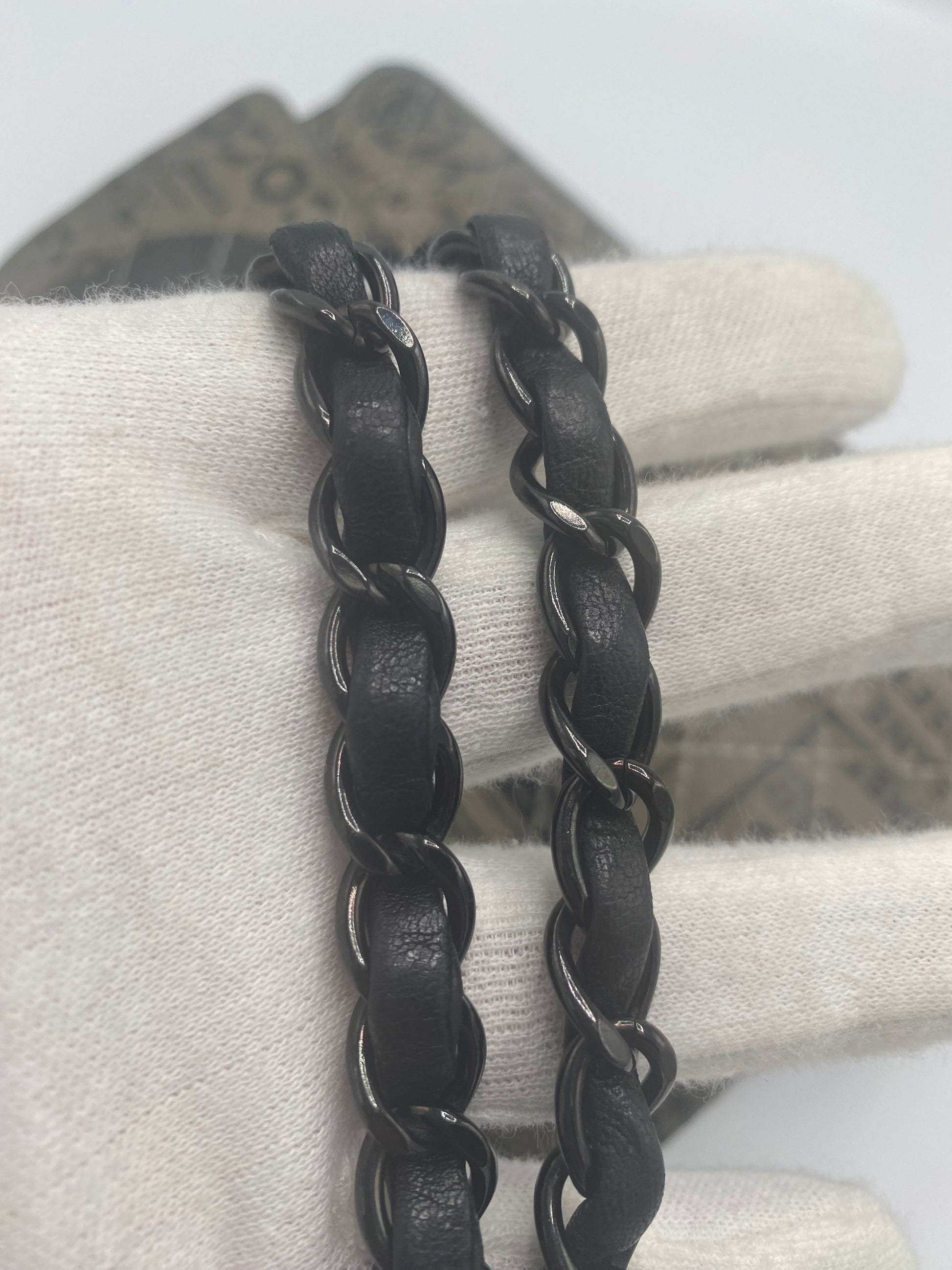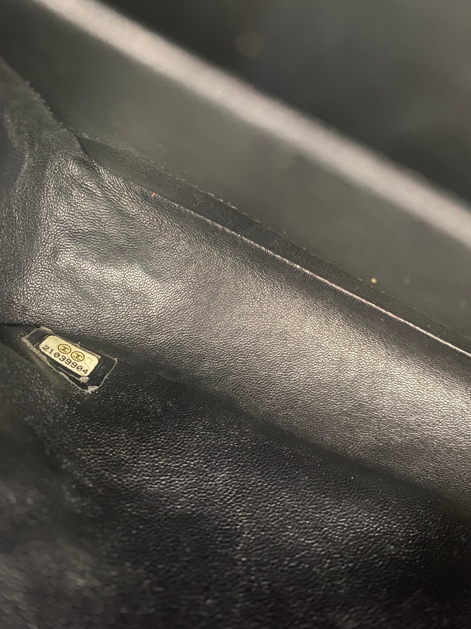 Chanel's most iconic images and words are featured - a painted diamond quilted pattern and the infamous Chanel No. 5 perfume bottle. This is not only a great everyday bag but a true work of art and was featured at the Victoria & Albert Museum, London. A black metal plaque on interior signifies the special edition treatment of this bag, something usually reserved for exotics and other fine materials. Ultra collectible.