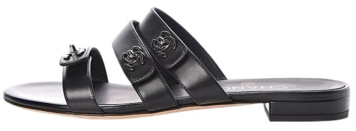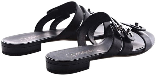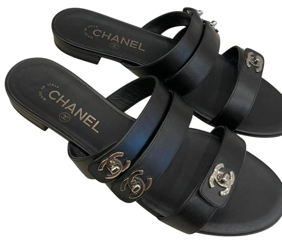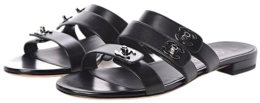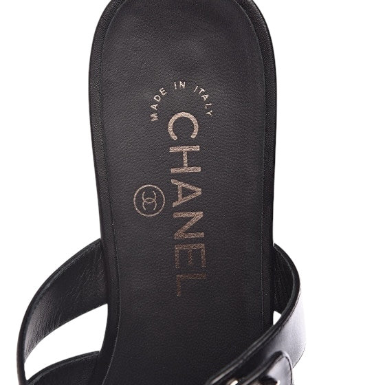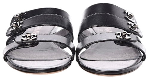 Chanel 2017 Black Calfskin CC Turnlock Mule Sandals EU 38C