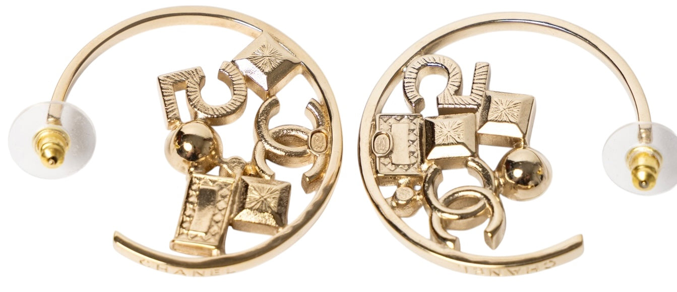 Chanel 2023 Multicolor Gold N 5 Timeless Large Hoop Earrings