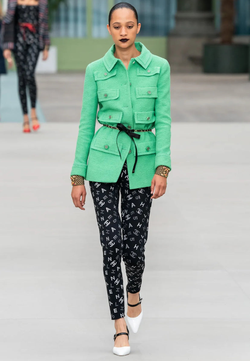 Epic Leggings From the Chanel 2020 Cruise Resort Runway Collection, by Virginie Viard. Runway Looks #16,17,18,20. Featured on the Ad Campaigns, seen on Dorit Kemsley from The Real House Wives of Beverly Hills.