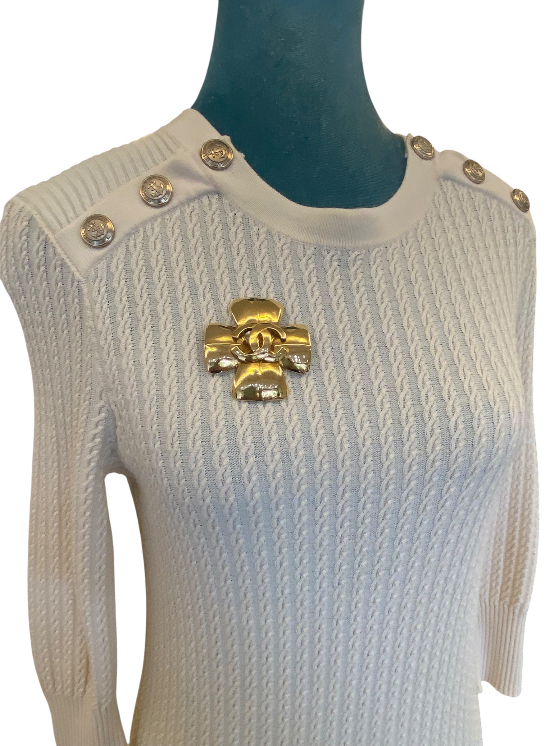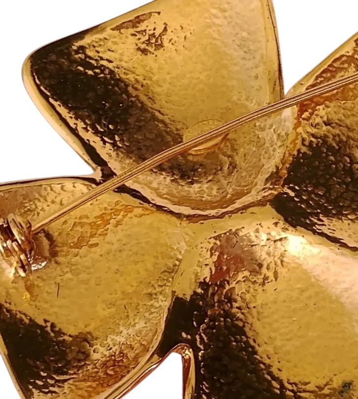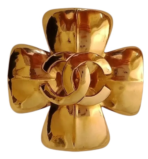 Chanel 97P Vintage Cross Clover CC 24K Gold Plated Brooch