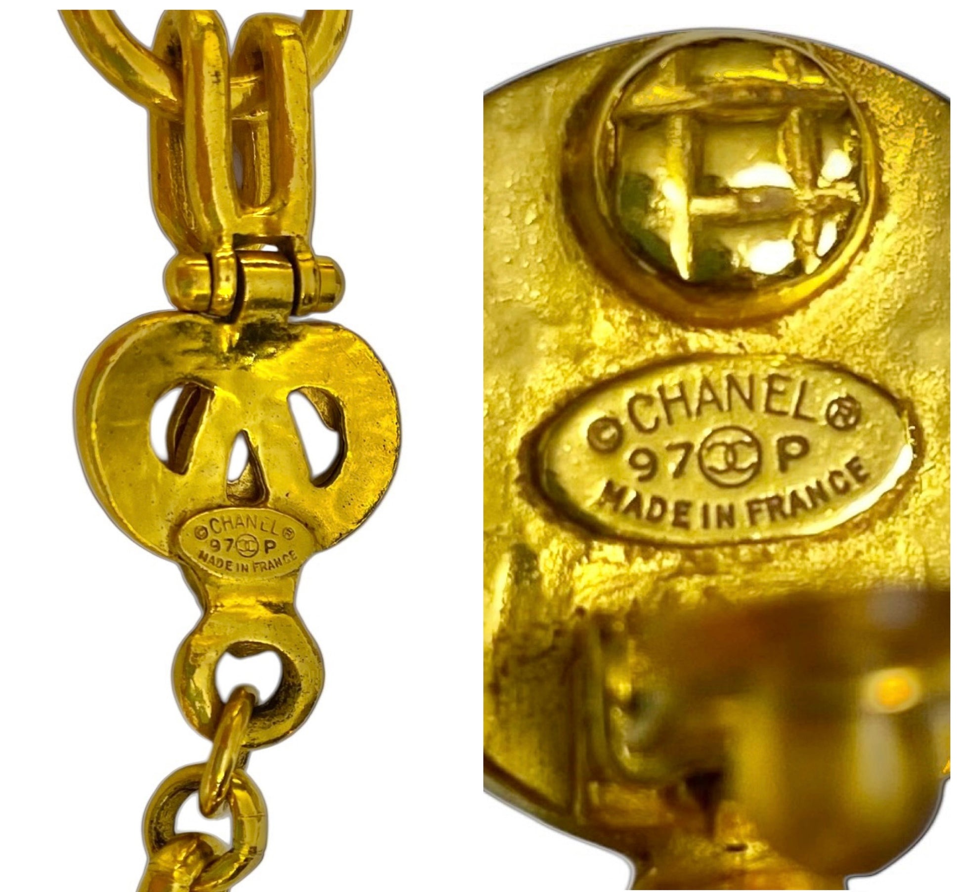 Chanel 97P Vintage Long Statement Necklace & Oversized Matching Clip On Earrings SET 24K Gold Plated