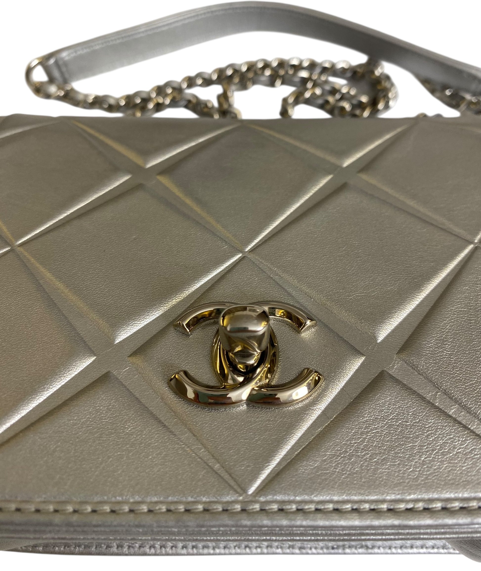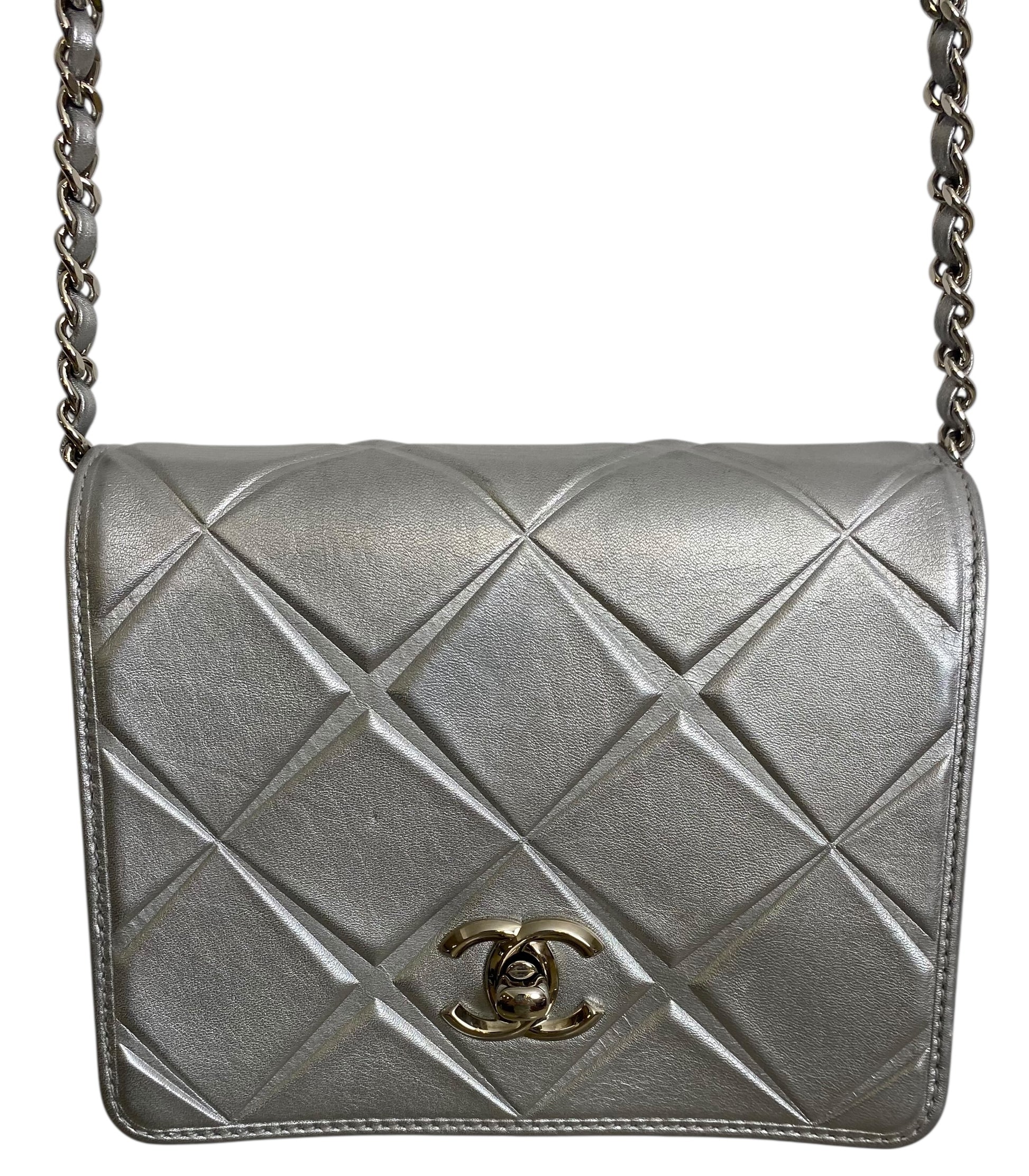 Chanel Airlines 16P Mini Propellor Metallic Calfskin Silver Flap Bag
