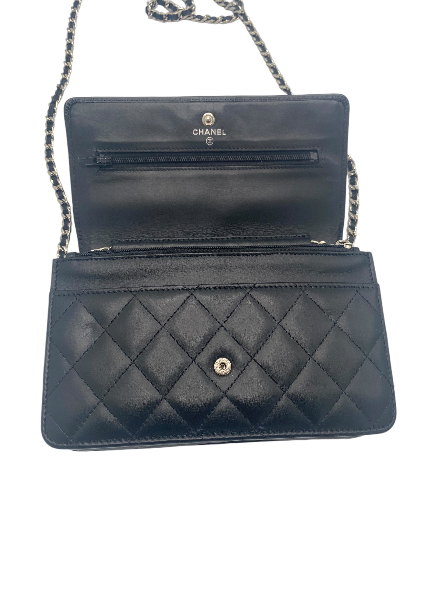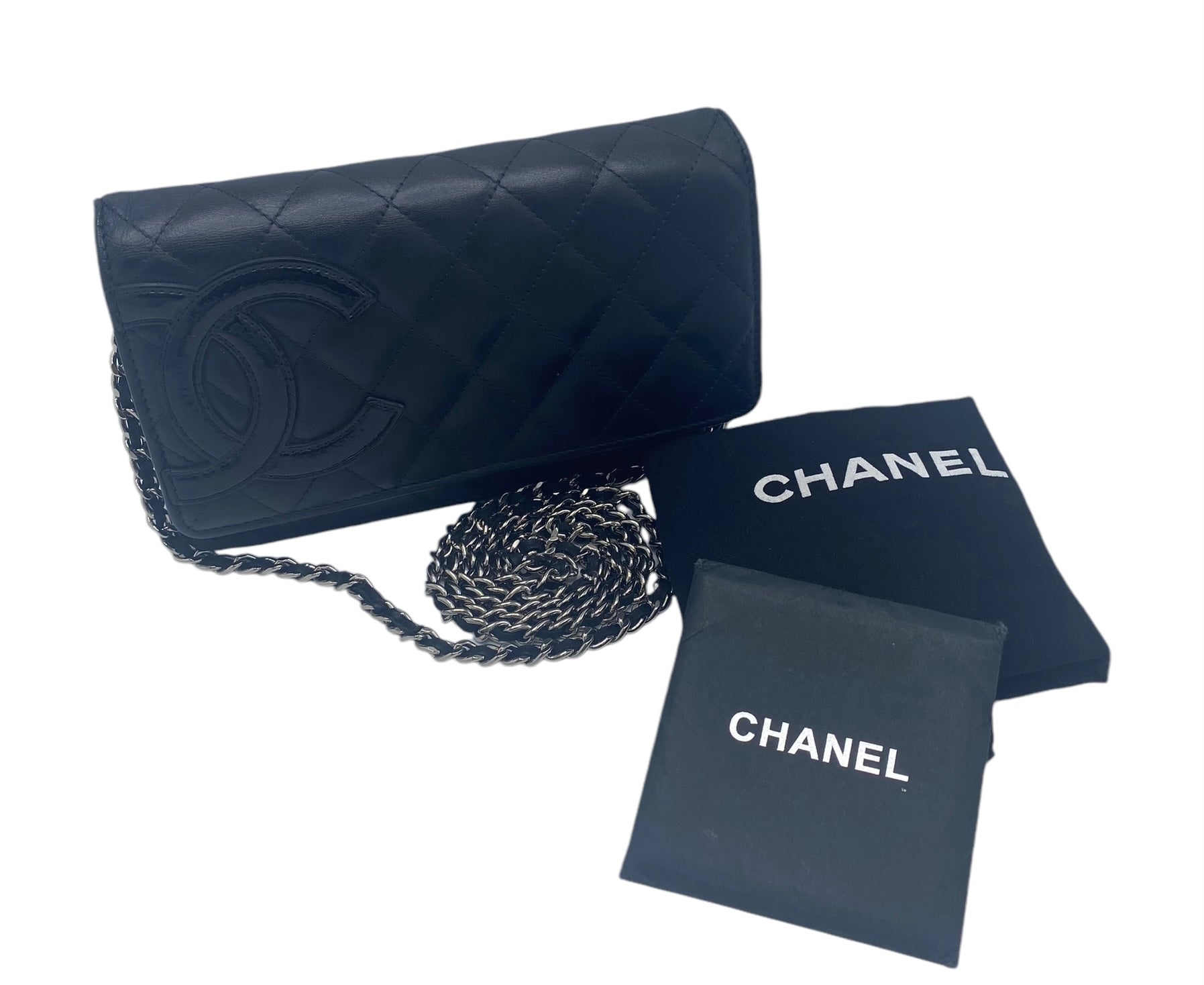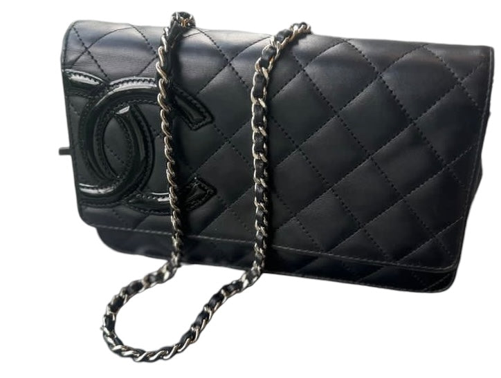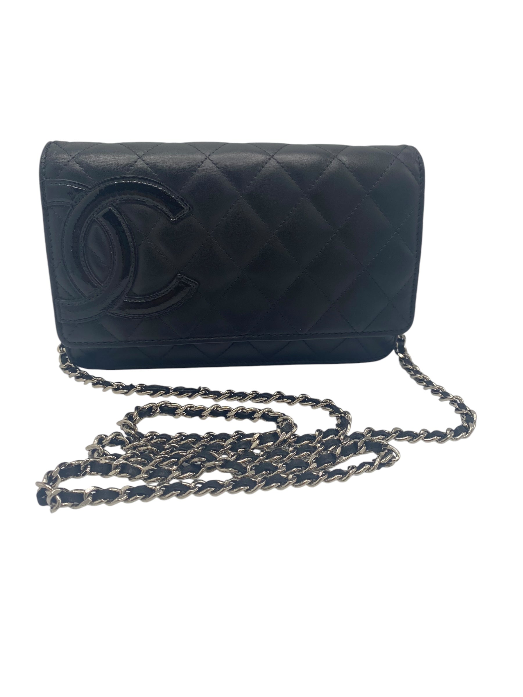 Chanel Black Leather Cambon Wallet on Chain WOC Crossbody Bag Clutch
