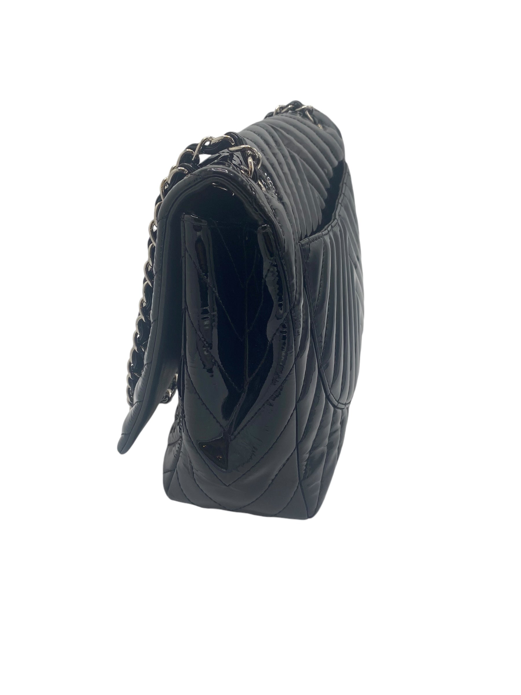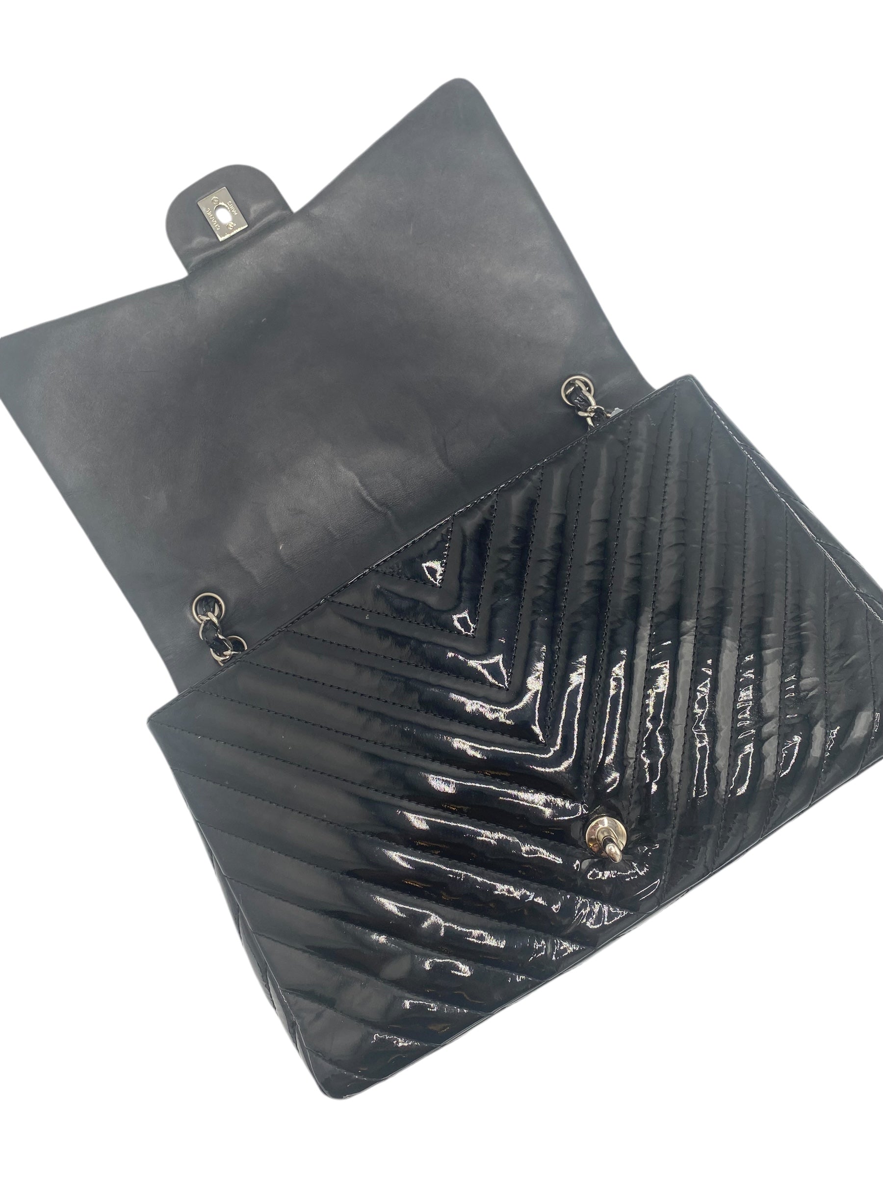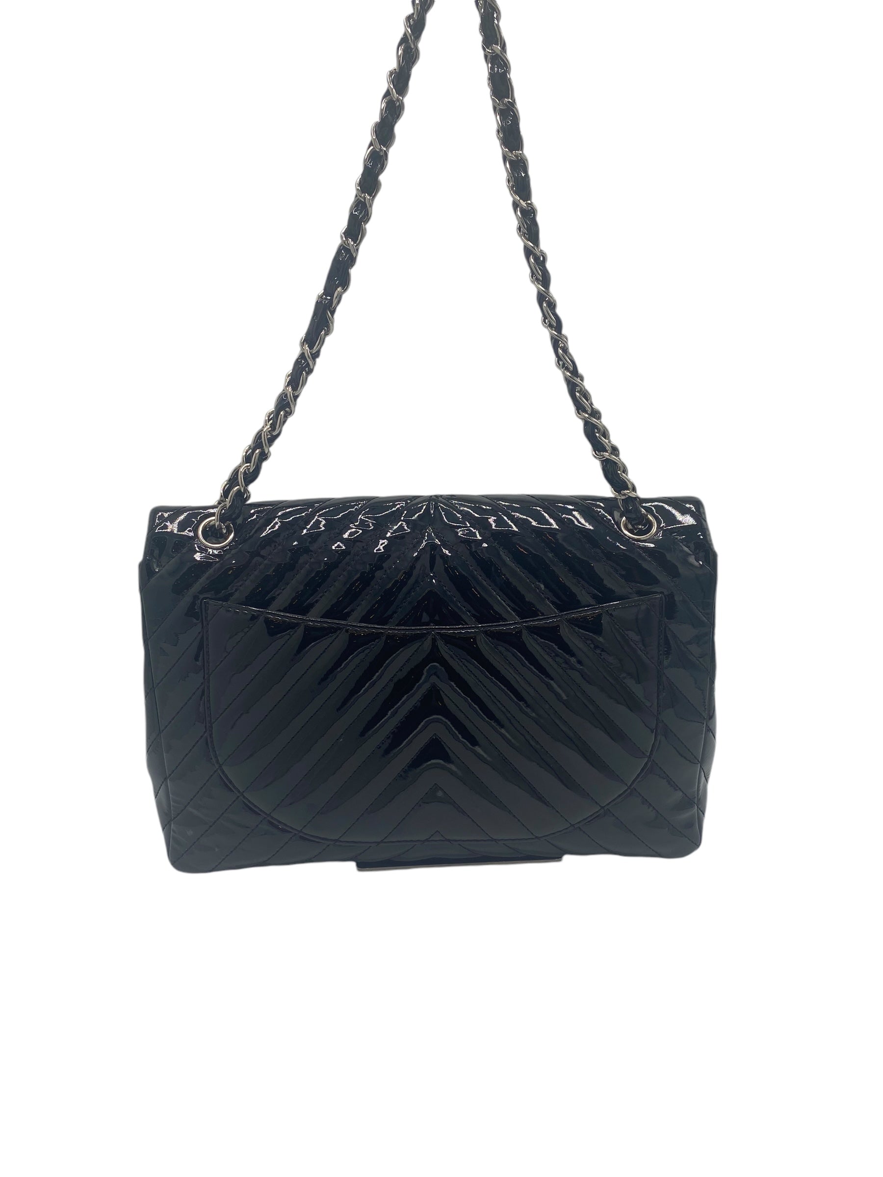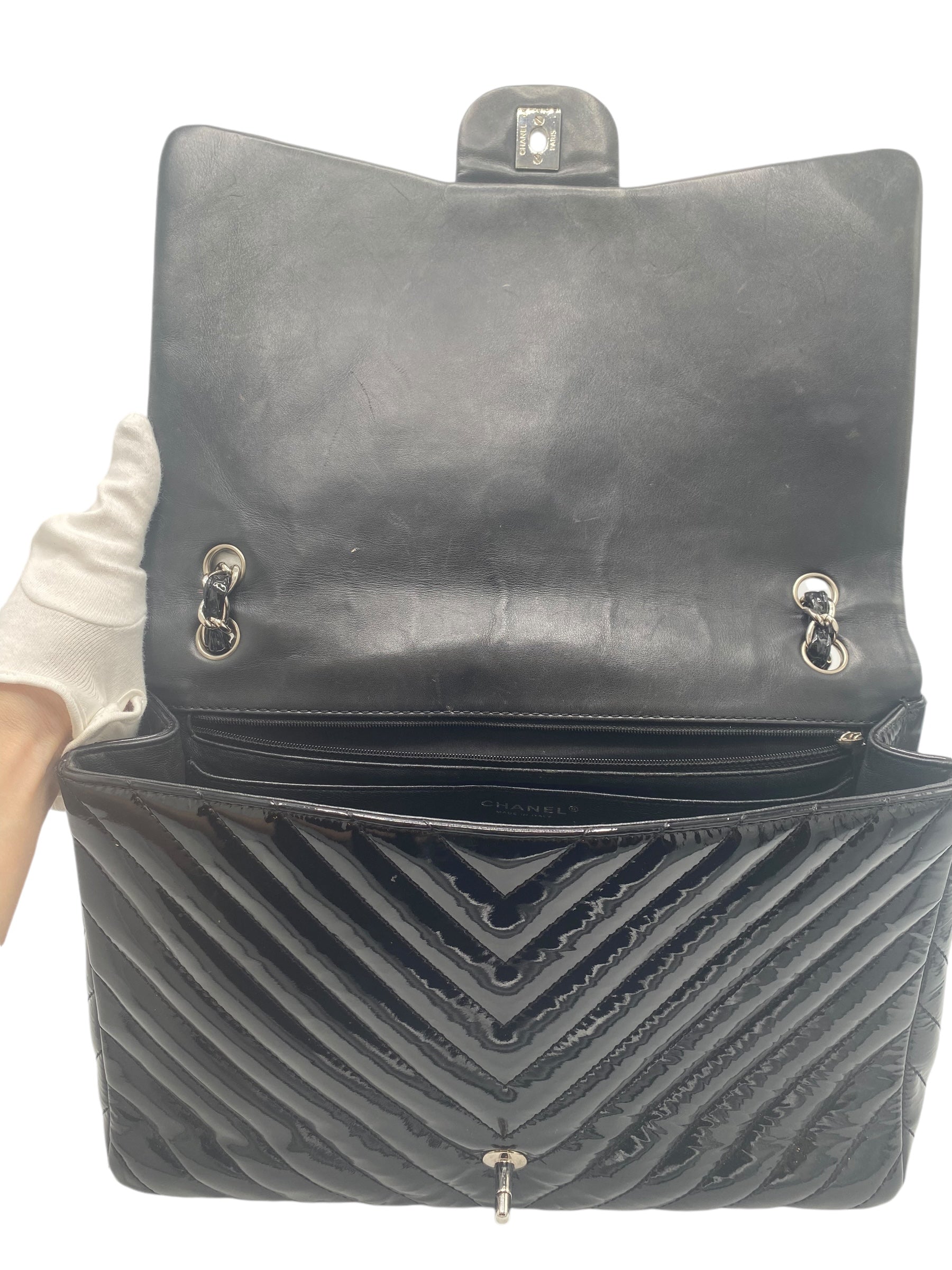 Chanel Black Maxi Patent Chevron Classic Flap Bag
