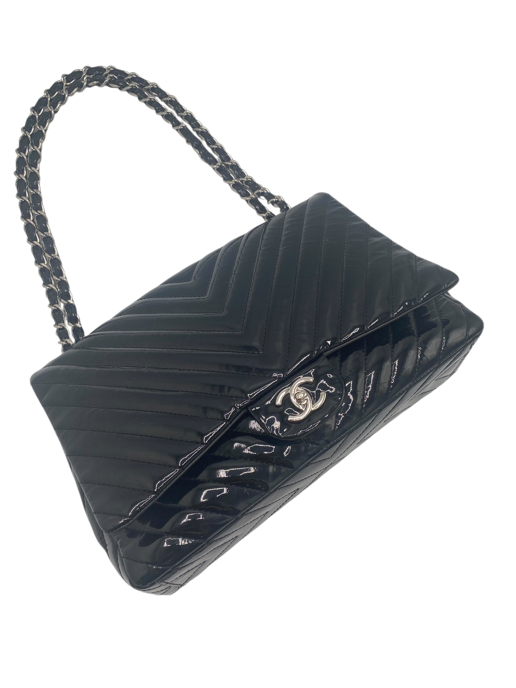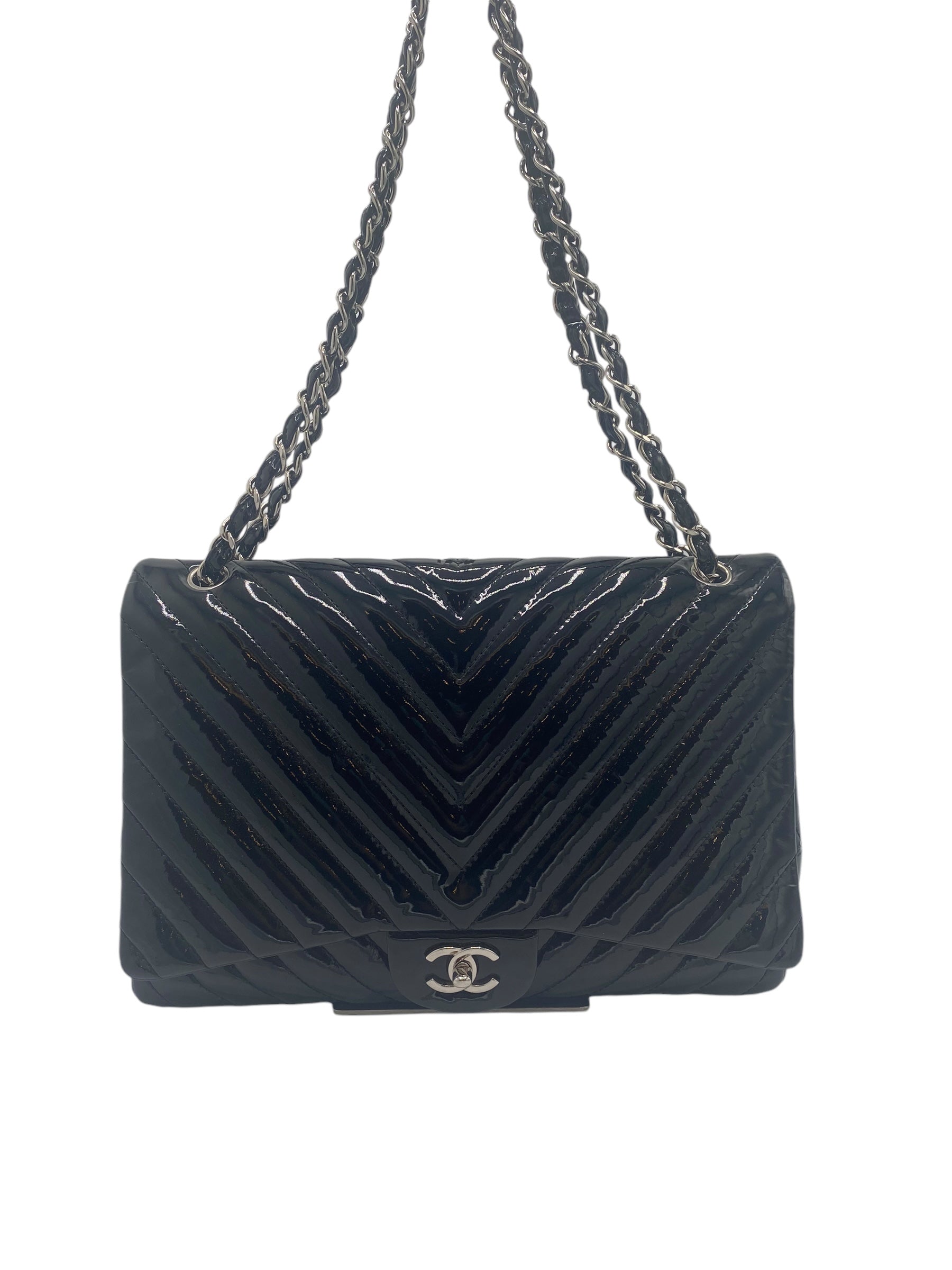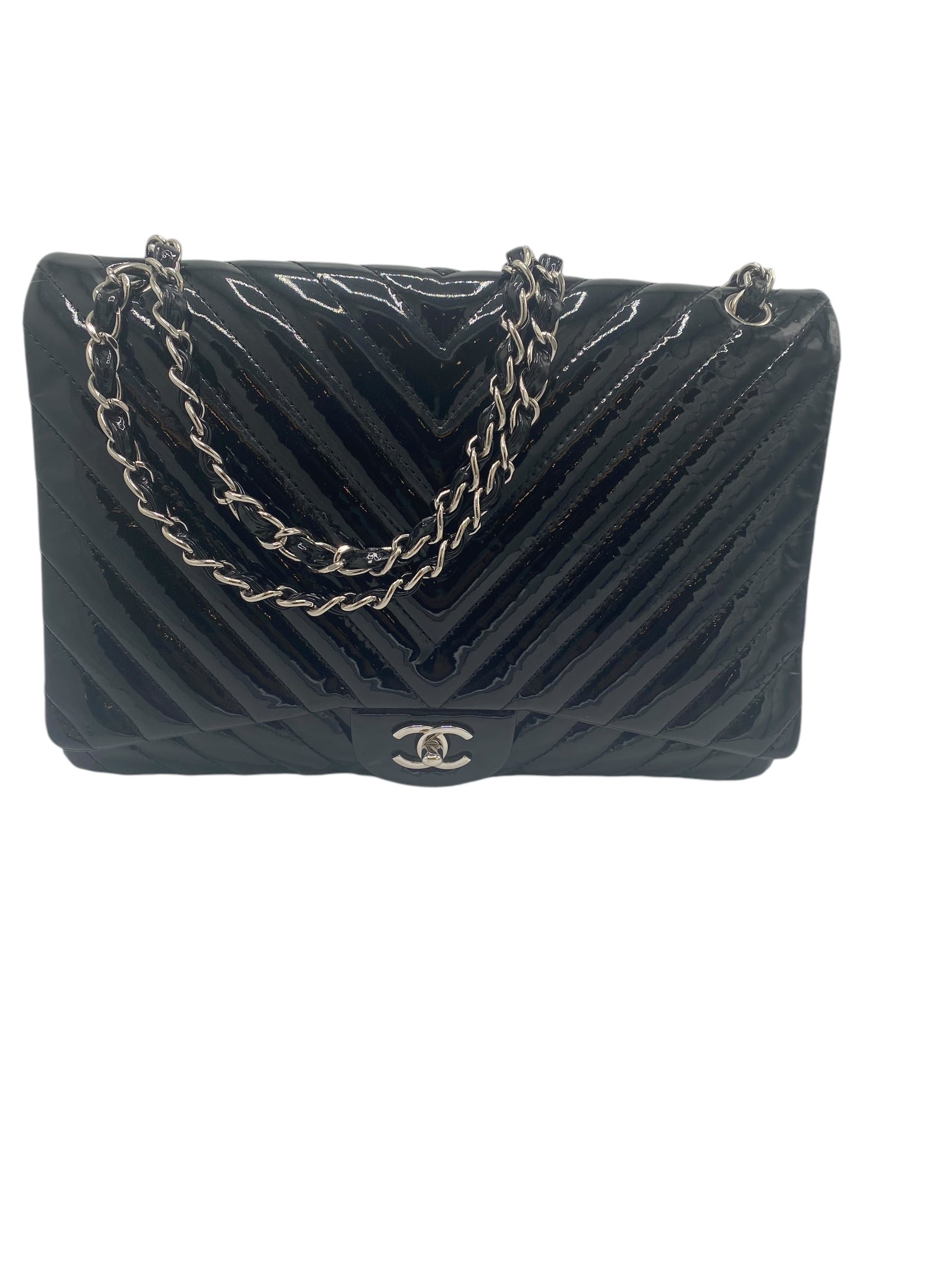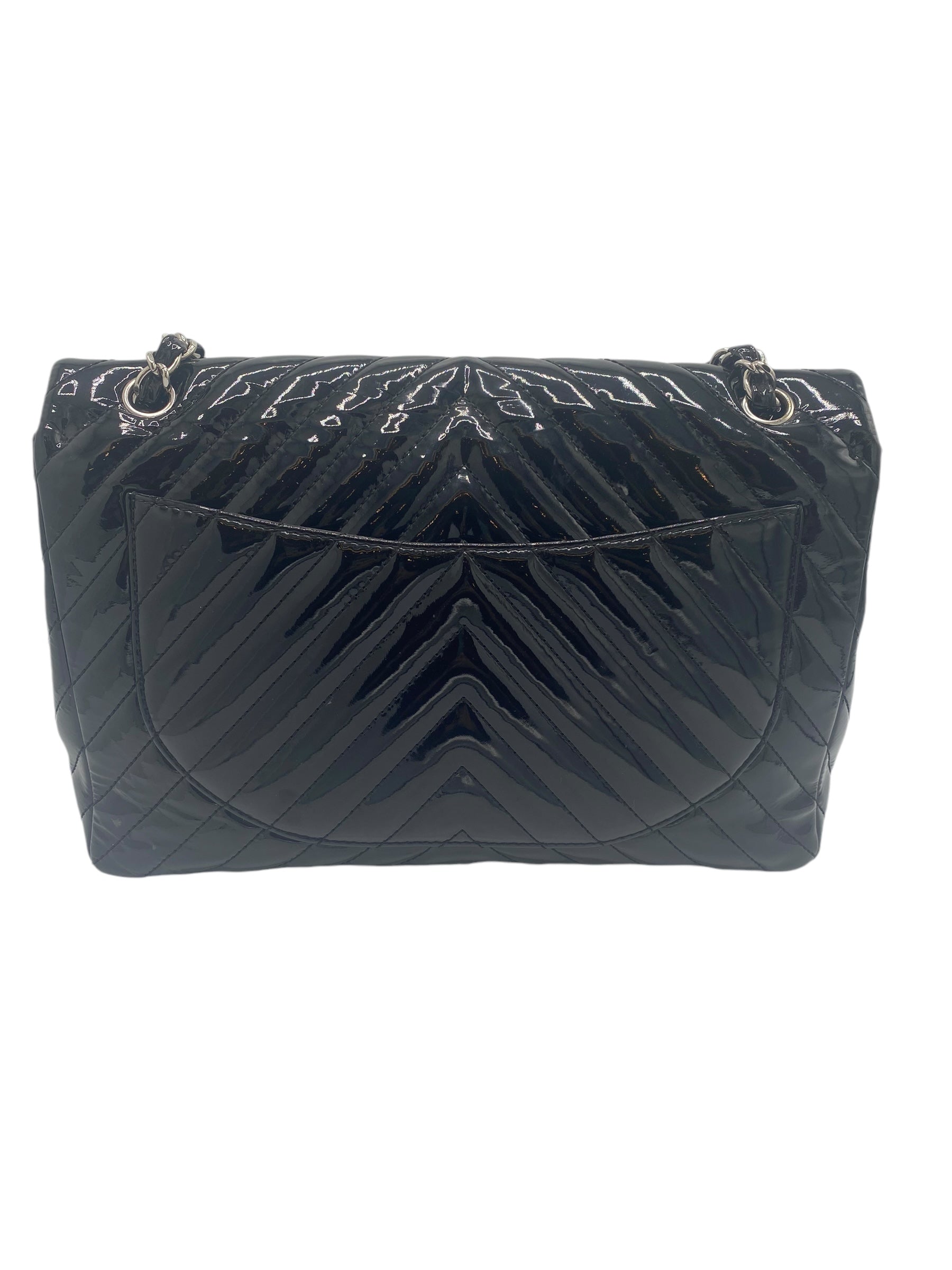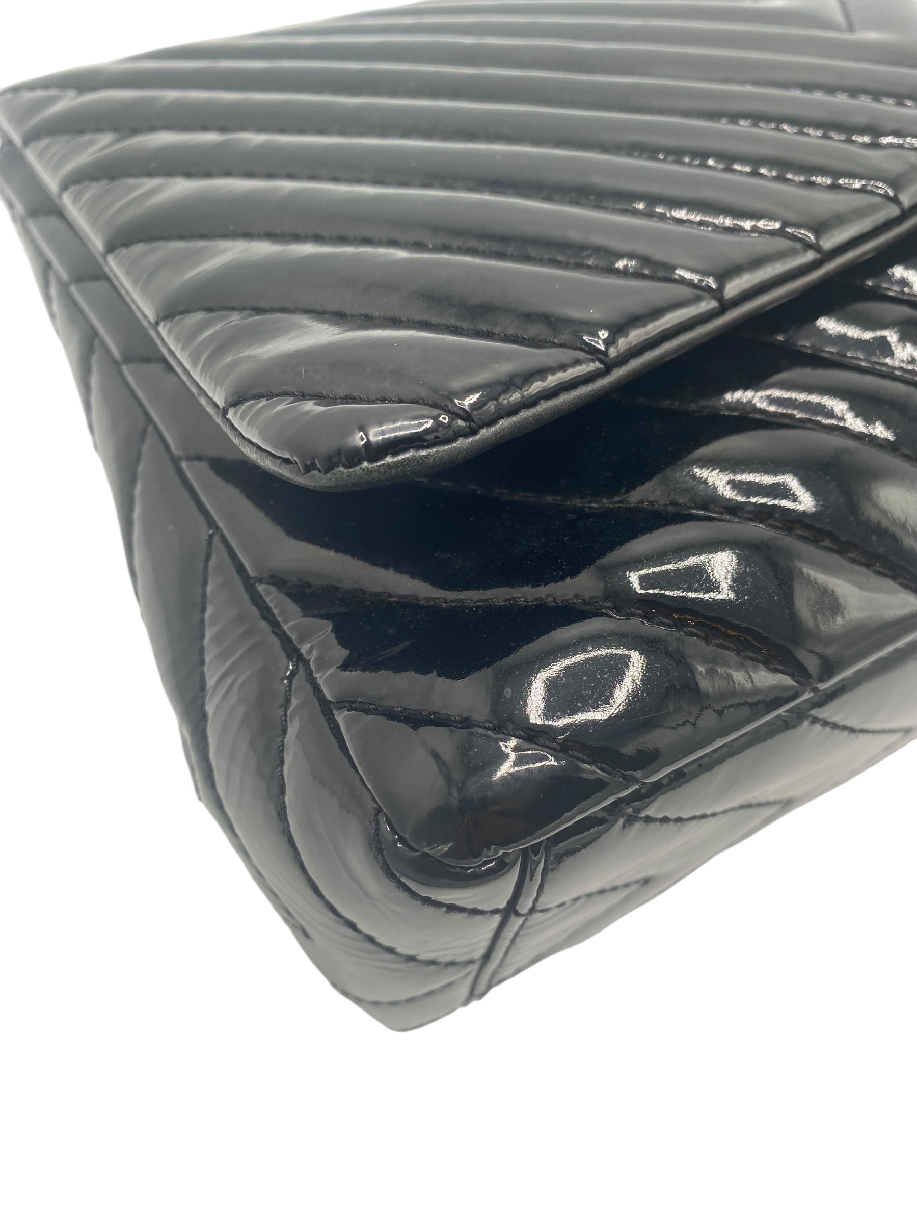 Chanel Black Maxi Patent Chevron Classic Flap Bag