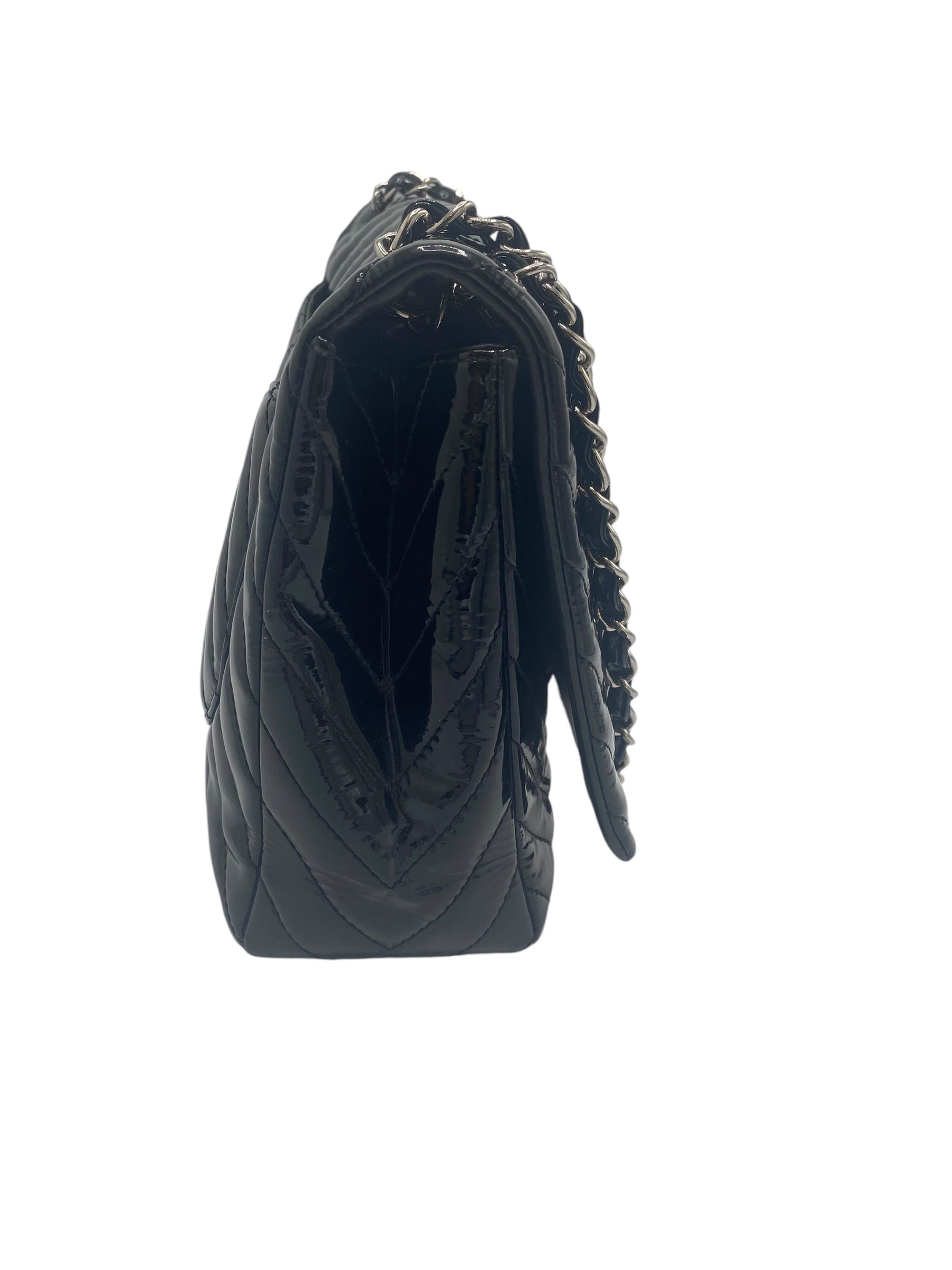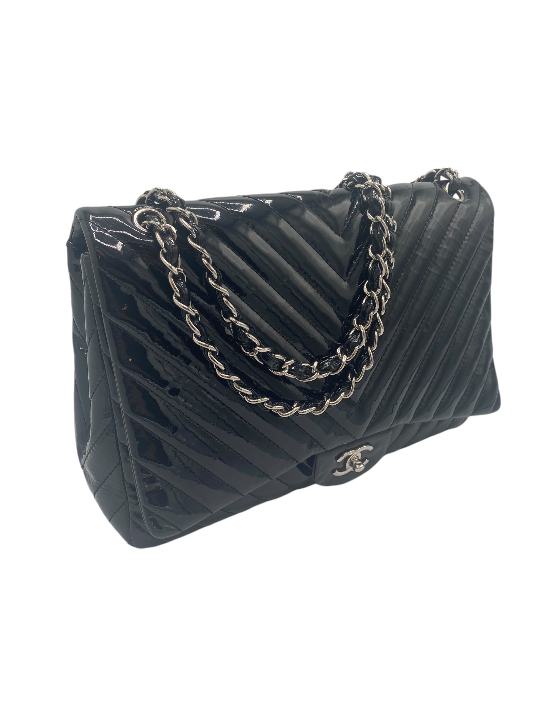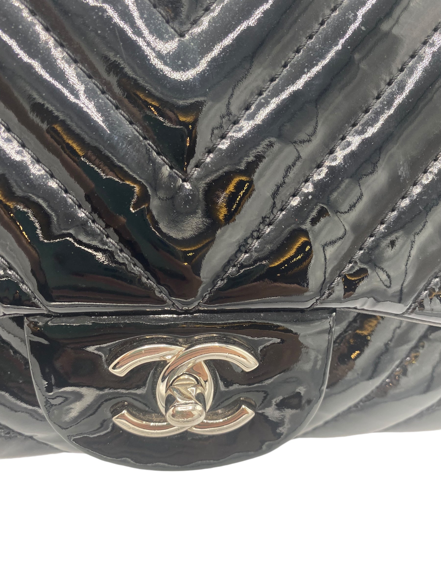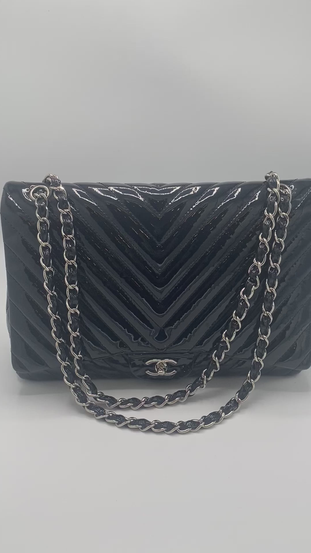 Chanel Black Maxi Patent Chevron Classic Flap Bag