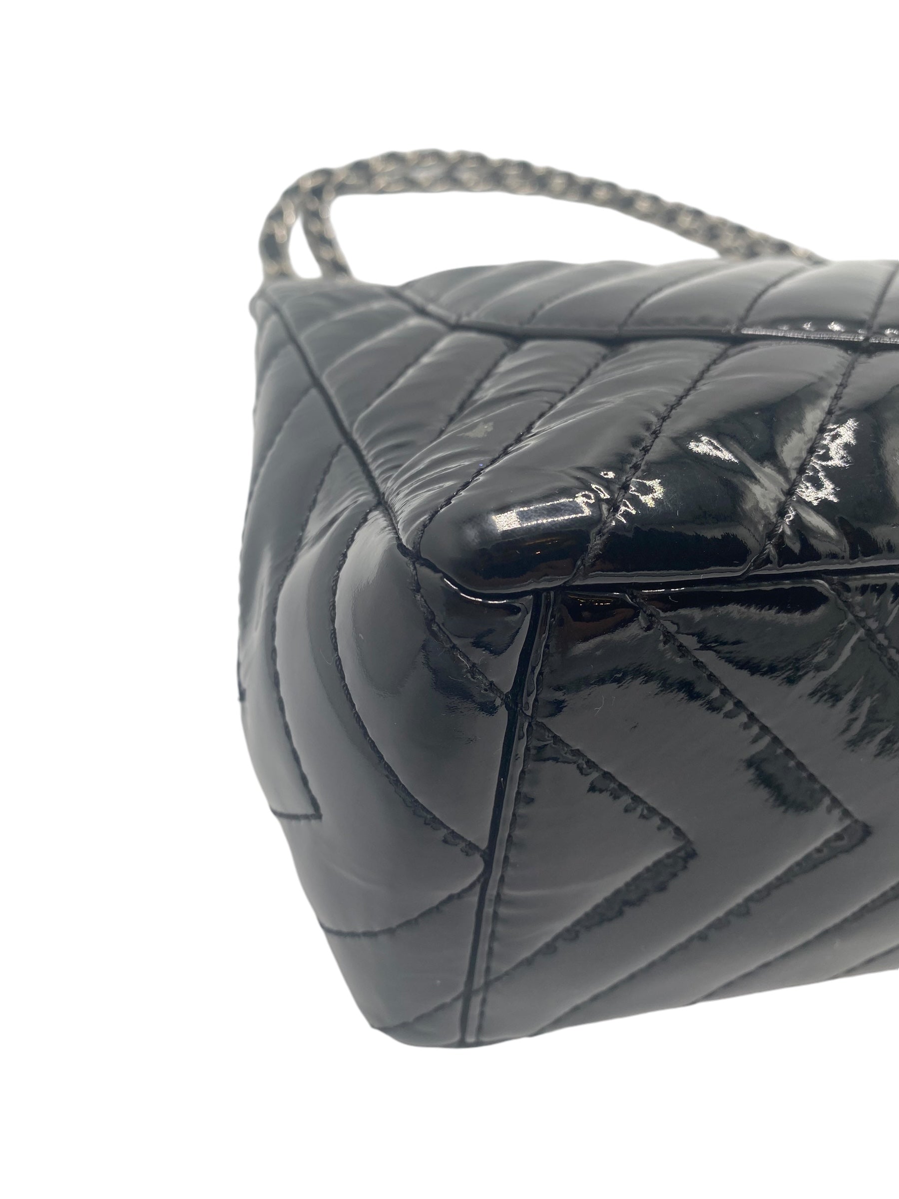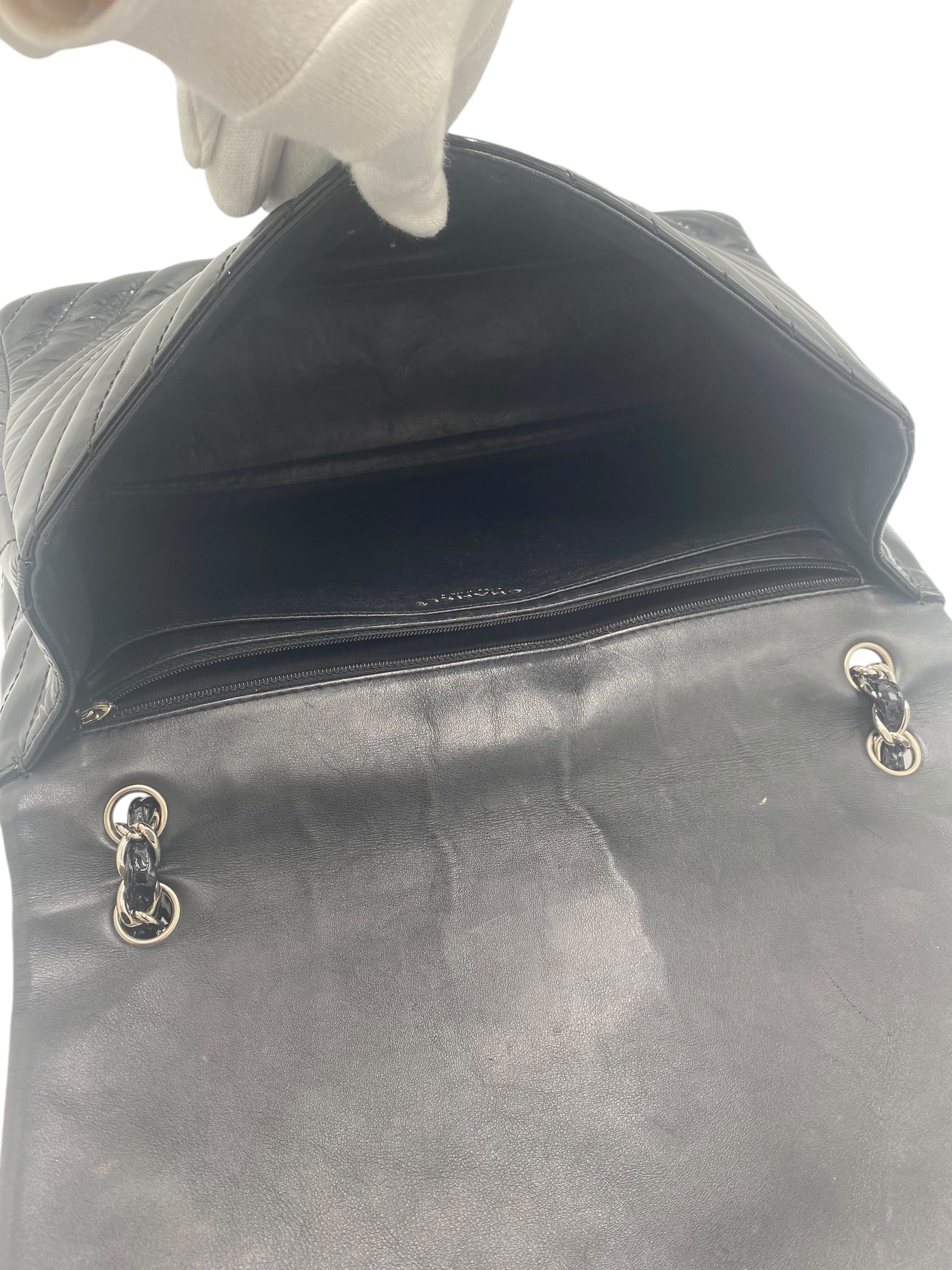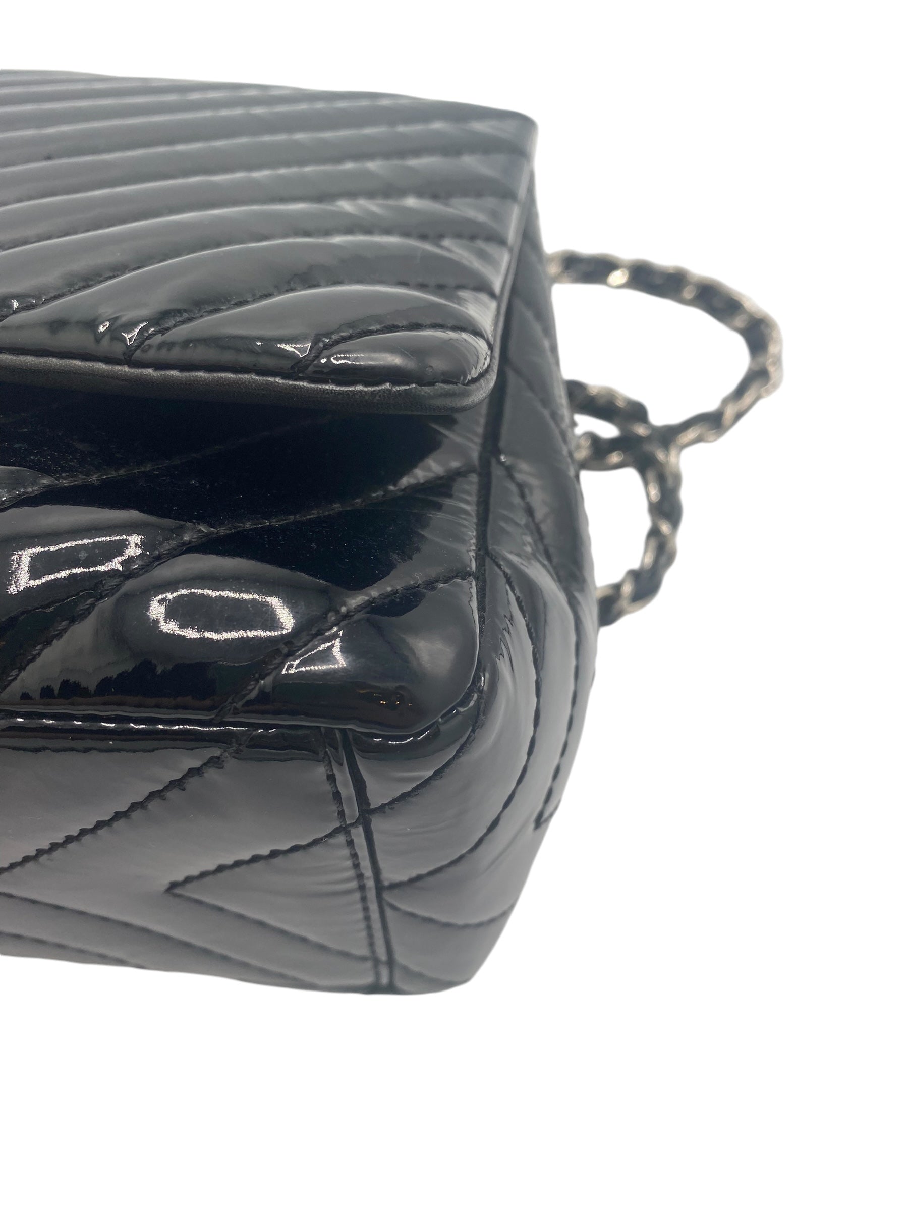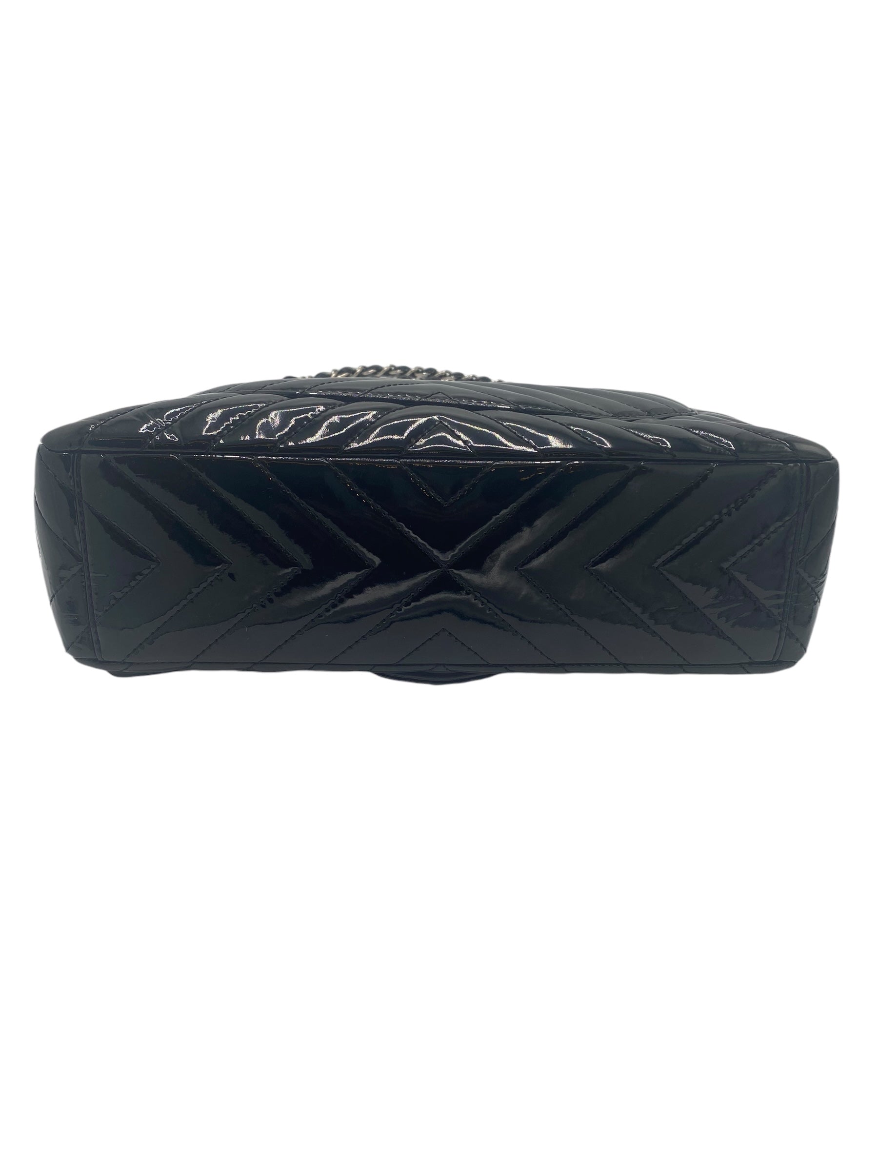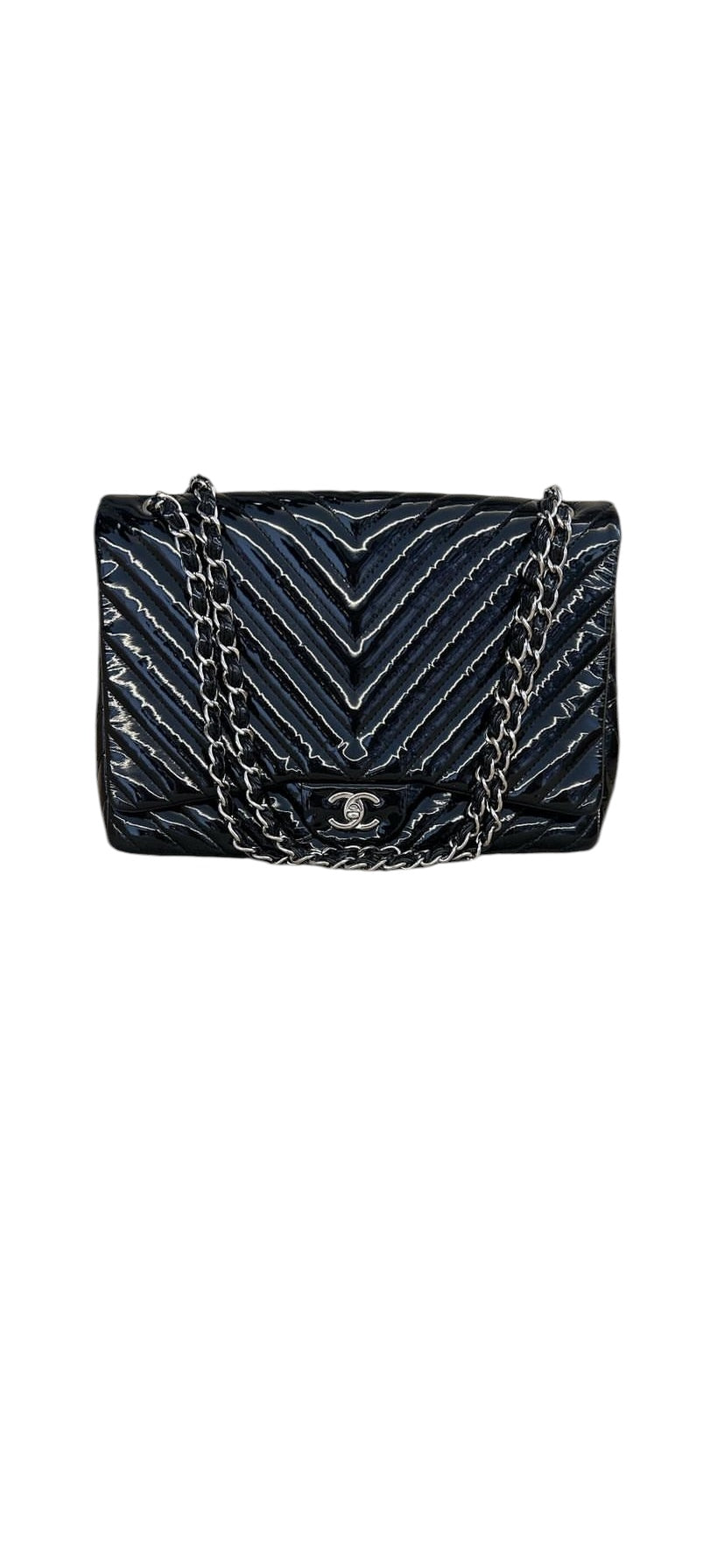 Chanel Black Maxi Patent Chevron Classic Flap Bag