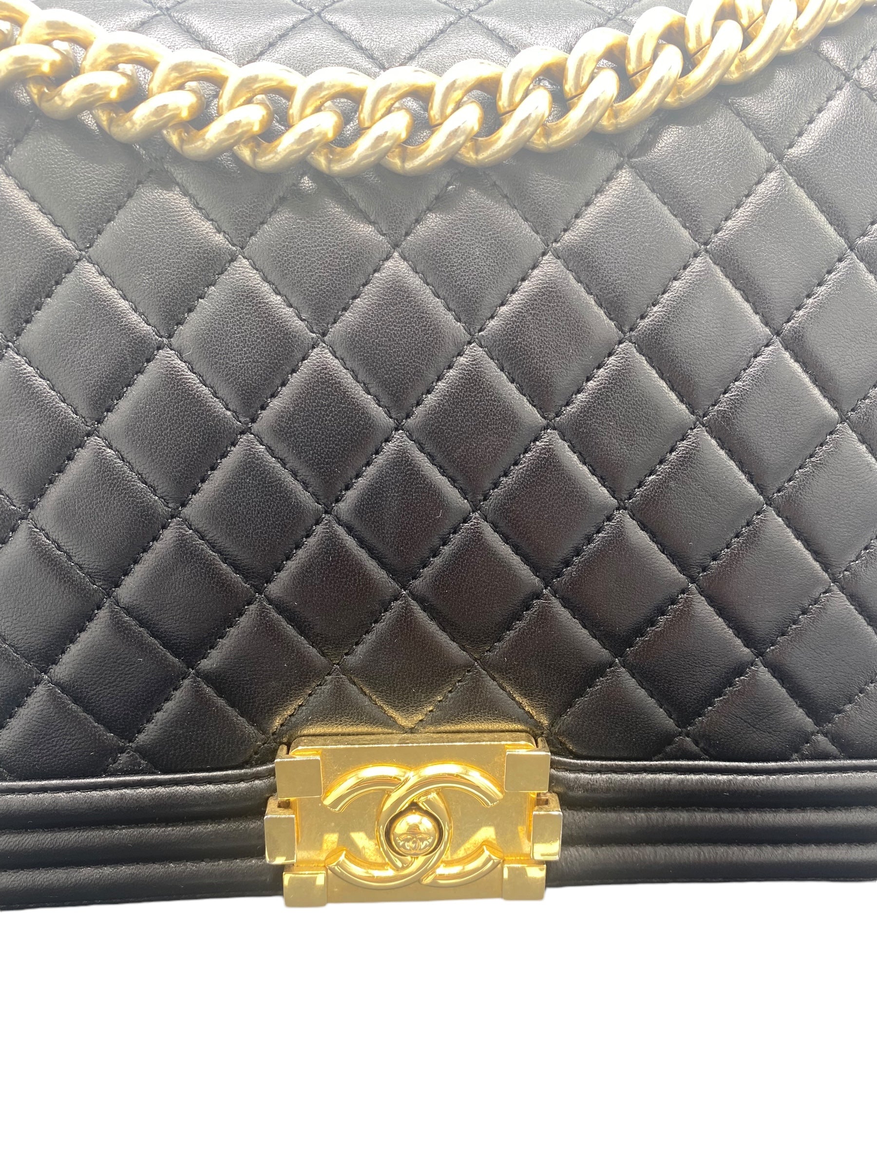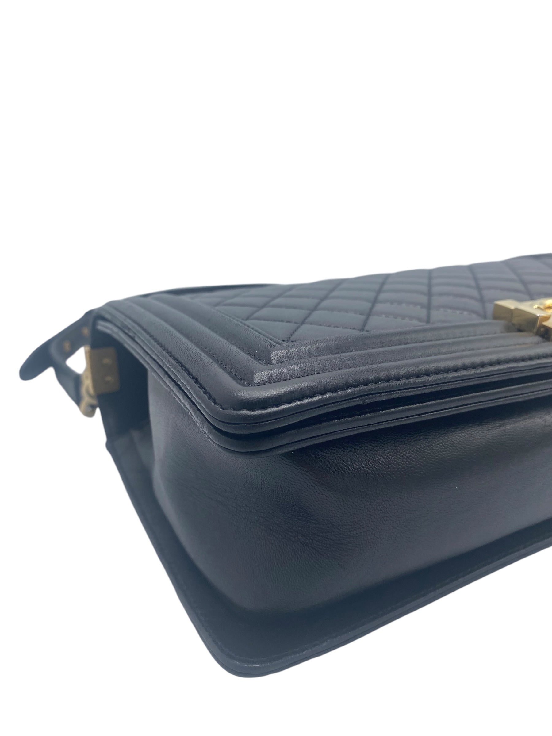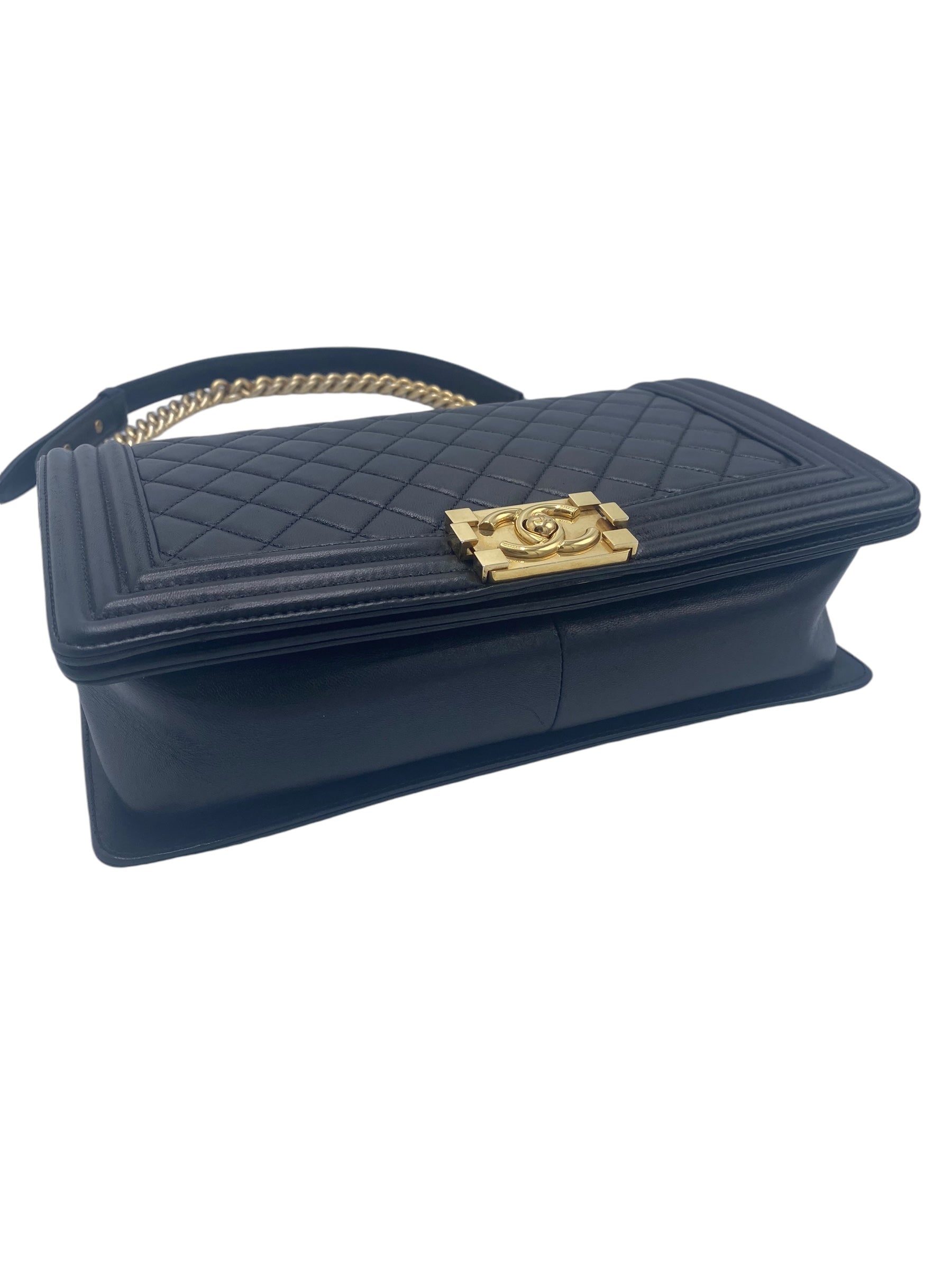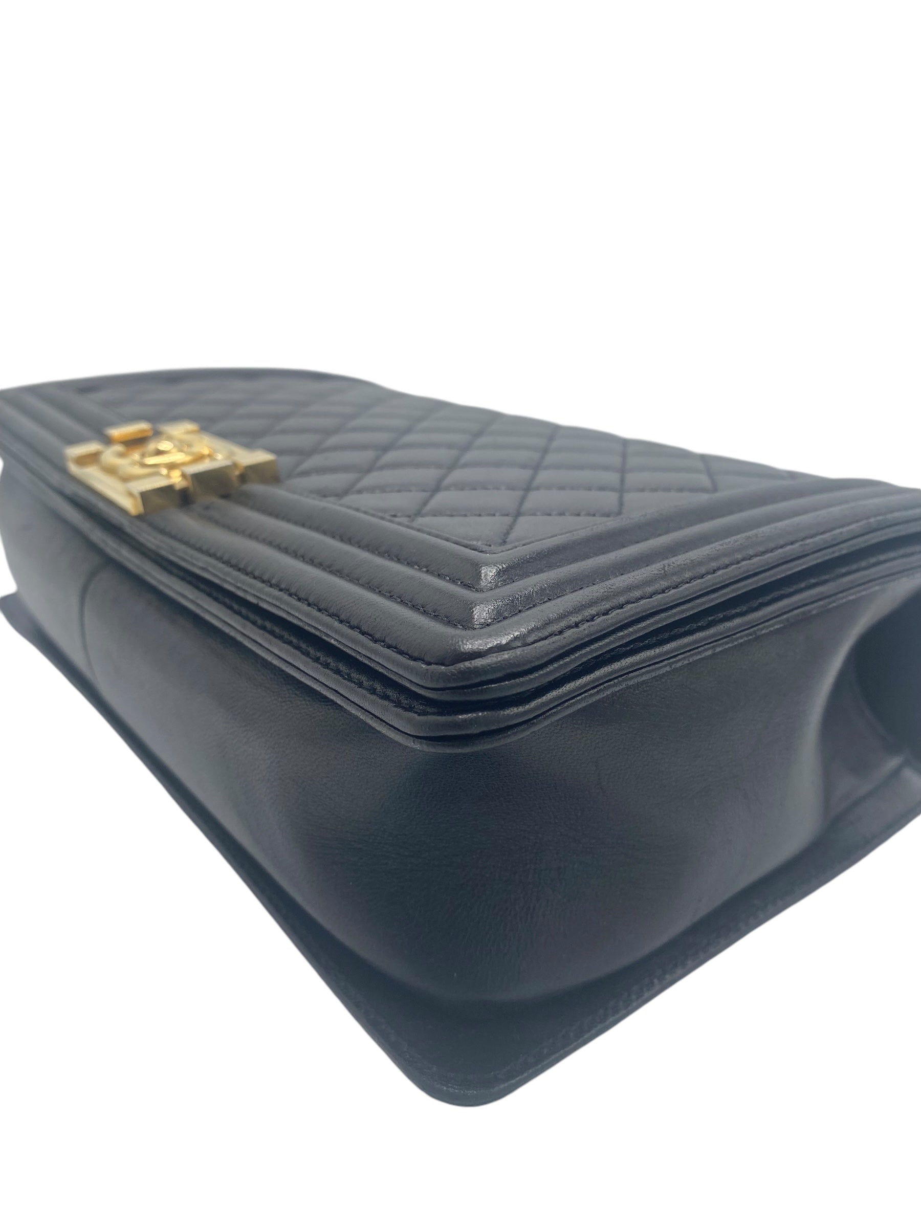 Chanel Boy Bag New Medium in Quilted Black Calfskin Gold Hardware GHW