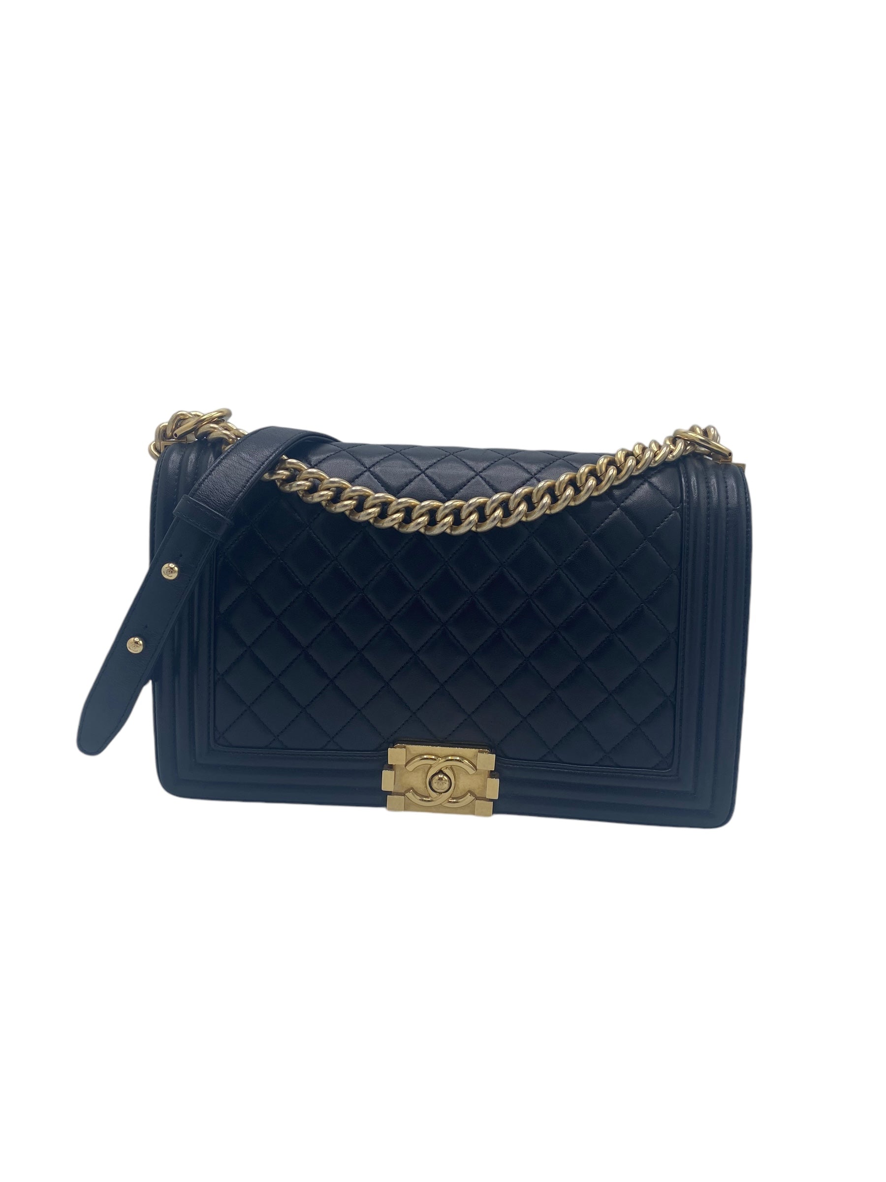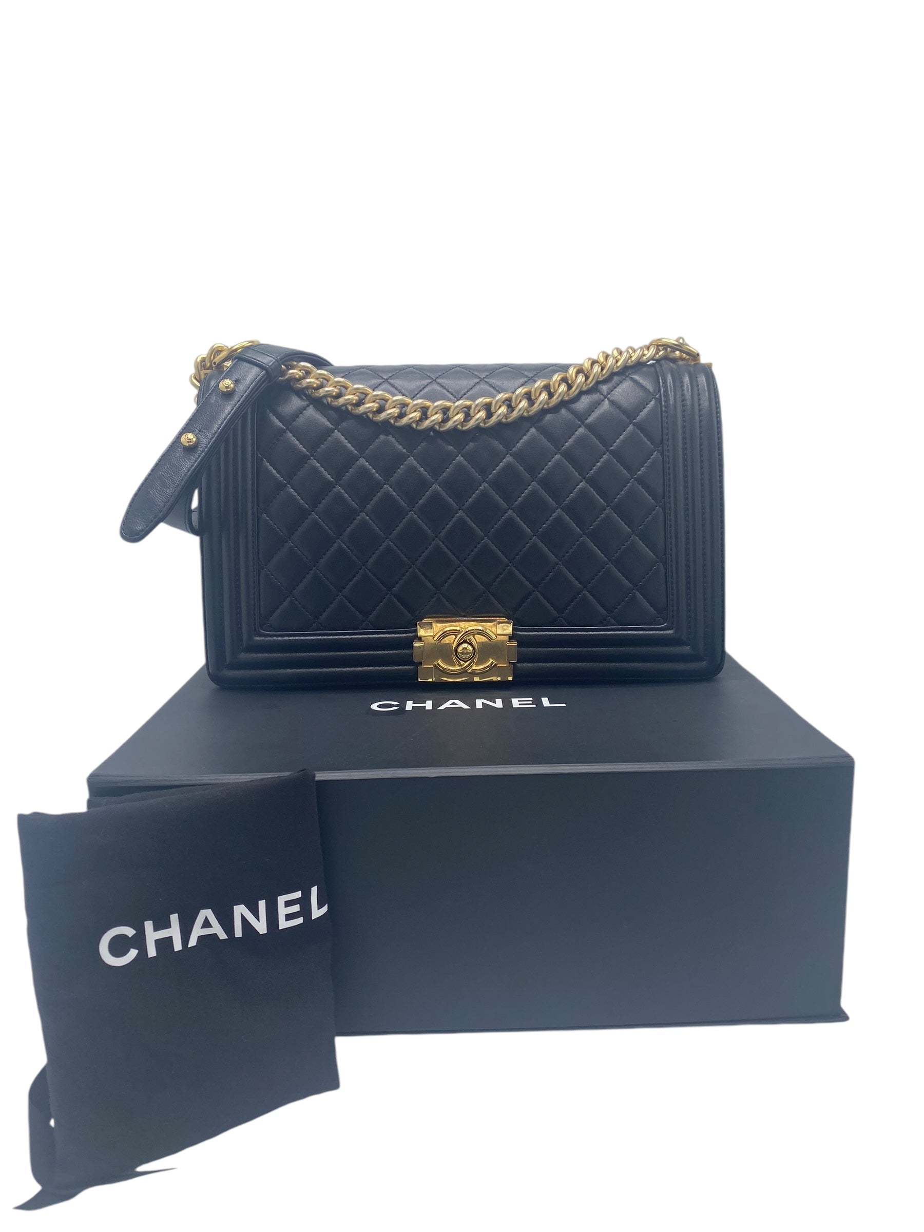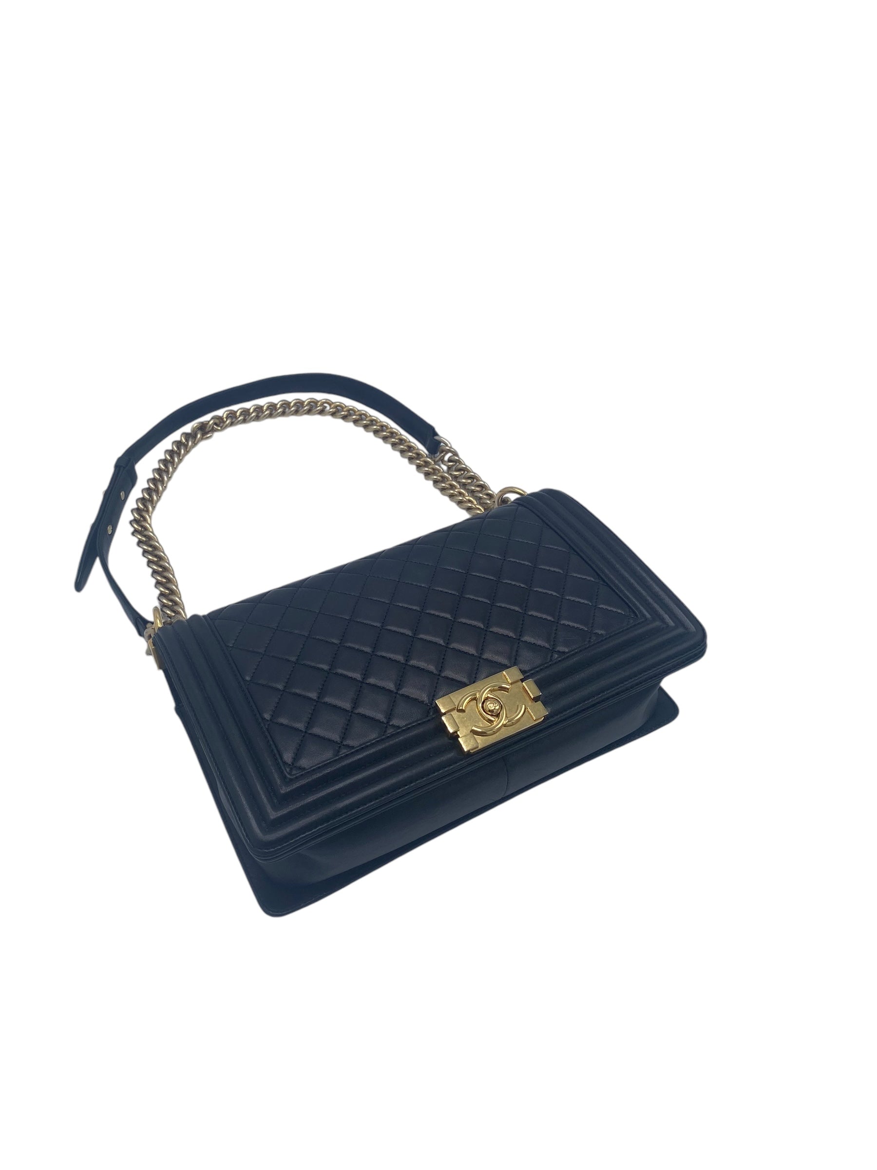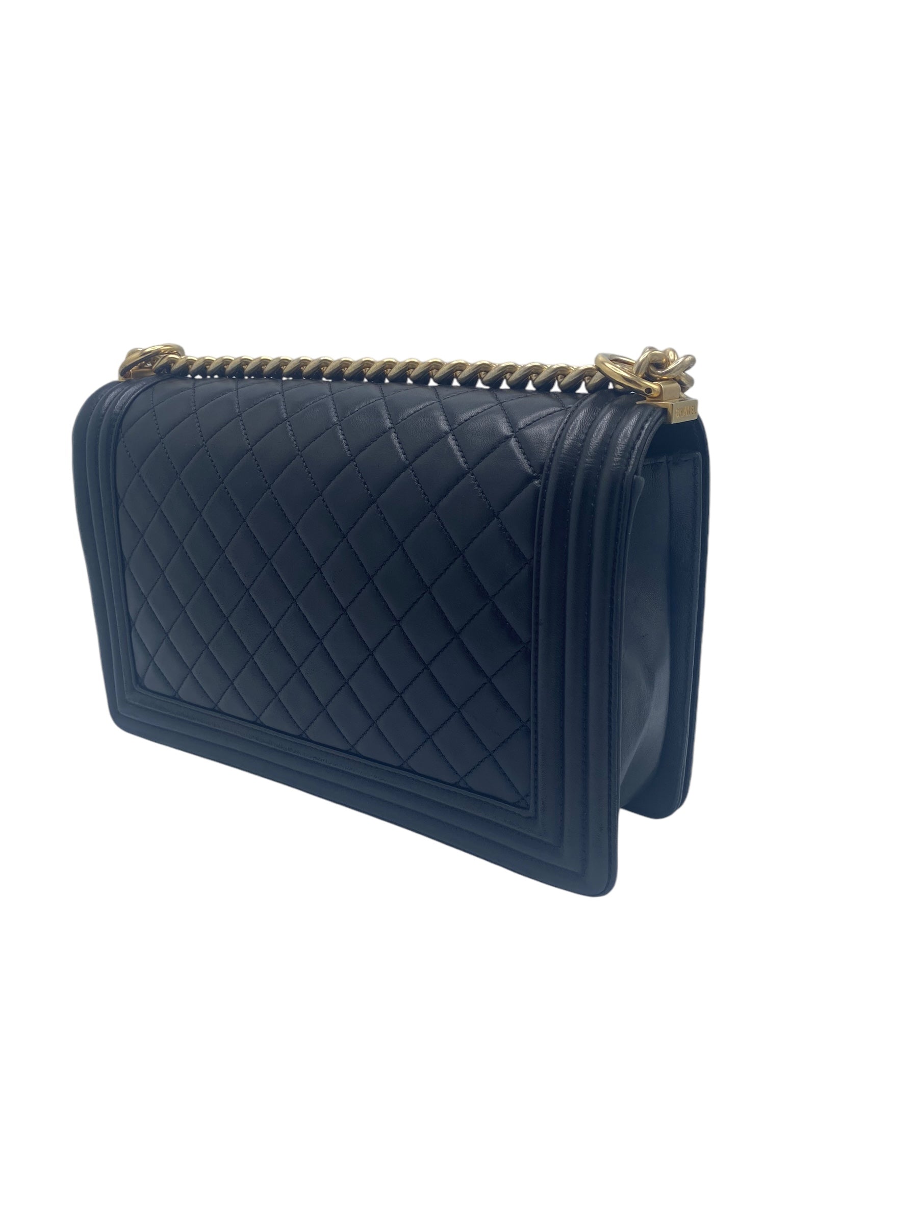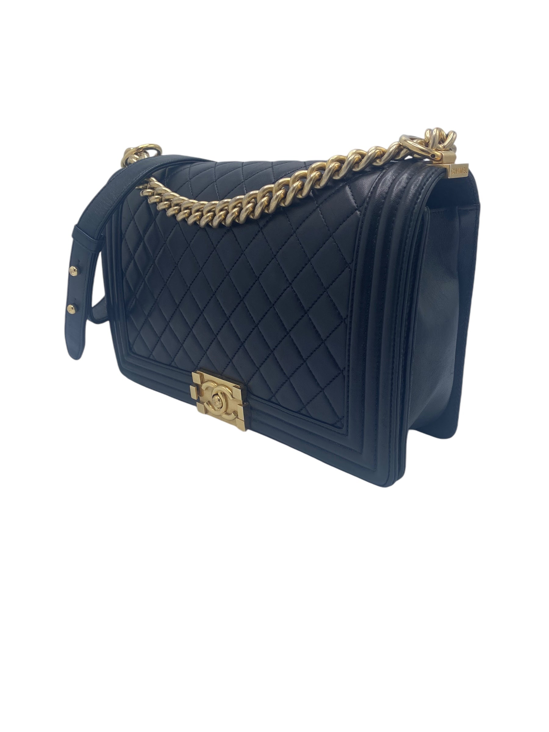 Chanel Boy Bag New Medium in Quilted Black Calfskin Gold Hardware GHW