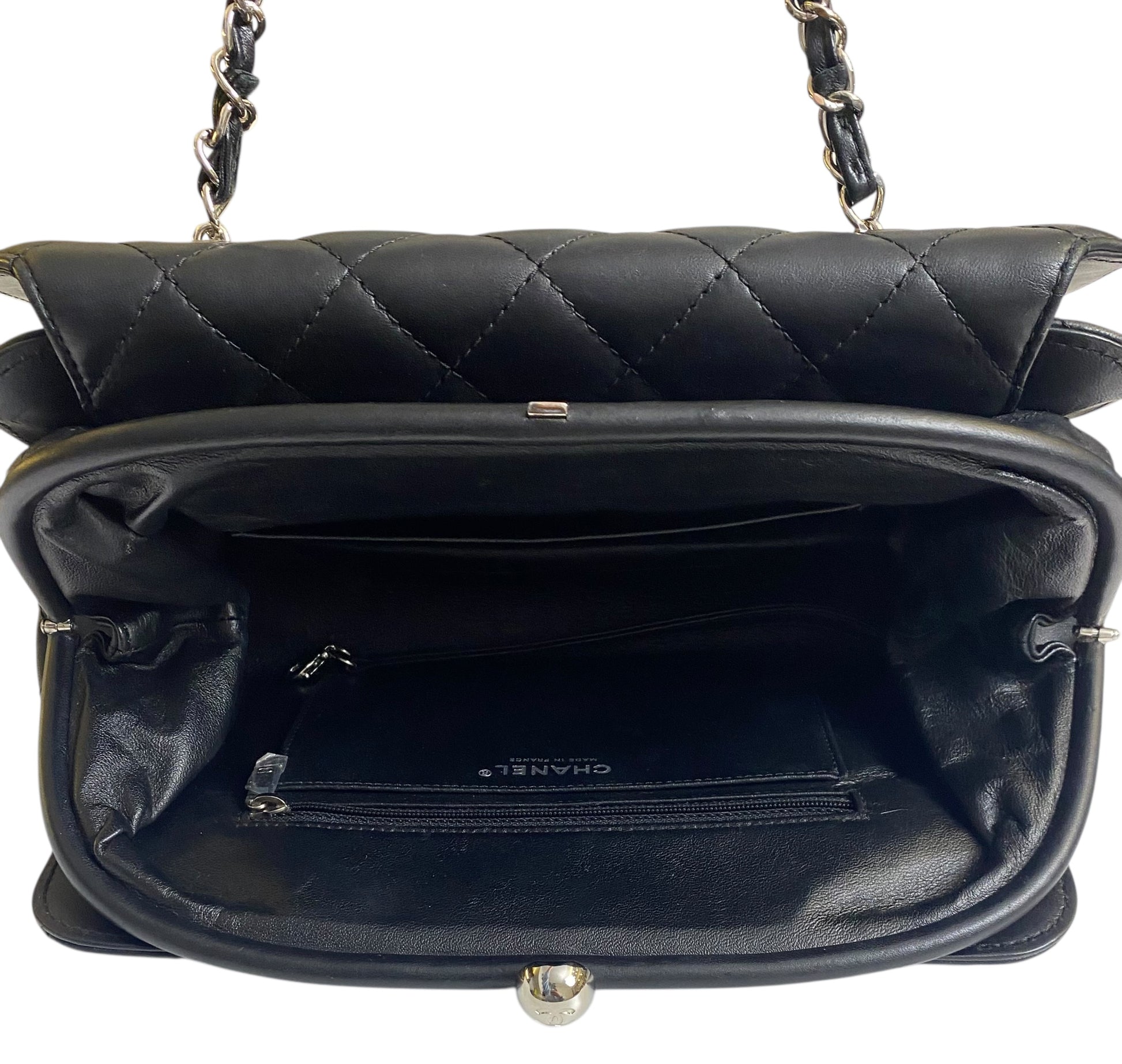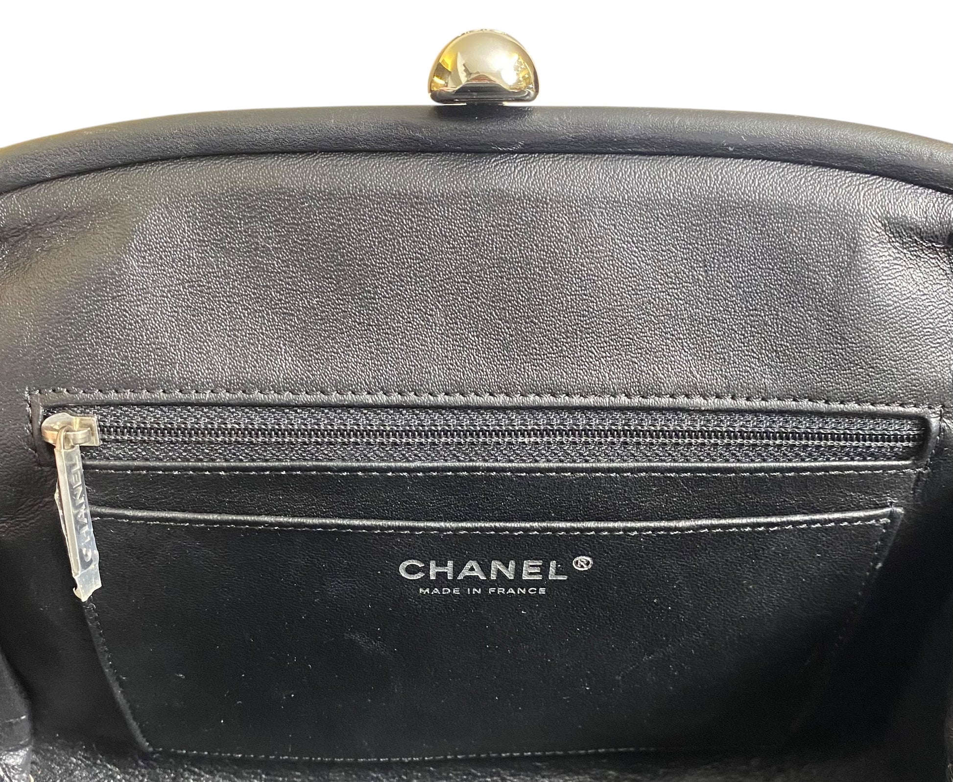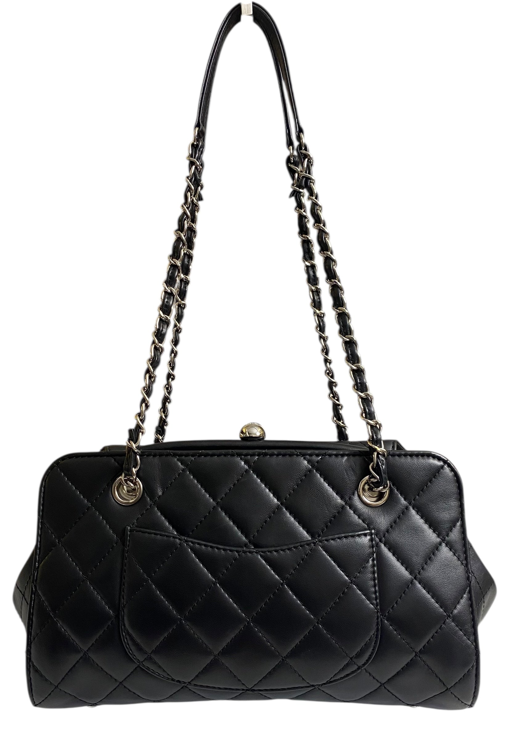 Chanel Classic Black CC Kisslock Lambskin Frame Compartment Bag