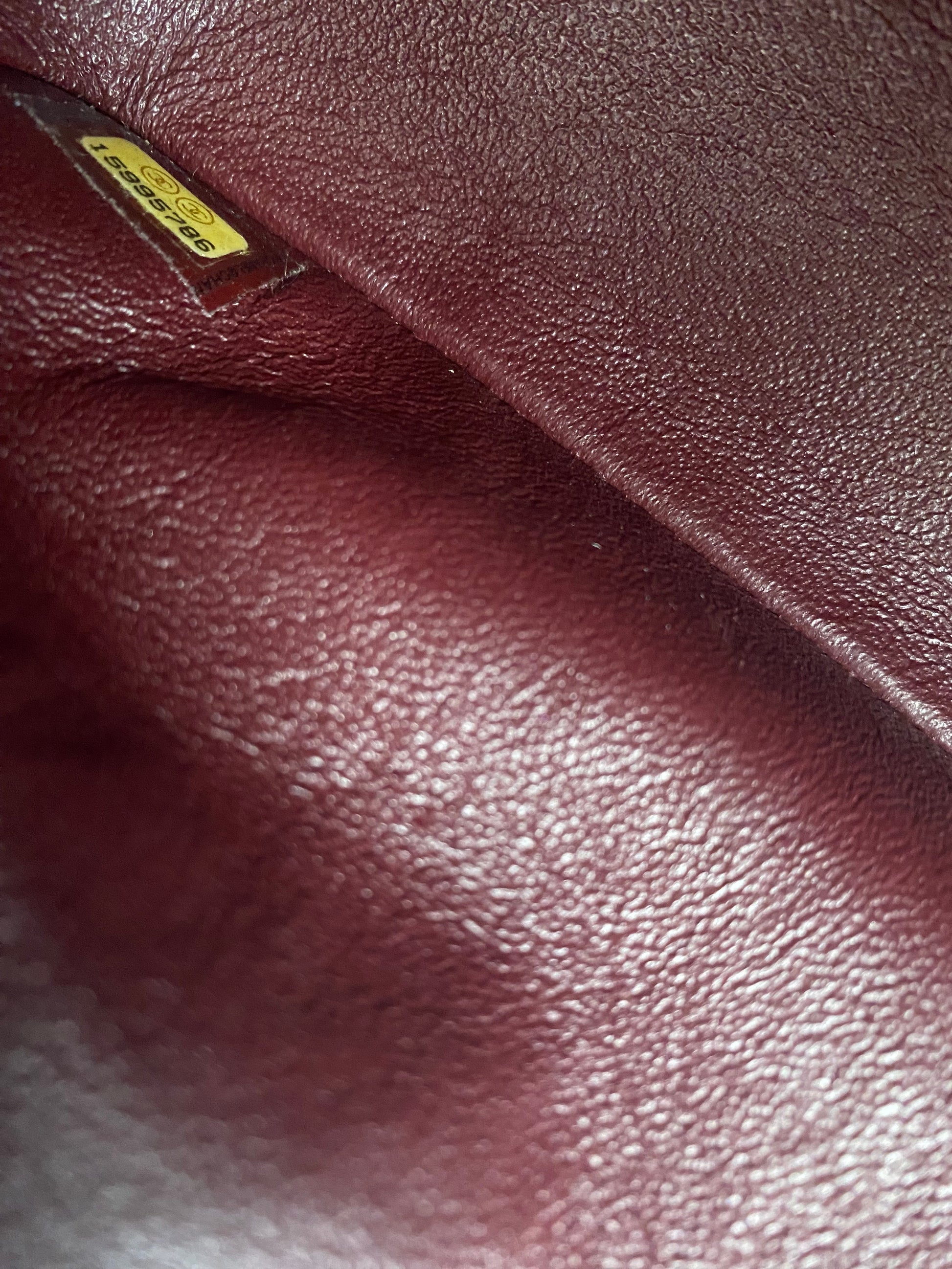 Condition: Rarely Used, Very Good/Excellent Condition. Super puffy quilts and soft leather with a beautiful sheen to it. Shiny Gold hardware with hairline scratches. Clean Corners, Clean Burgundy interior. Normal indentation on interior double flap where the chain rests.