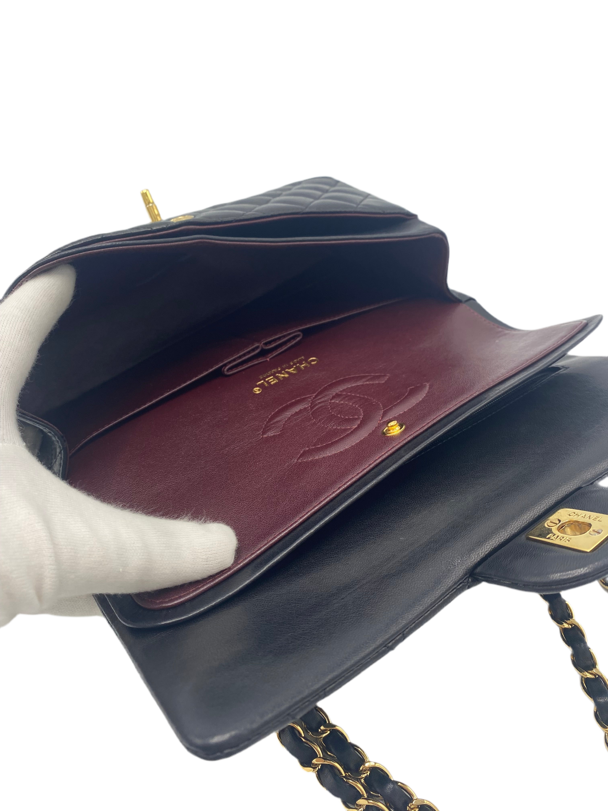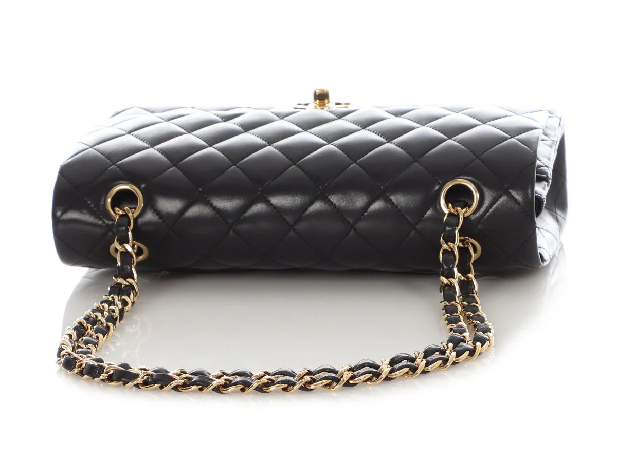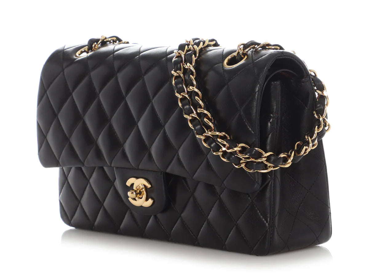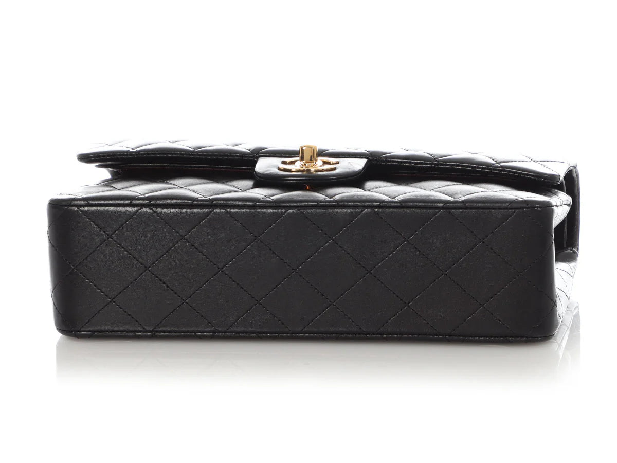 Chanel Classic Timeless Double Flap Medium Lambskin Black Shiny Gold Hardware