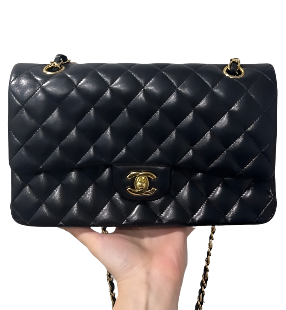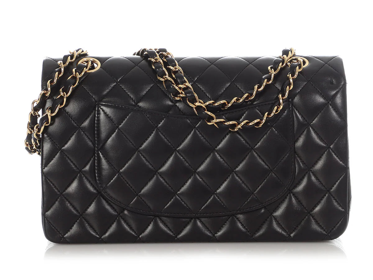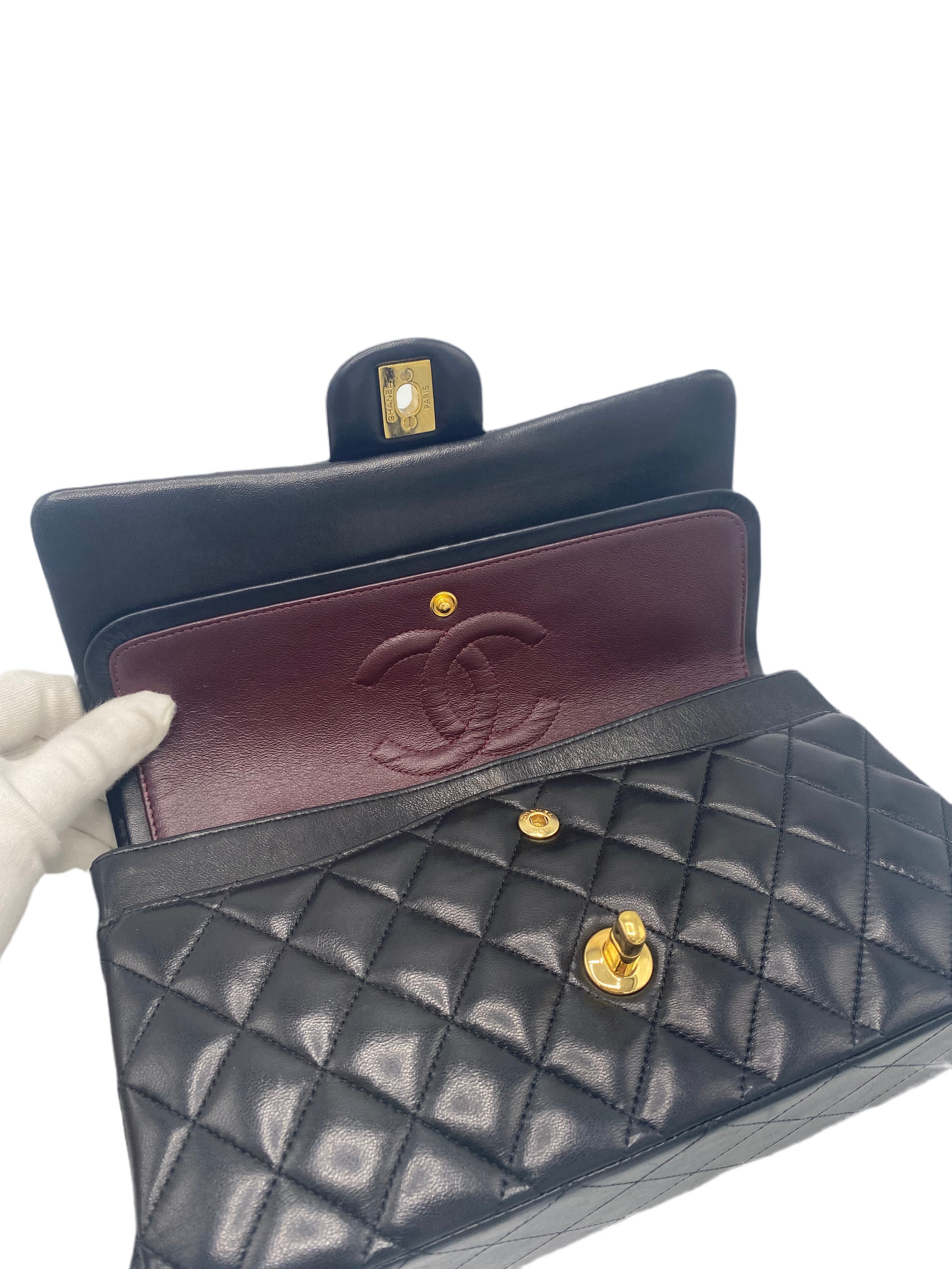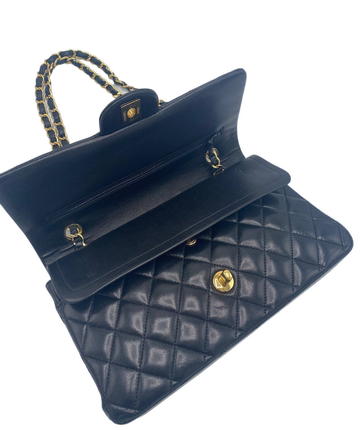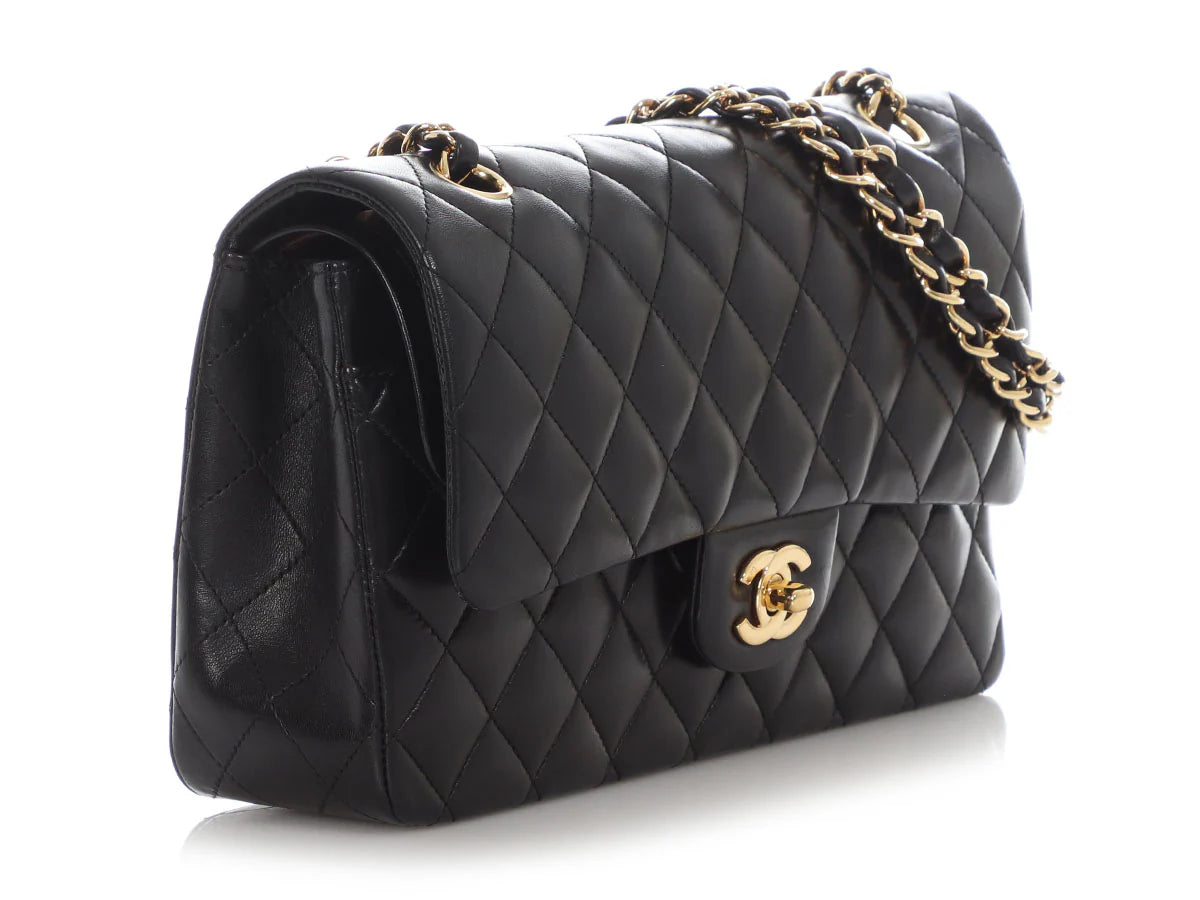 Chanel Classic Timeless Double Flap Medium Lambskin Black Shiny Gold Hardware