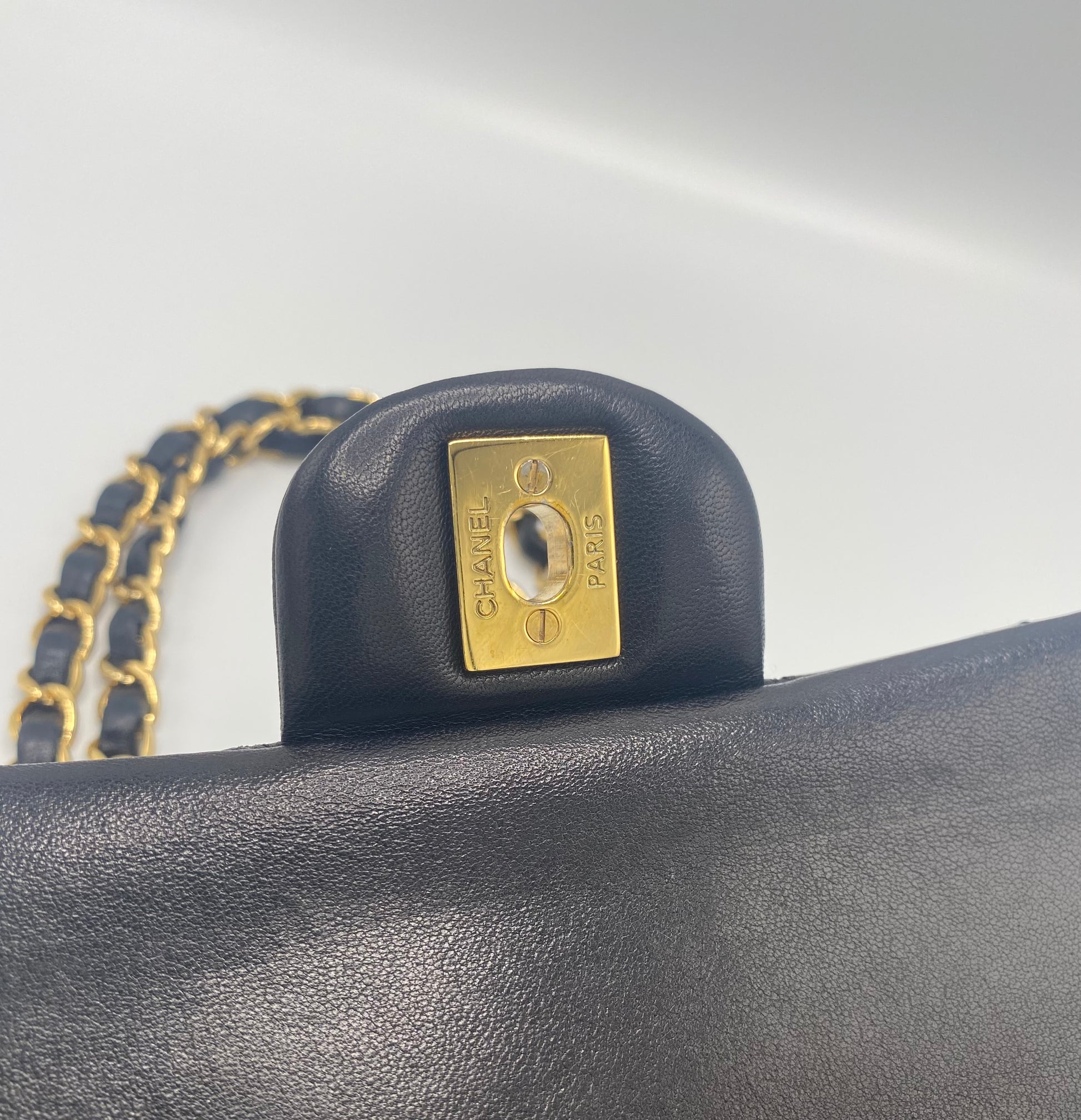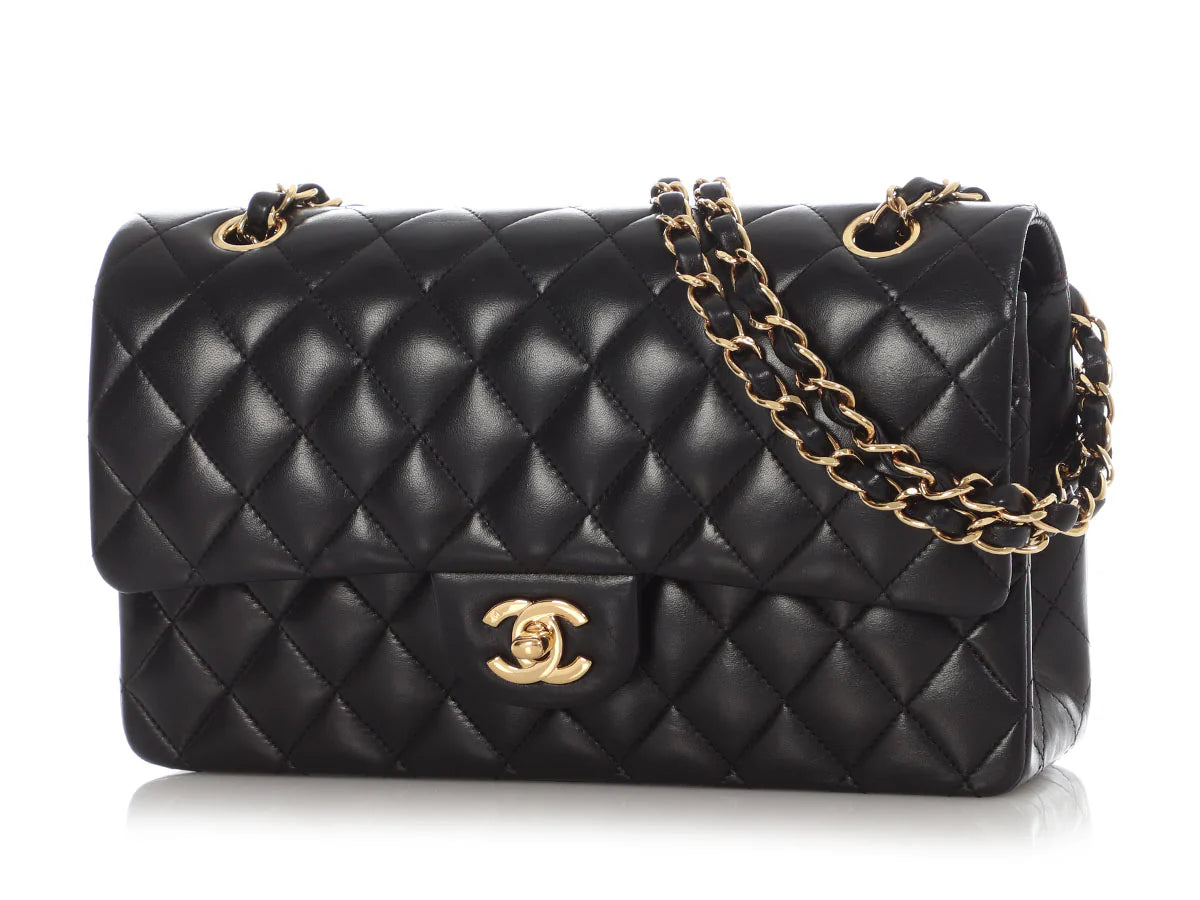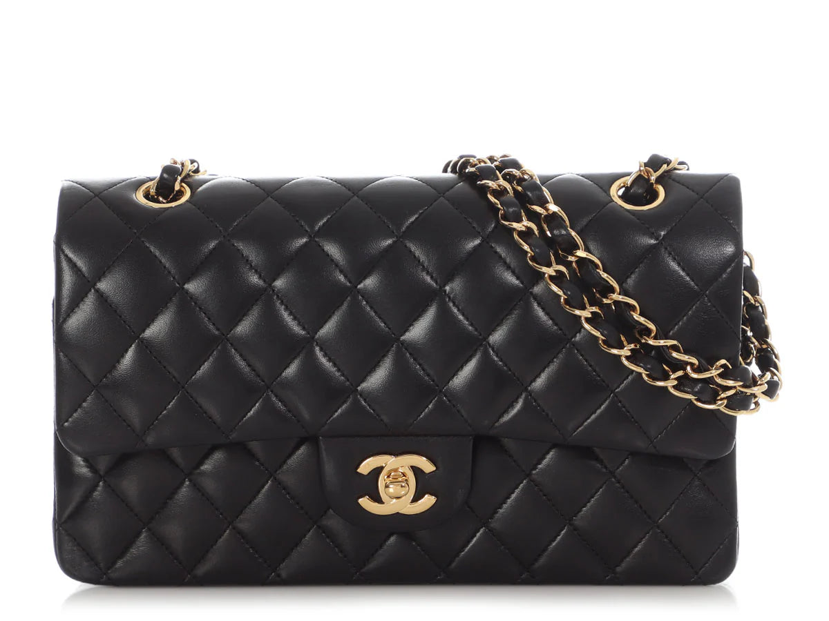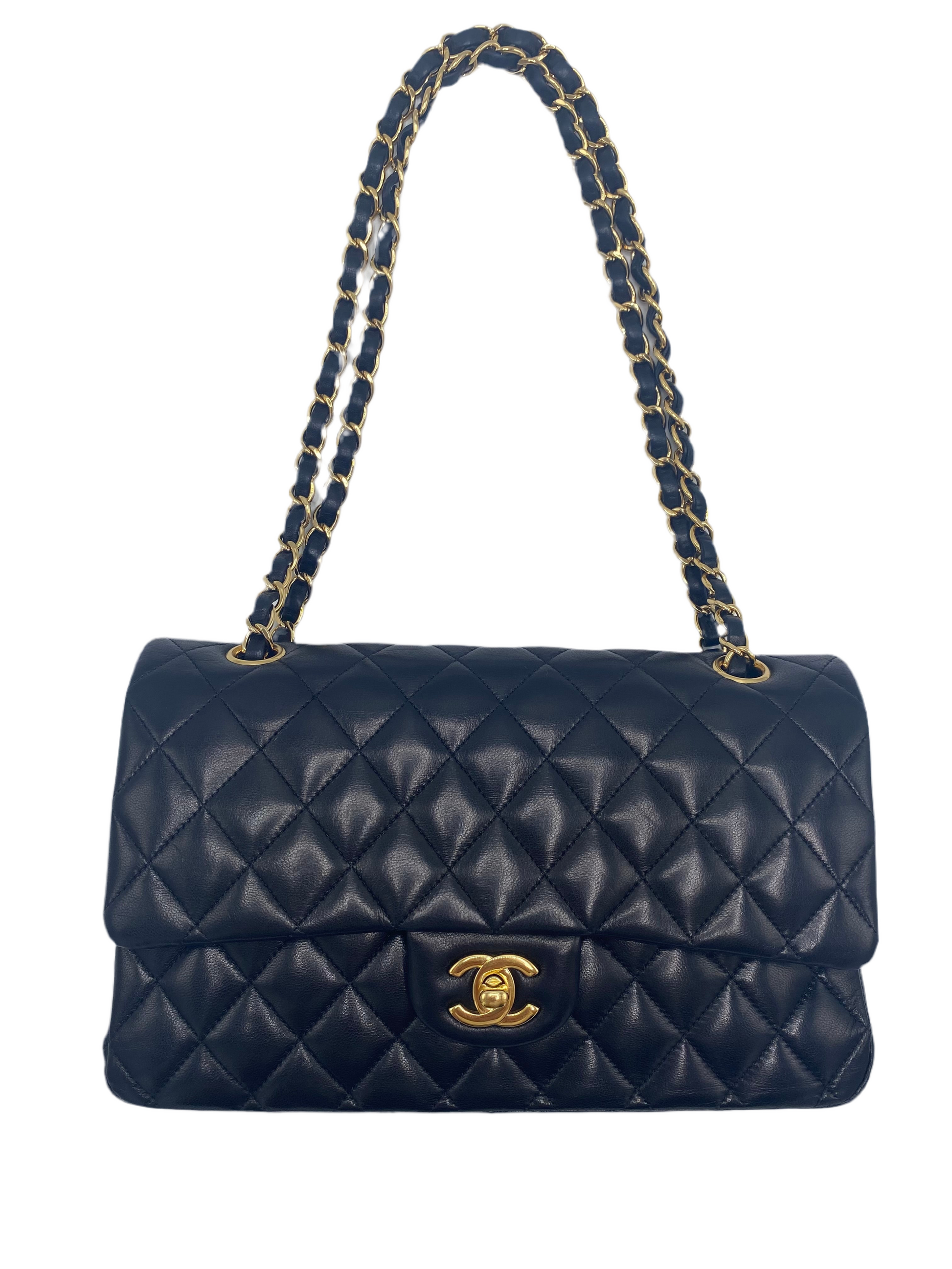 Chanel Classic Timeless Double Flap Medium Lambskin Black Shiny Gold Hardware
