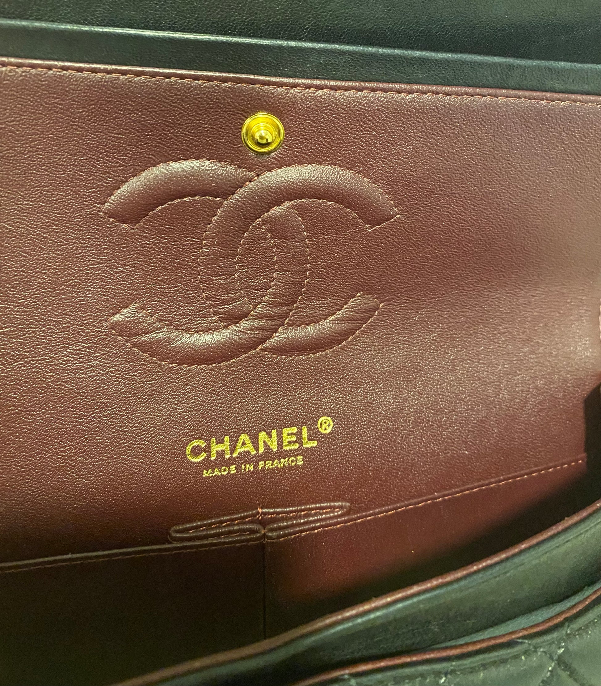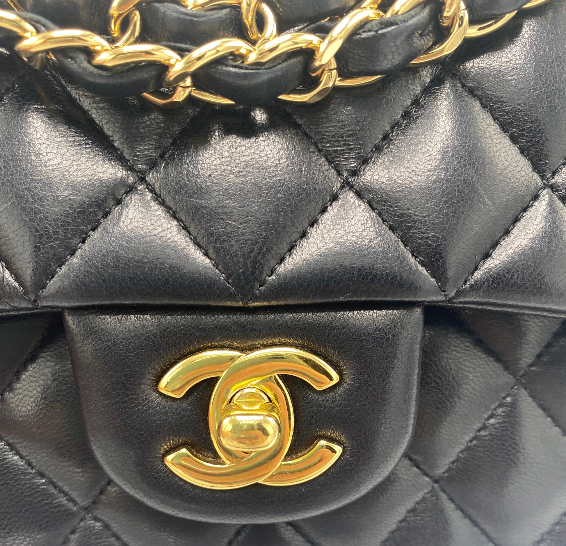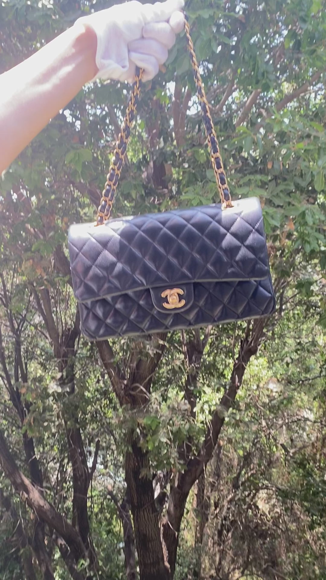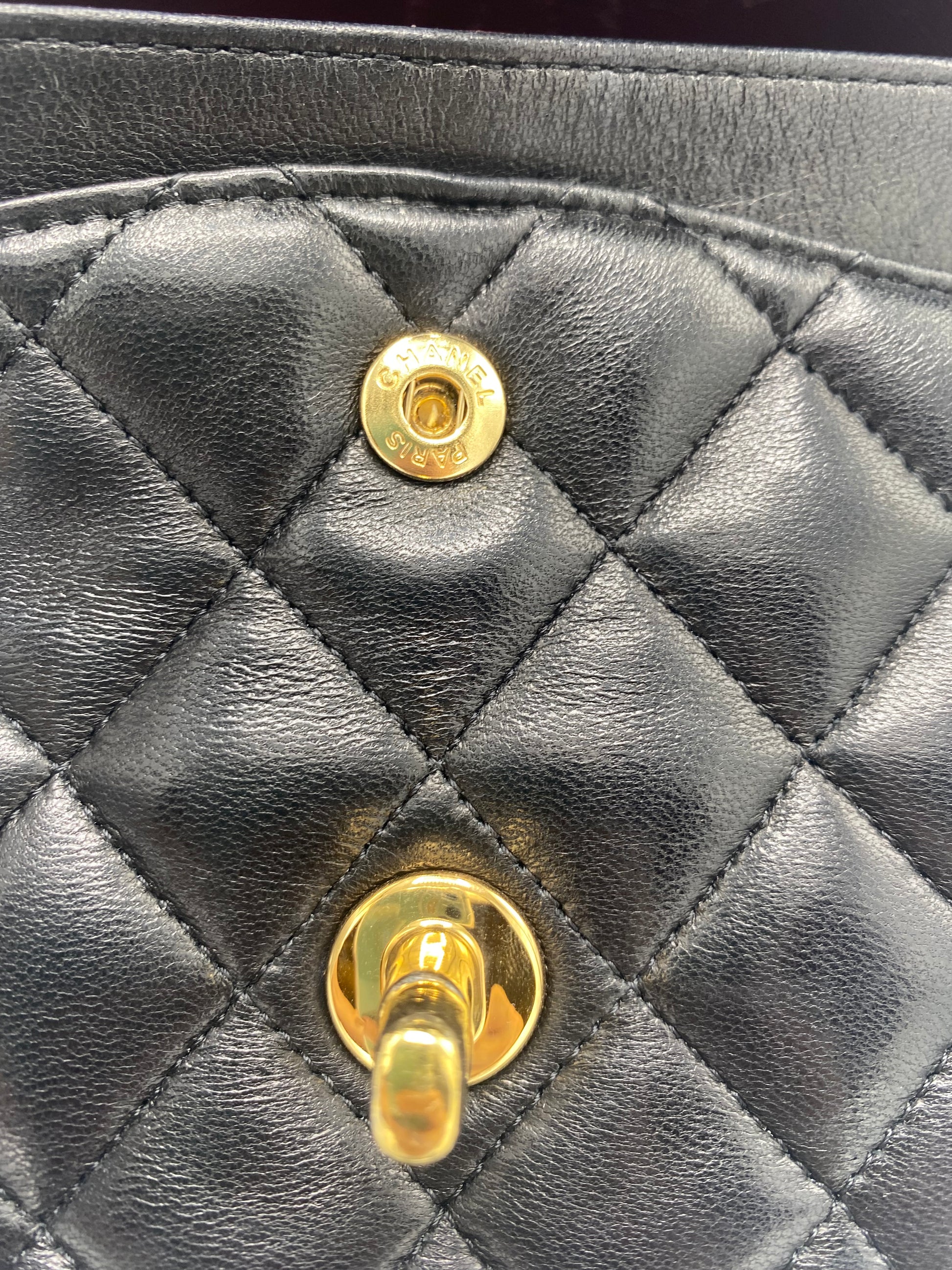 Chanel Classic Timeless Double Flap Medium Lambskin Black Shiny Gold Hardware