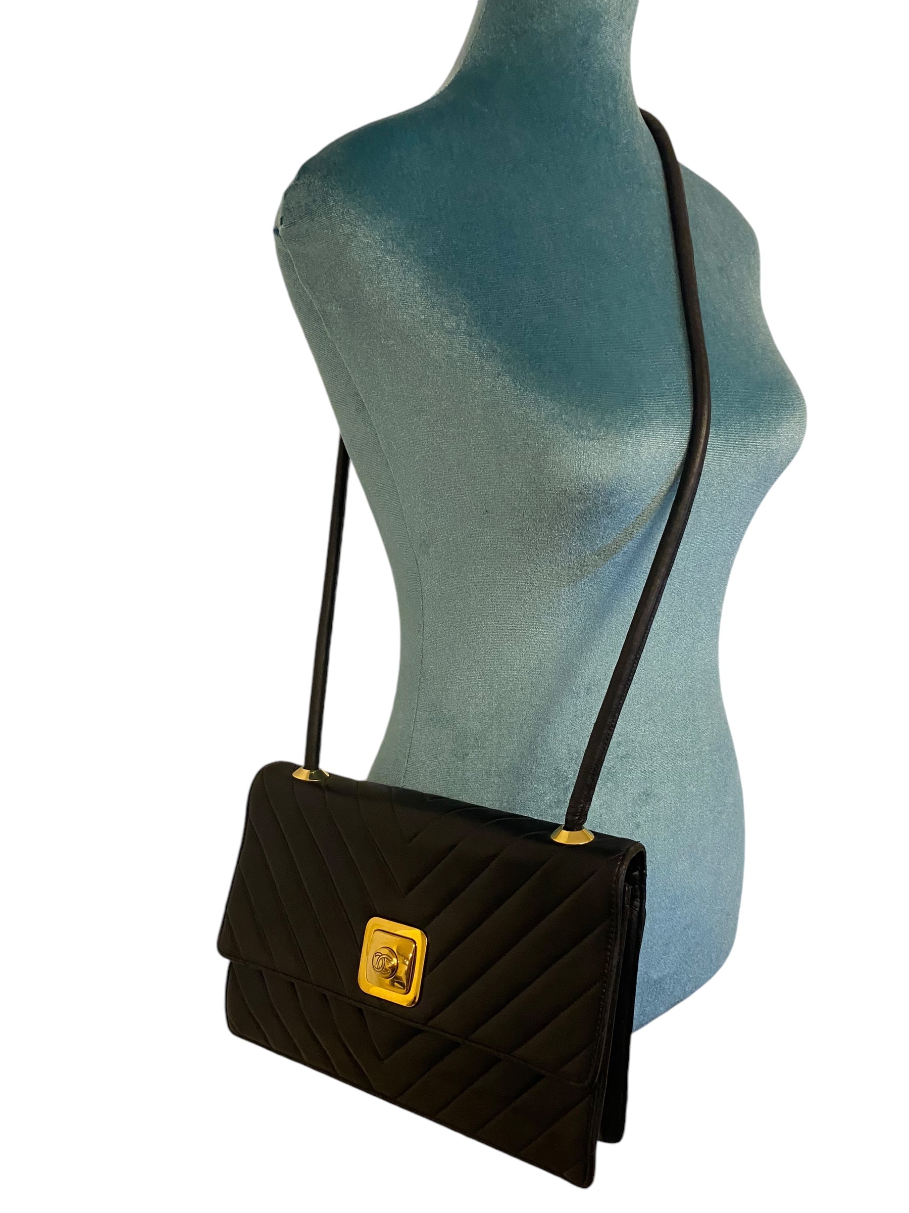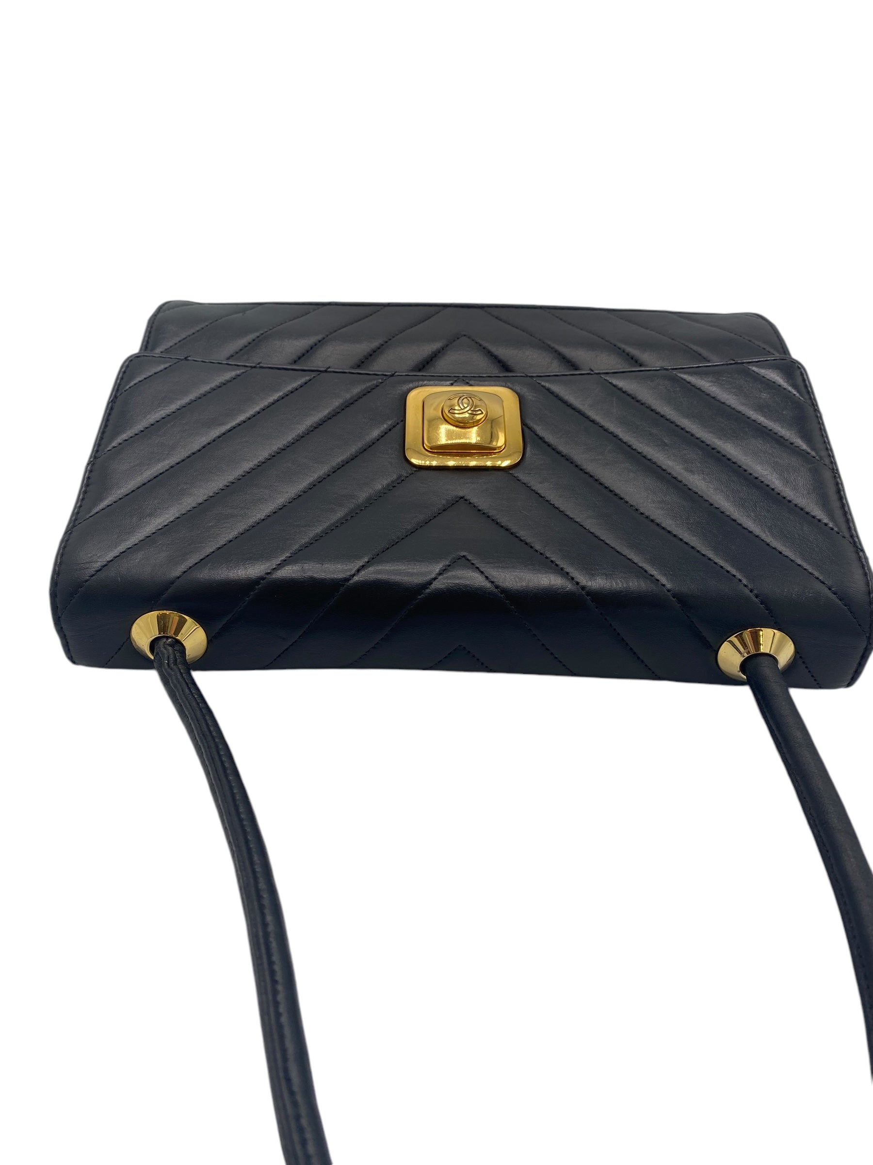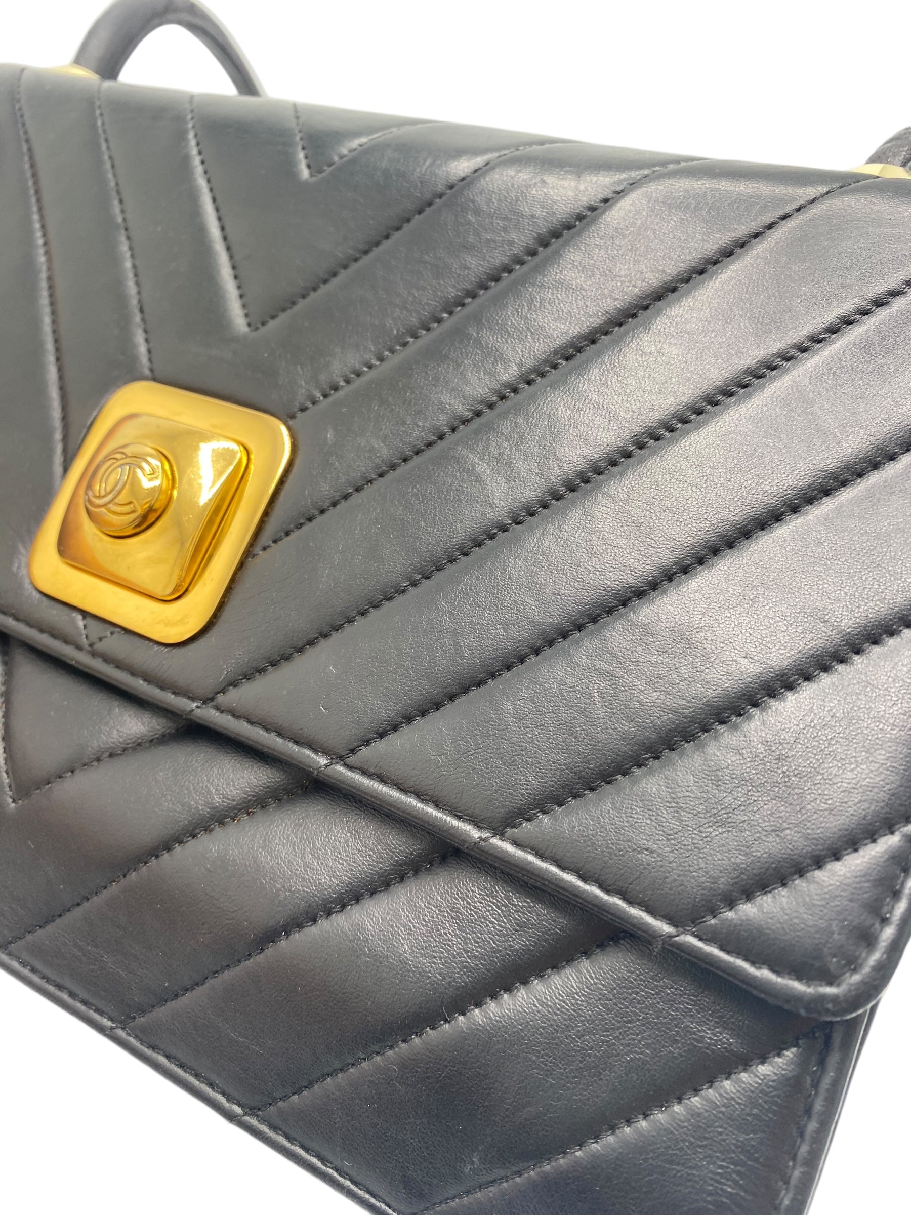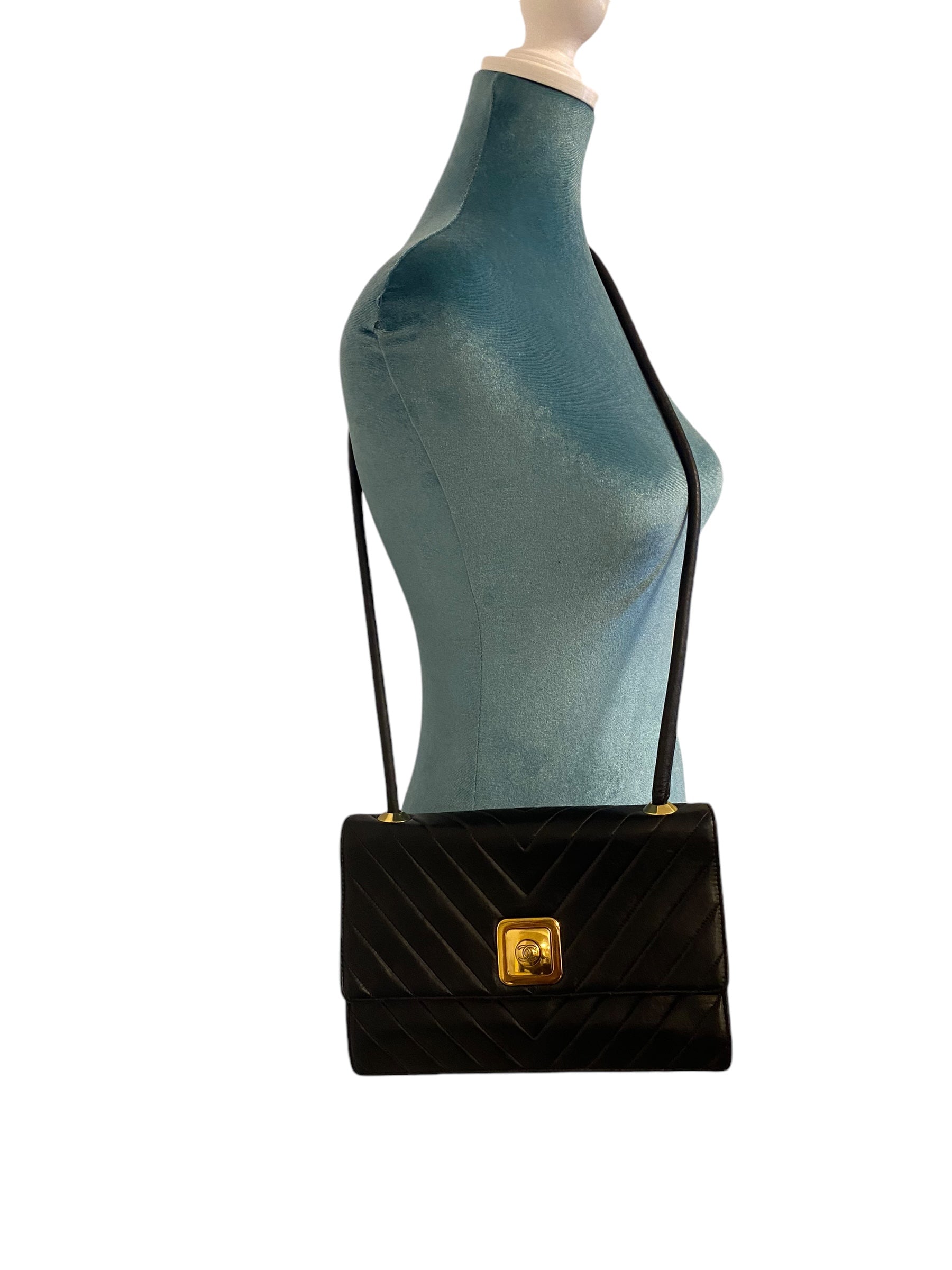 Chanel Vintage 90’s CC Medium Black Chevron Lambskin Crossbody Classic Flap Bag 24K Plated GHW