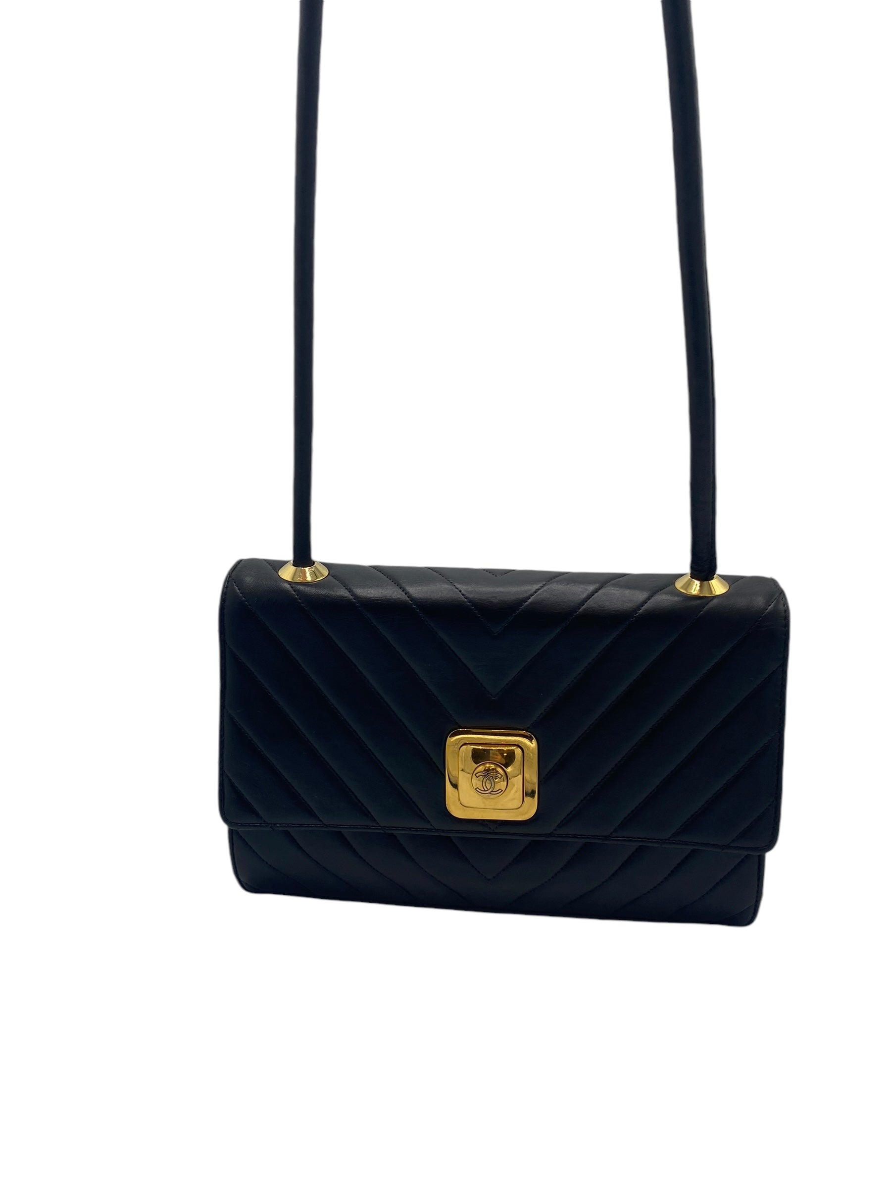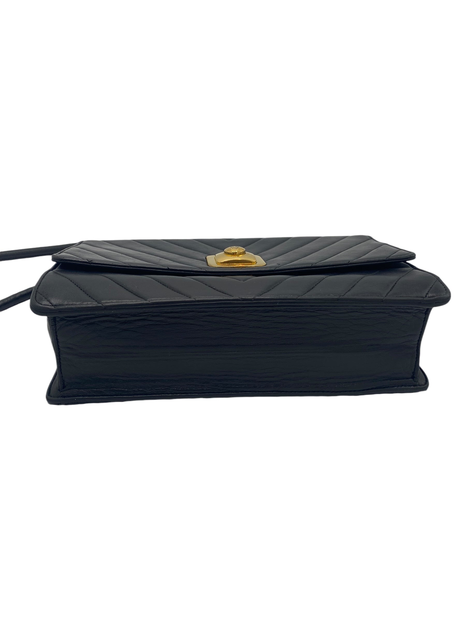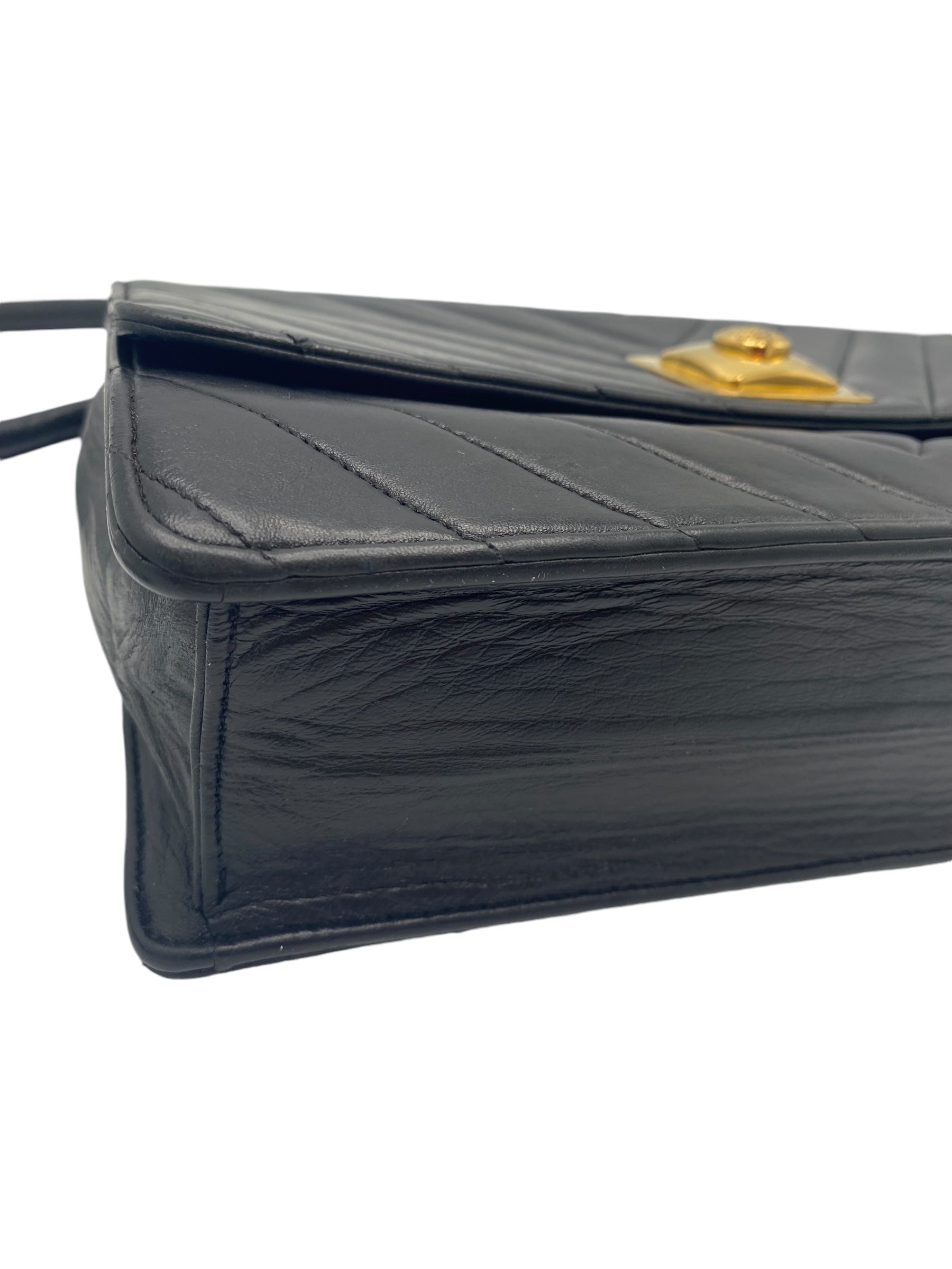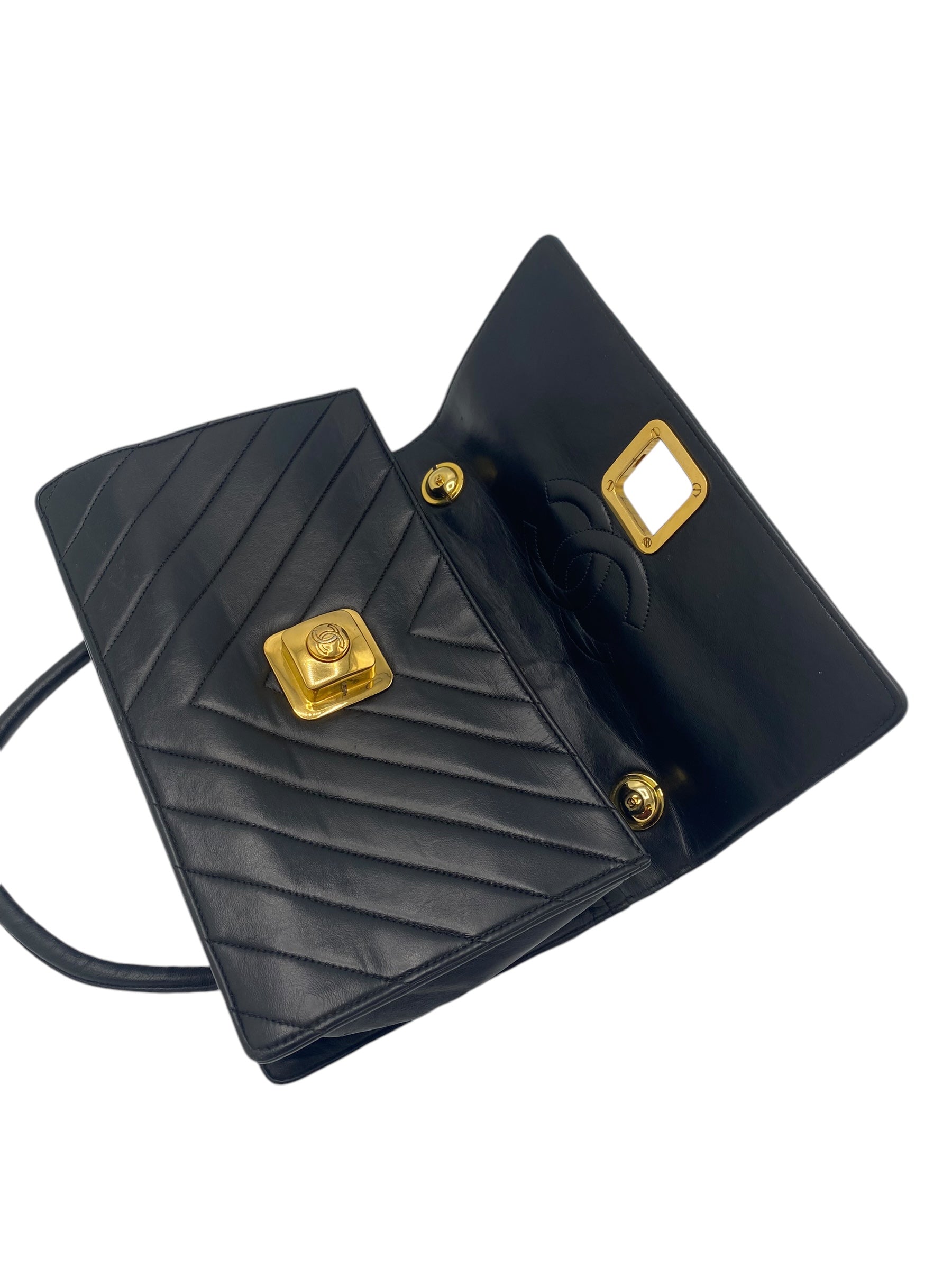 Chanel Vintage 90’s CC Medium Black Chevron Lambskin Crossbody Classic Flap Bag 24K Plated GHW
