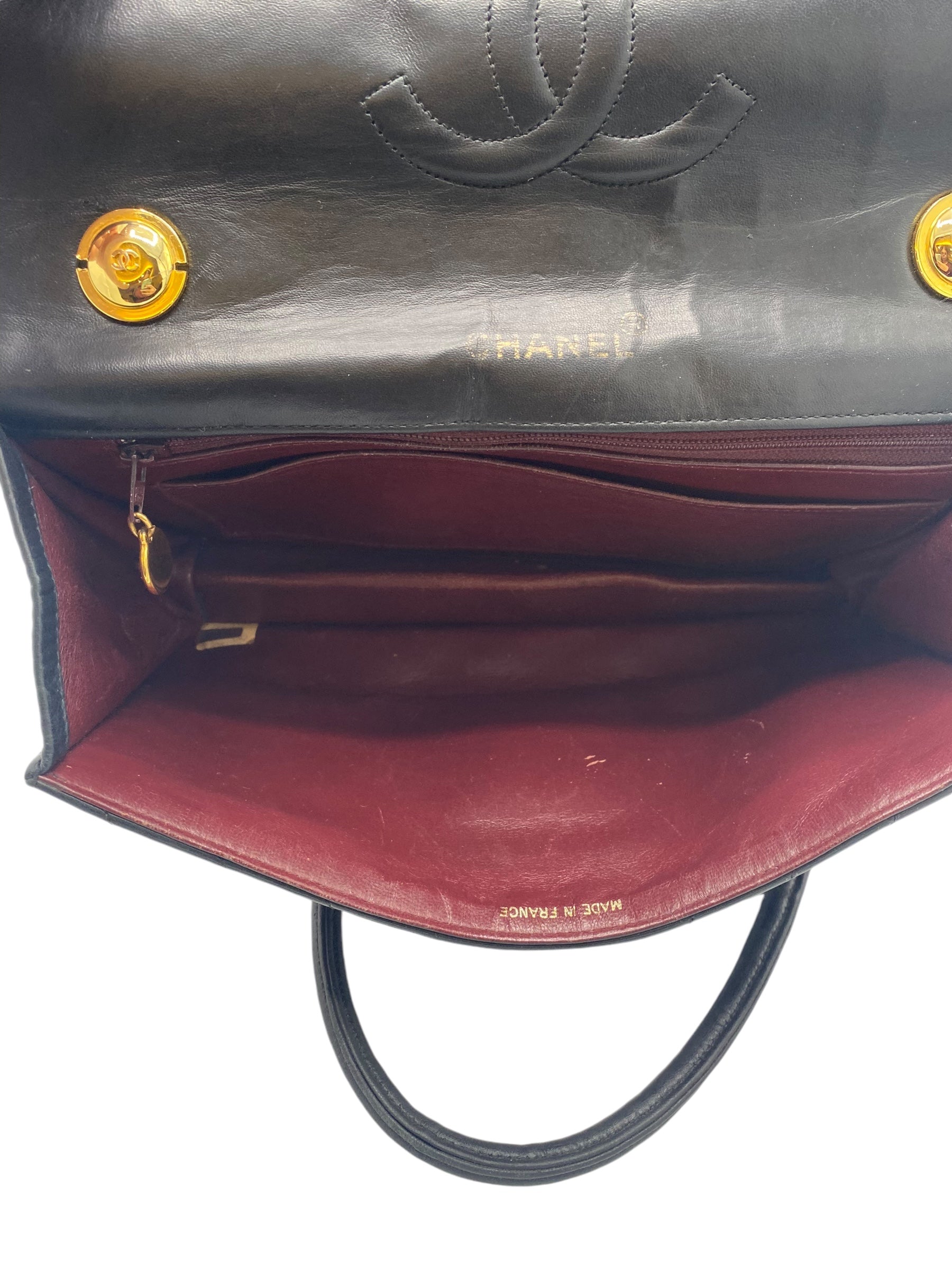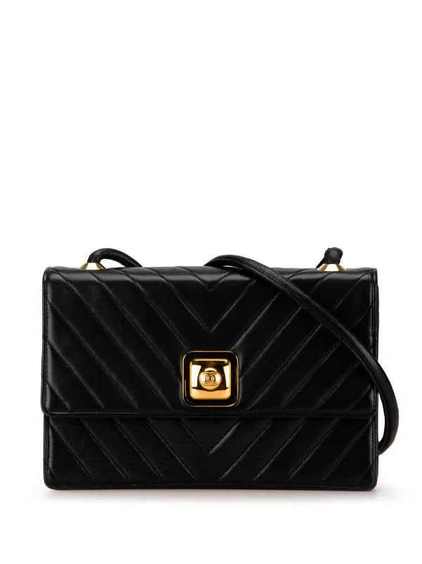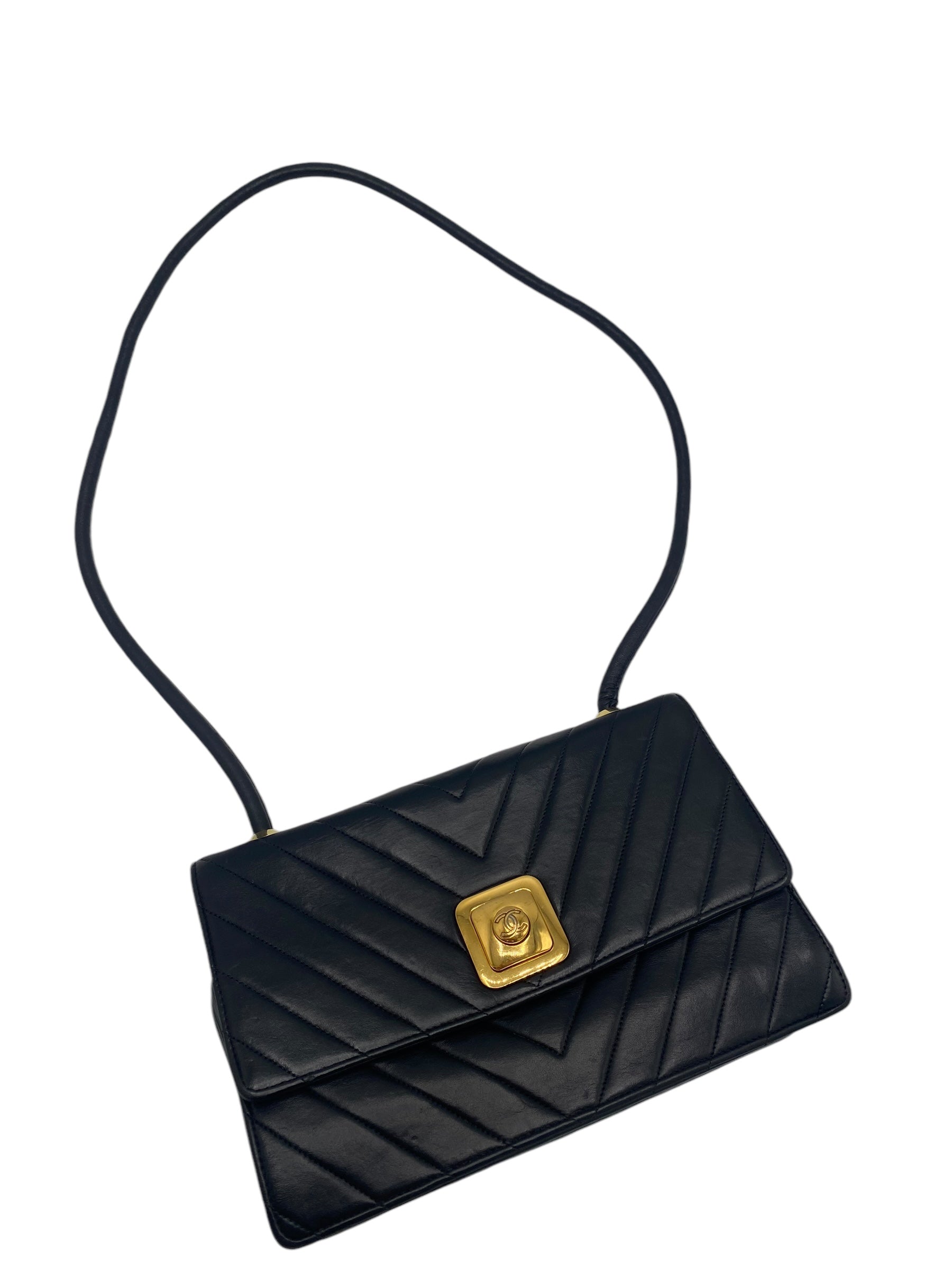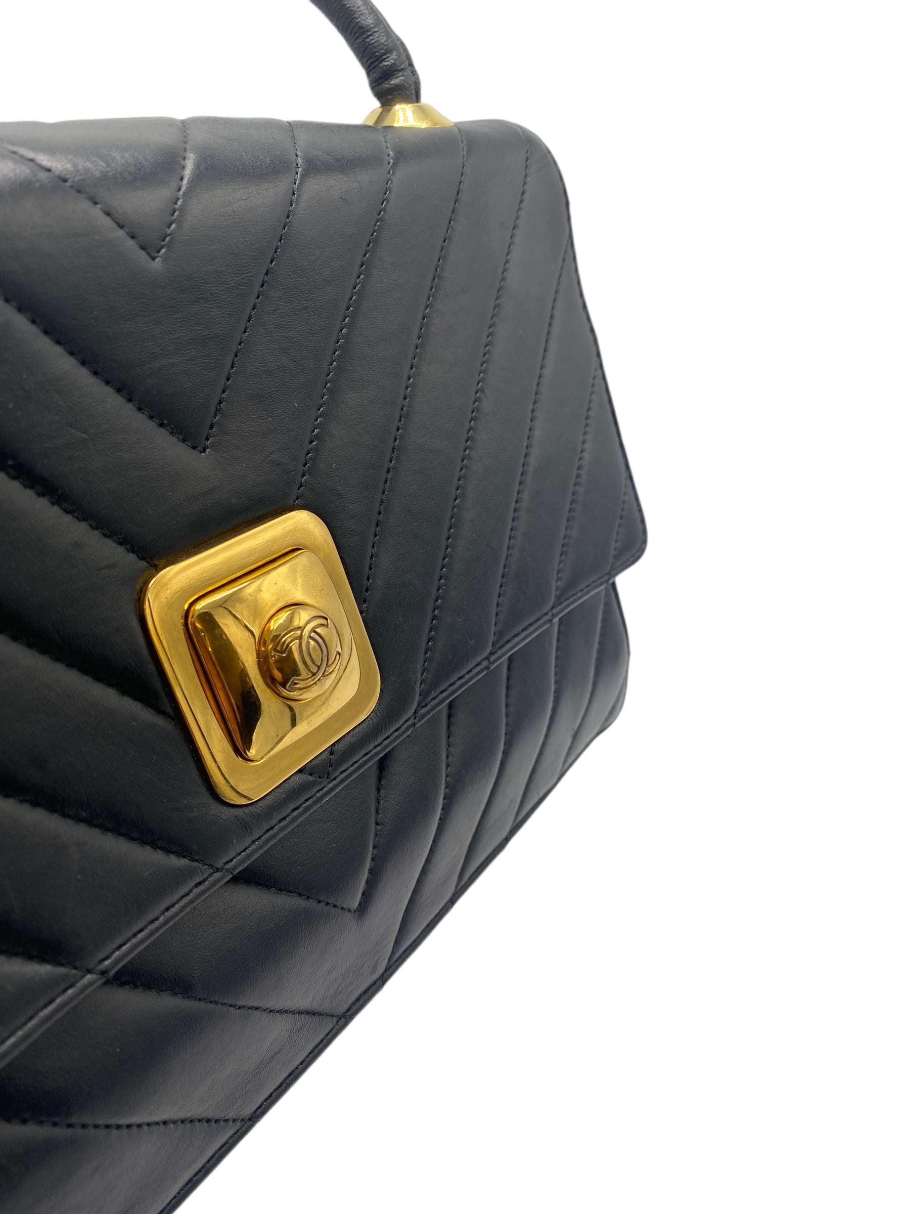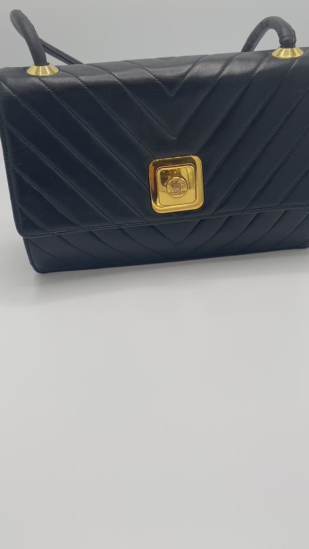 Chanel Vintage 90’s CC Medium Black Chevron Lambskin Crossbody Classic Flap Bag 24K Plated GHW