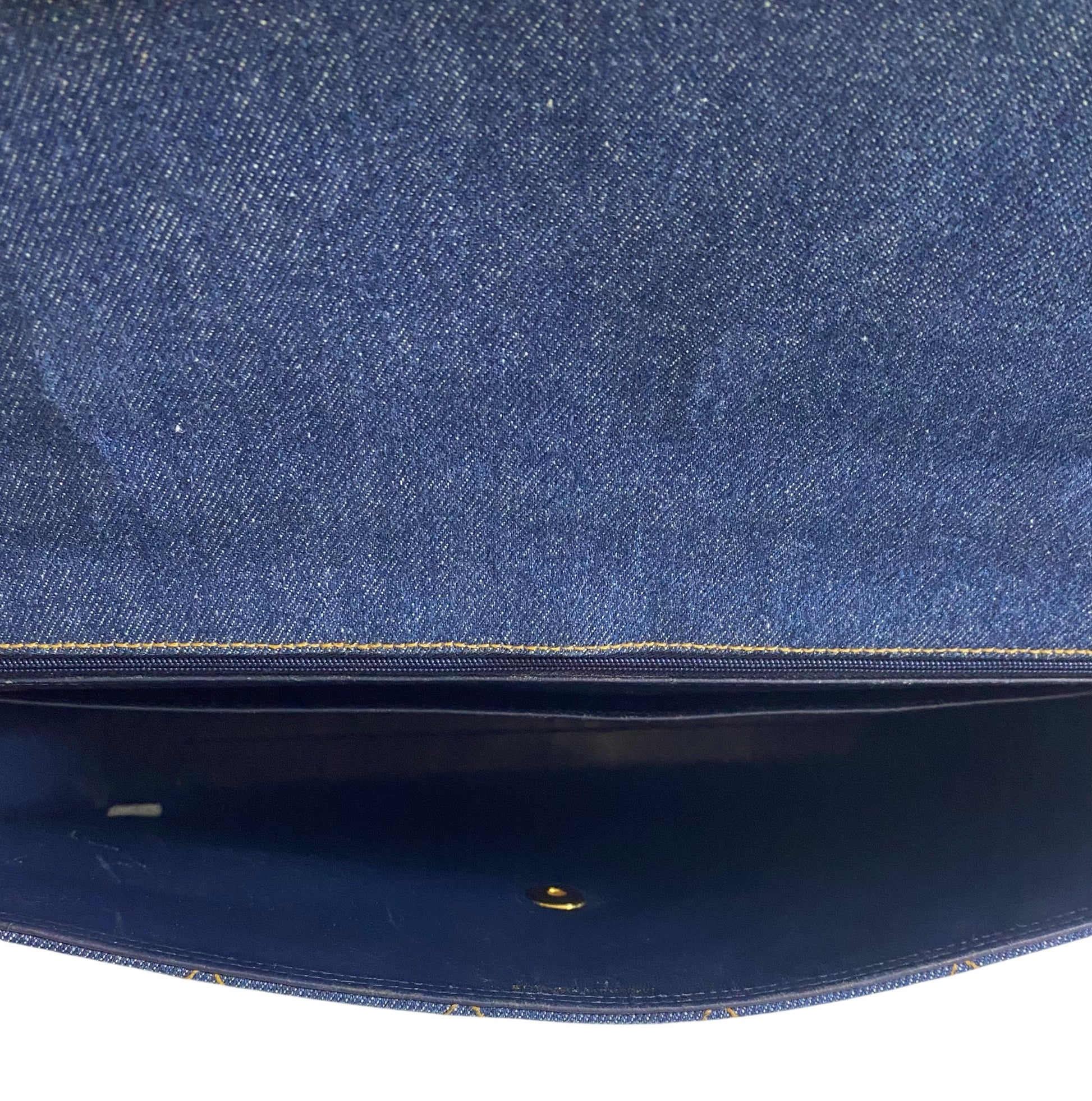 Chanel Vintage 1996 XL Blue Denim Quilted Jumbo Top Handle Briefcase Handbag