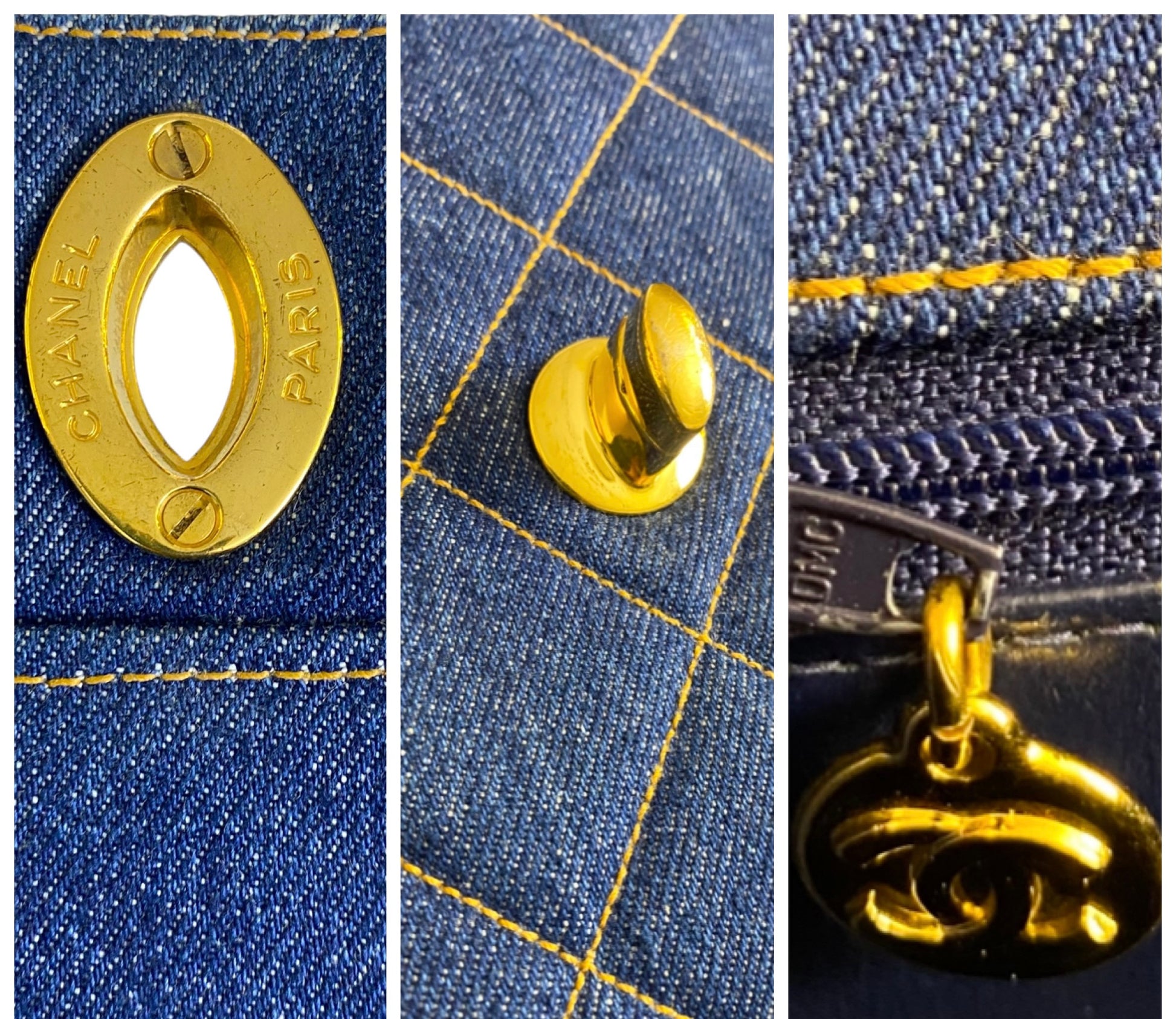 Gorgeous Blue Denim Top handle with 24 K gold plated big CC Turn Lock.