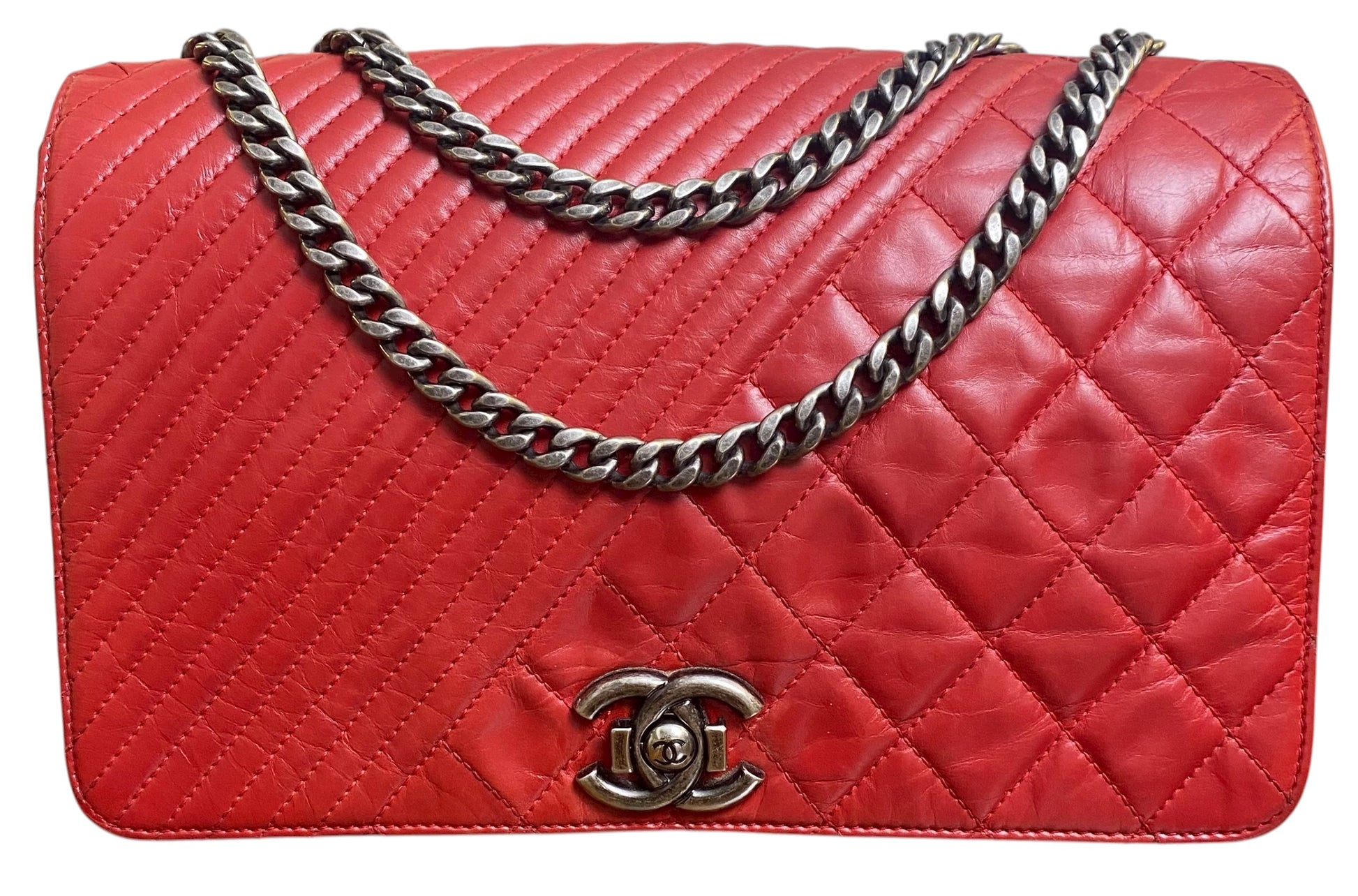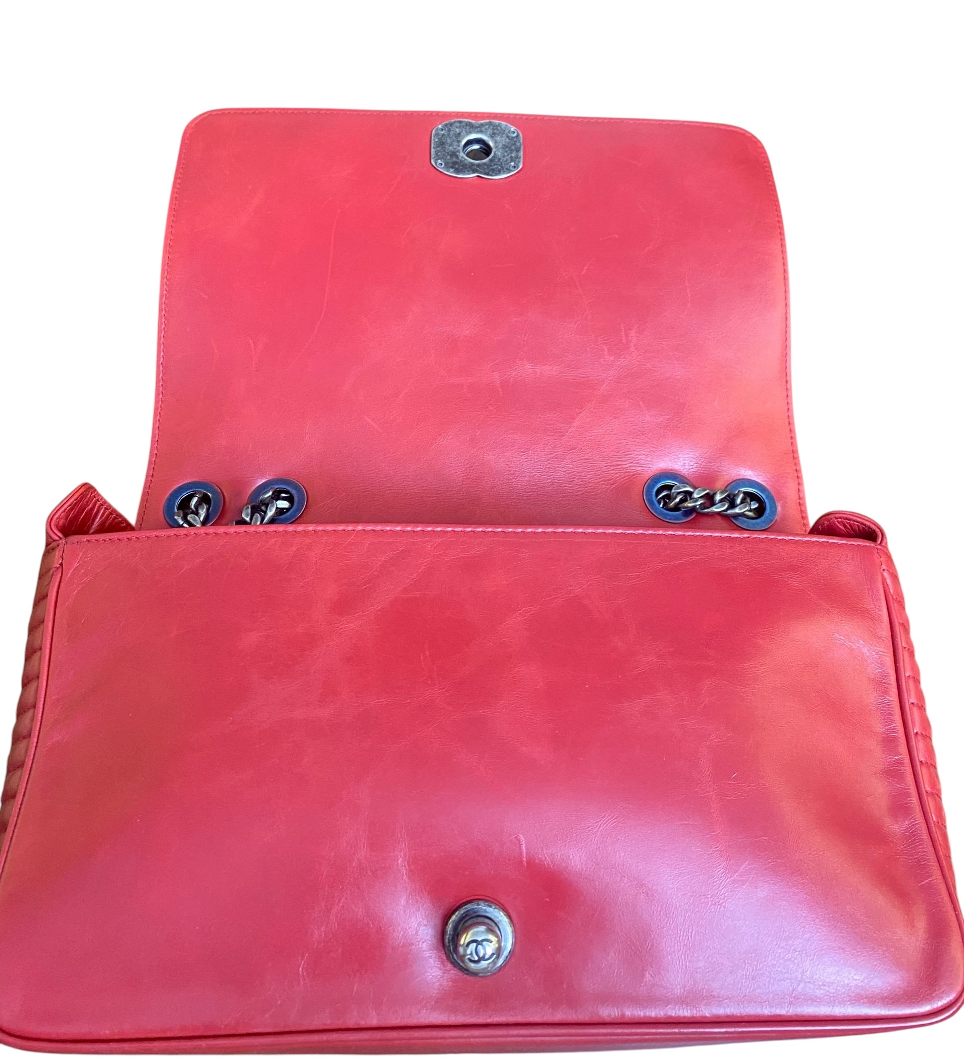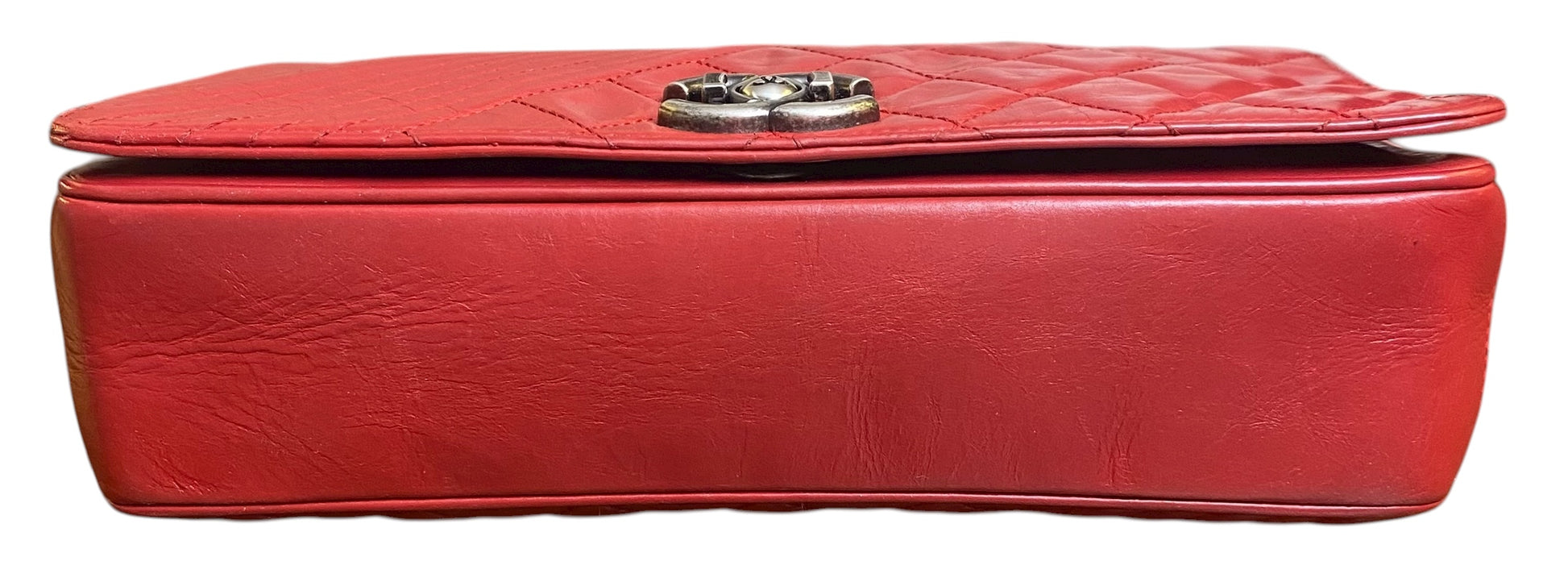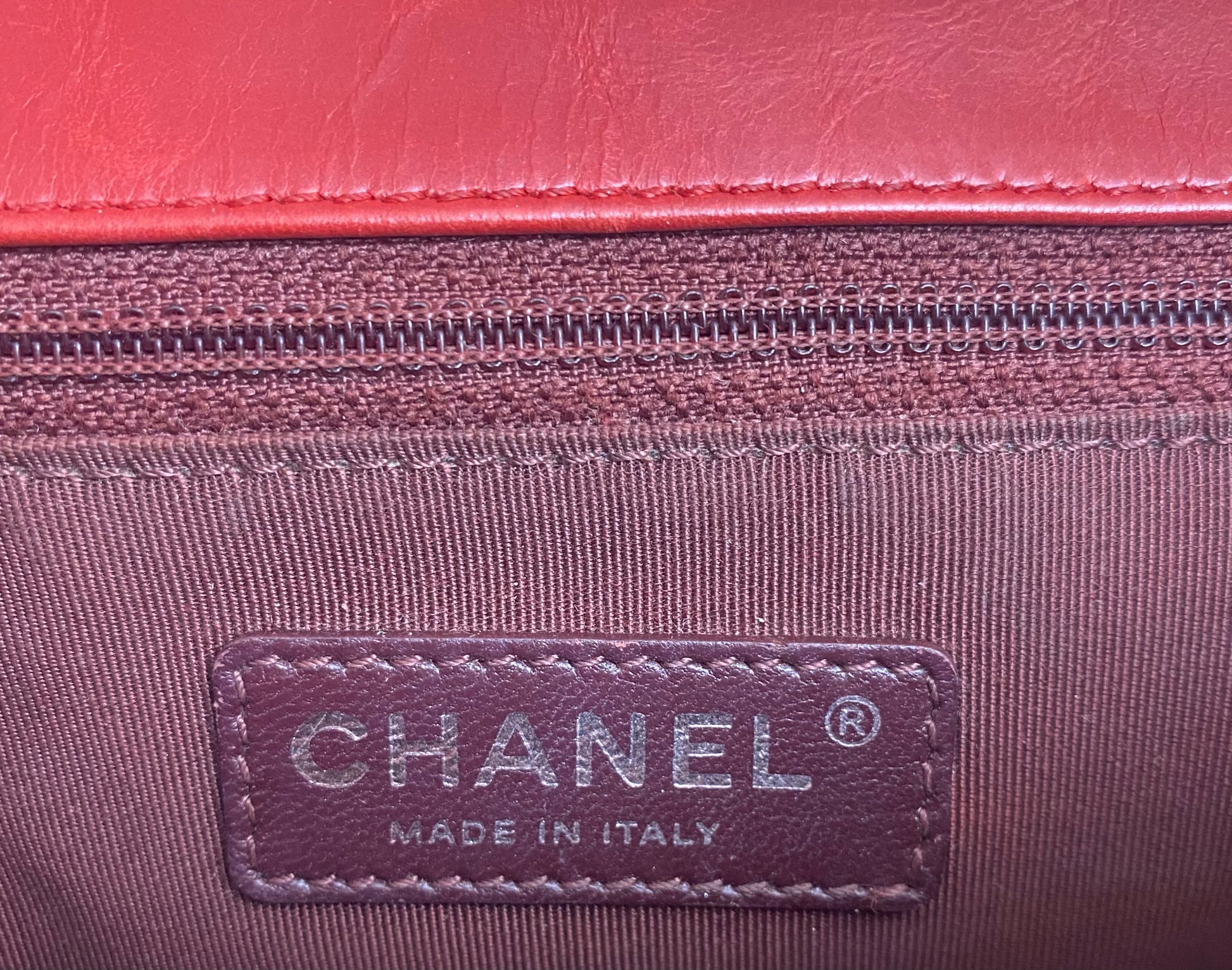 Chanel Red Quilted Glazed Aged Calfskin Leather Medium Coco Boy Flap Bag