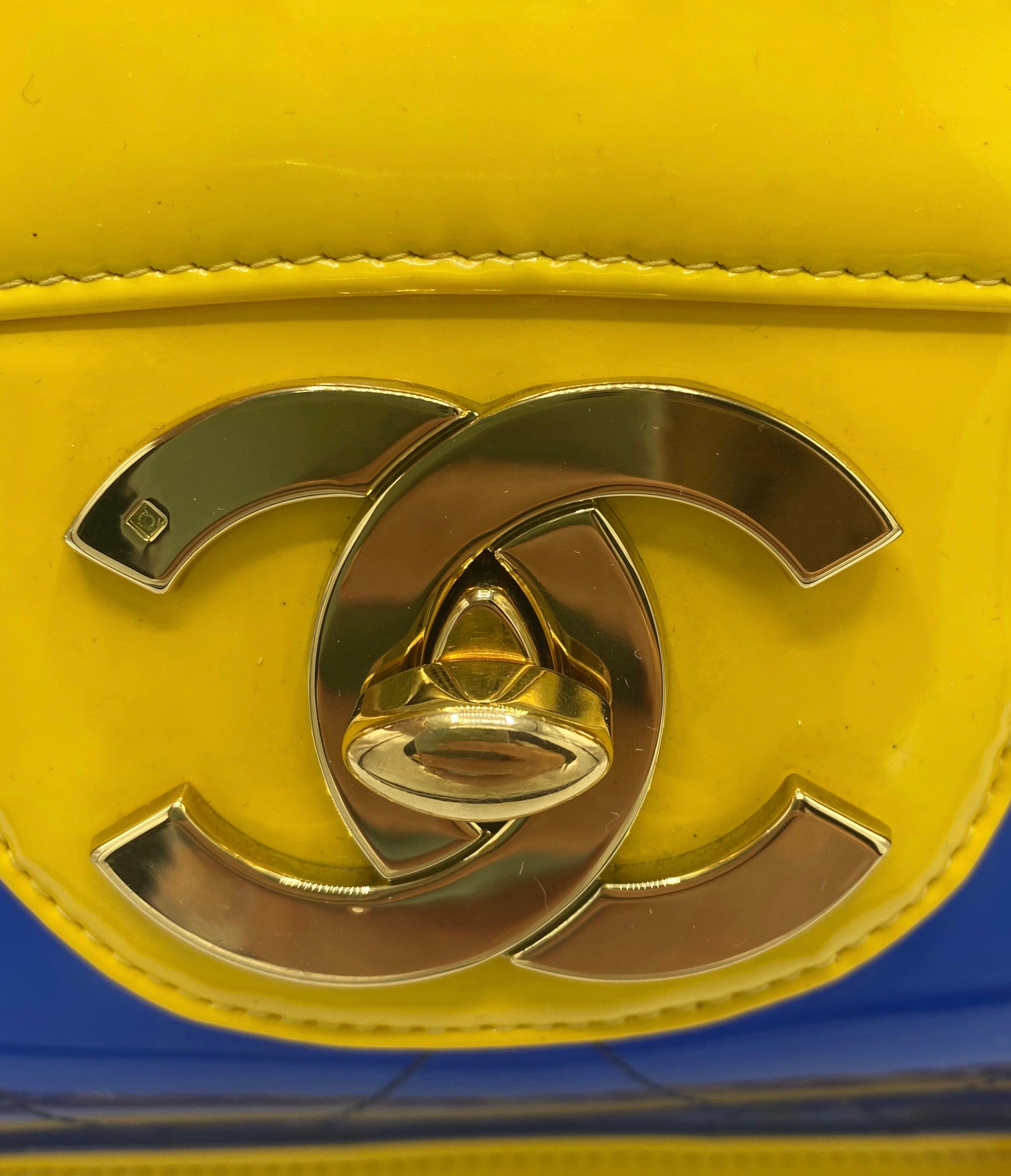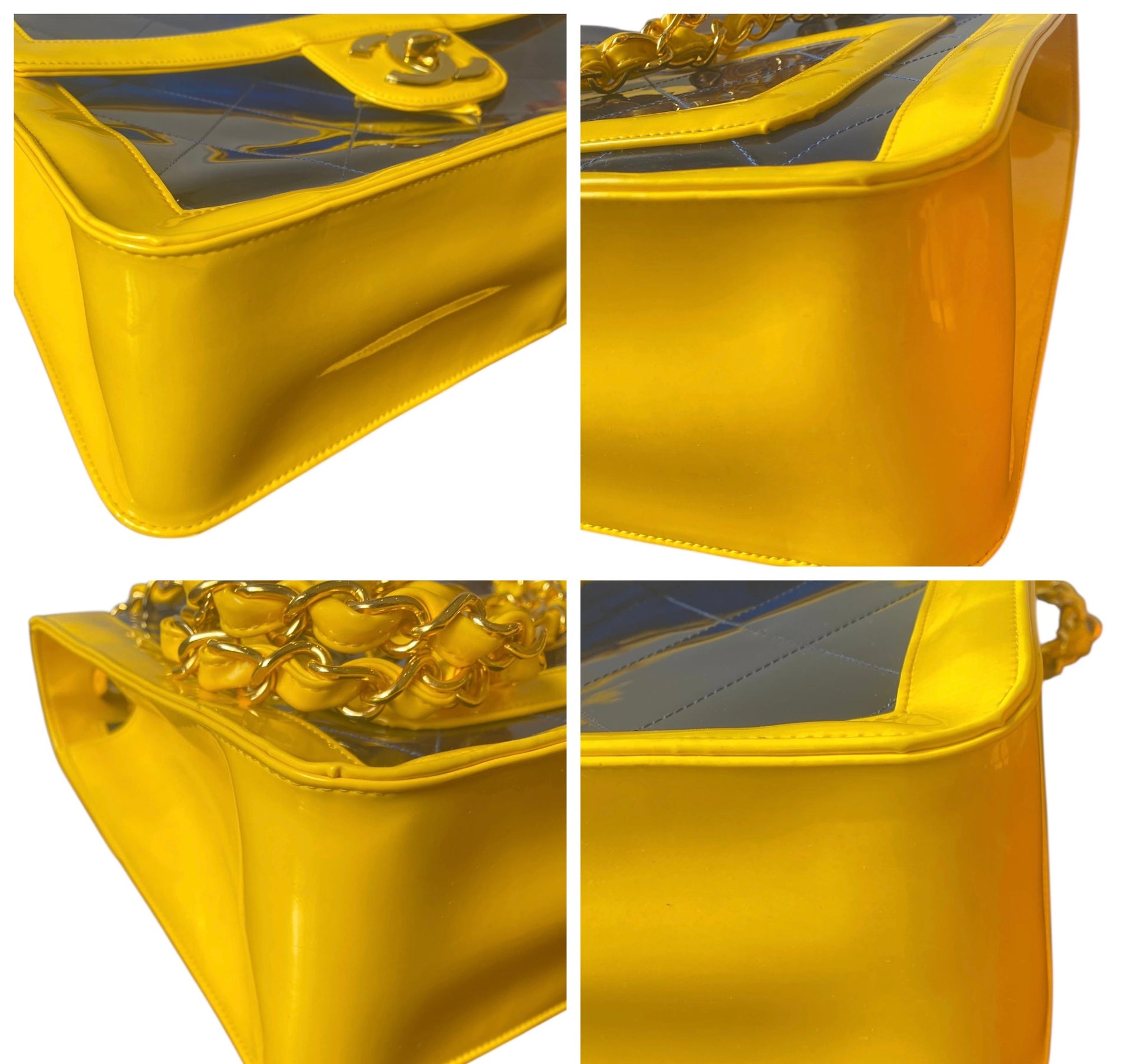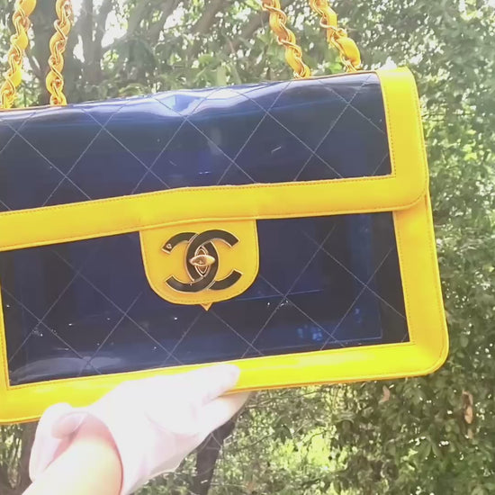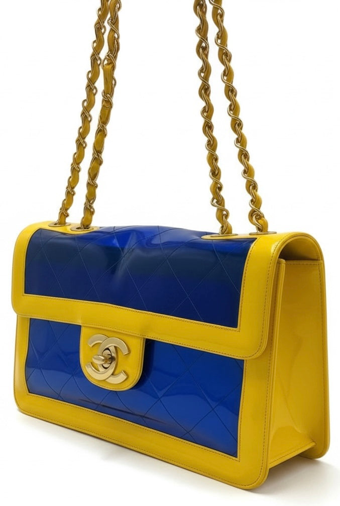 Chanel Ultra Rare 1995 Barbie Collection Yellow Blue Maxi PVC Vinyl Patent Flap Bag