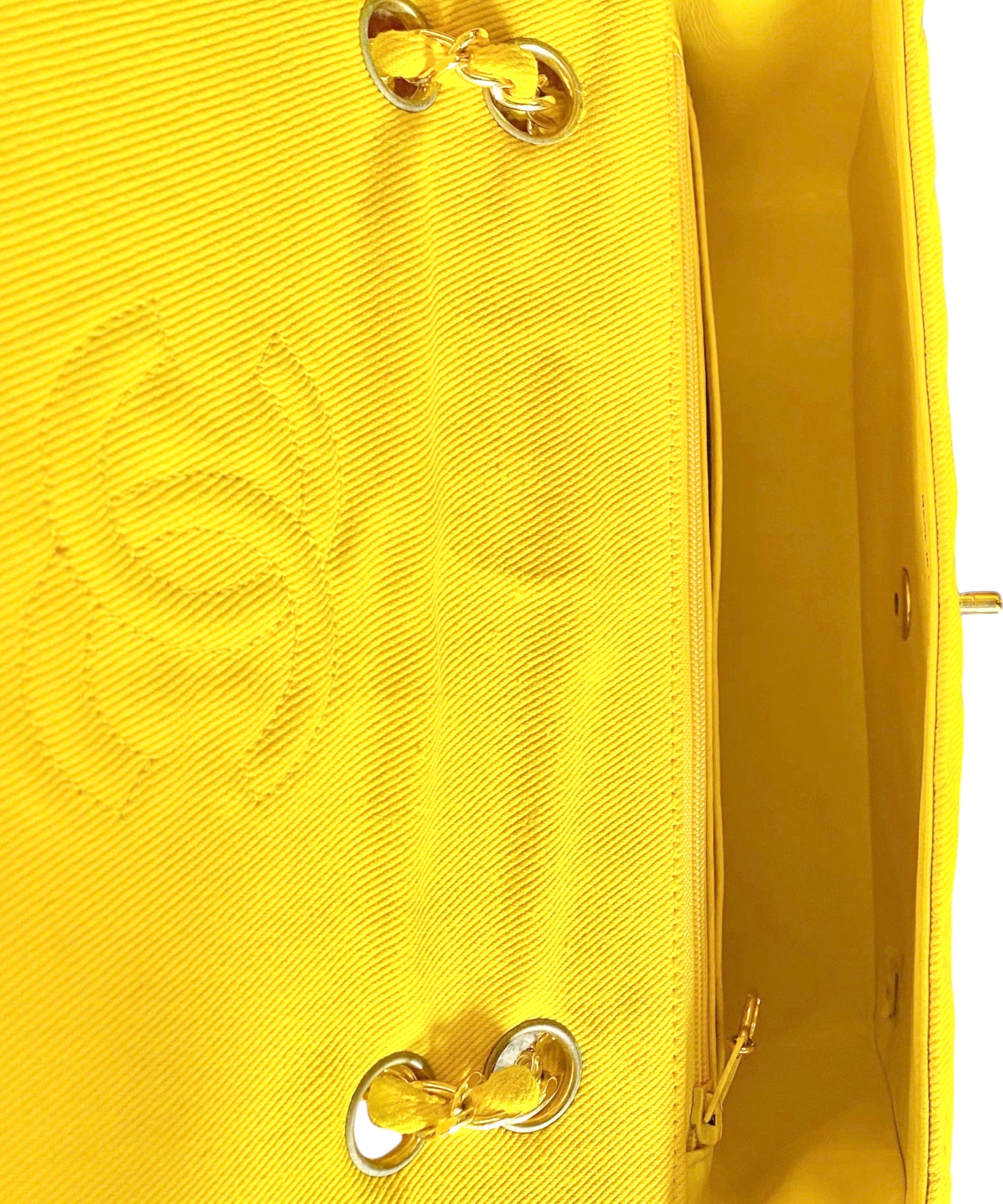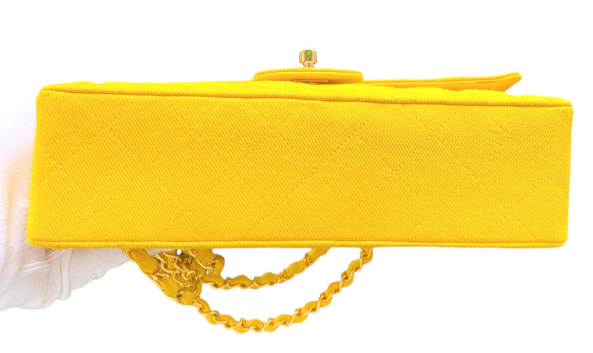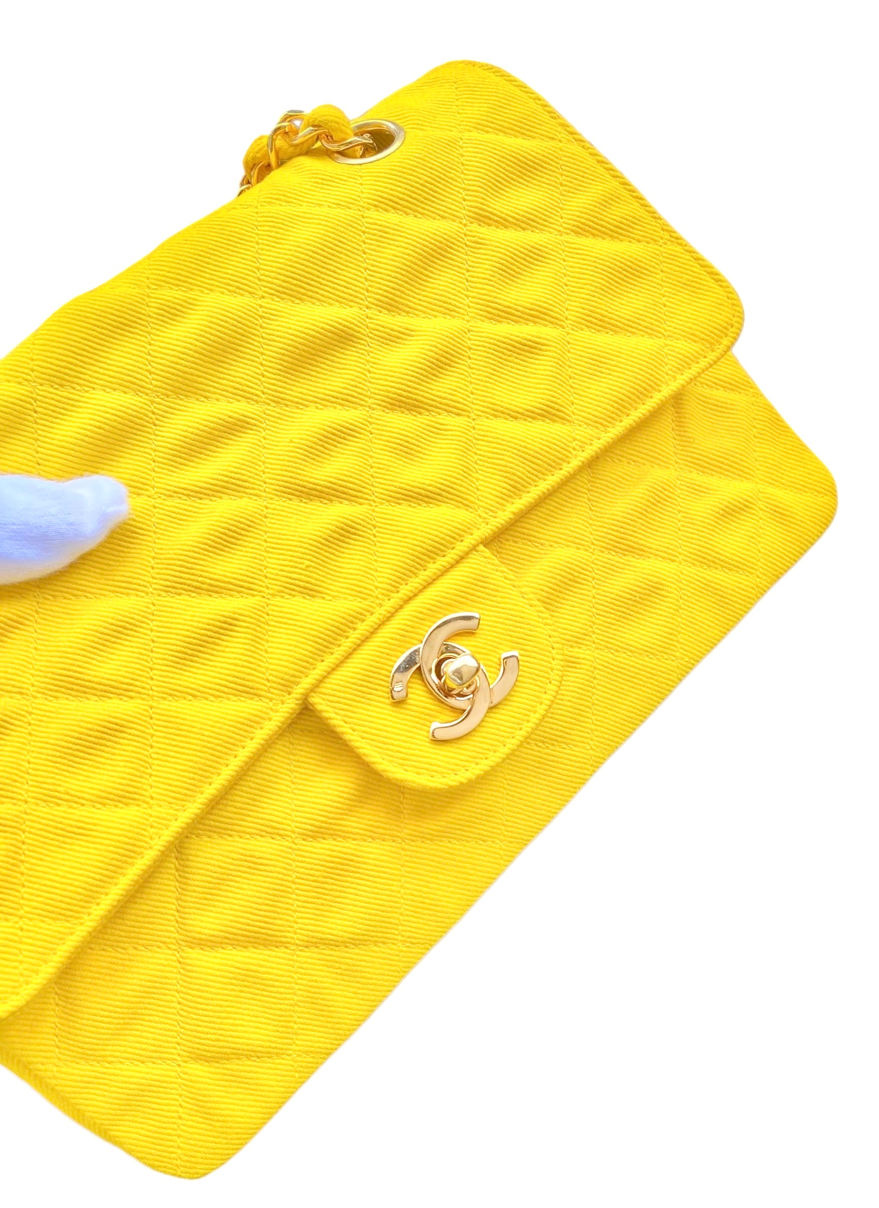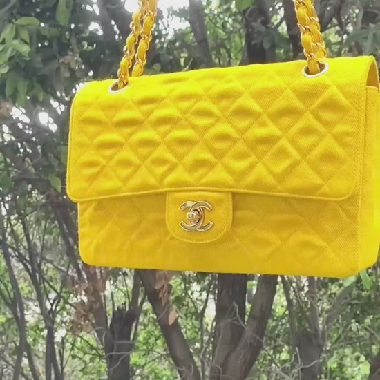 Vintage Ultra Rare Chanel Medium Sunshine Yellow Denim Classic Flap Bag Shiny Gold 24k Plated Hardware