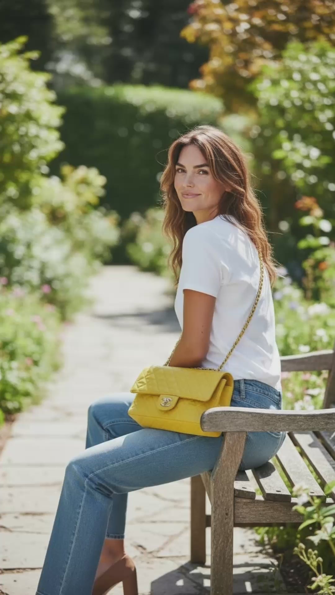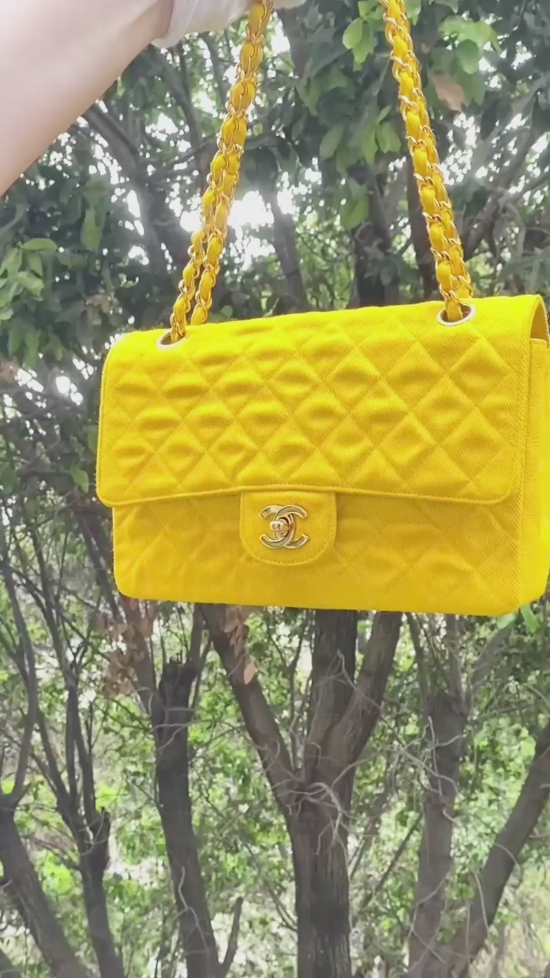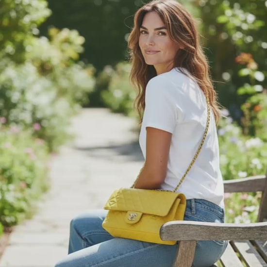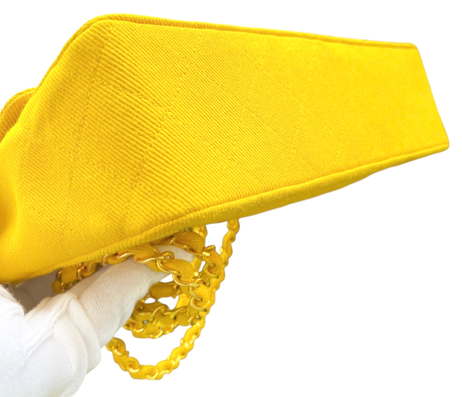 Vintage Ultra Rare Chanel Medium Sunshine Yellow Denim Classic Flap Bag Shiny Gold 24k Plated Hardware