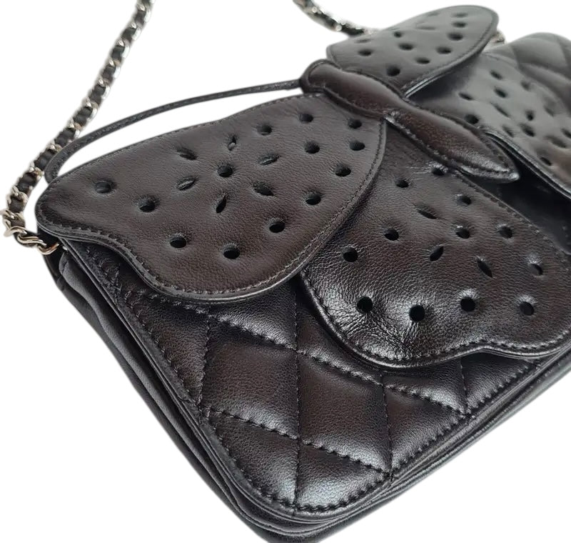 Rare Chanel 2011 Lambskin Black Butterfly Ornament Clutch Crossbody Flap Bag