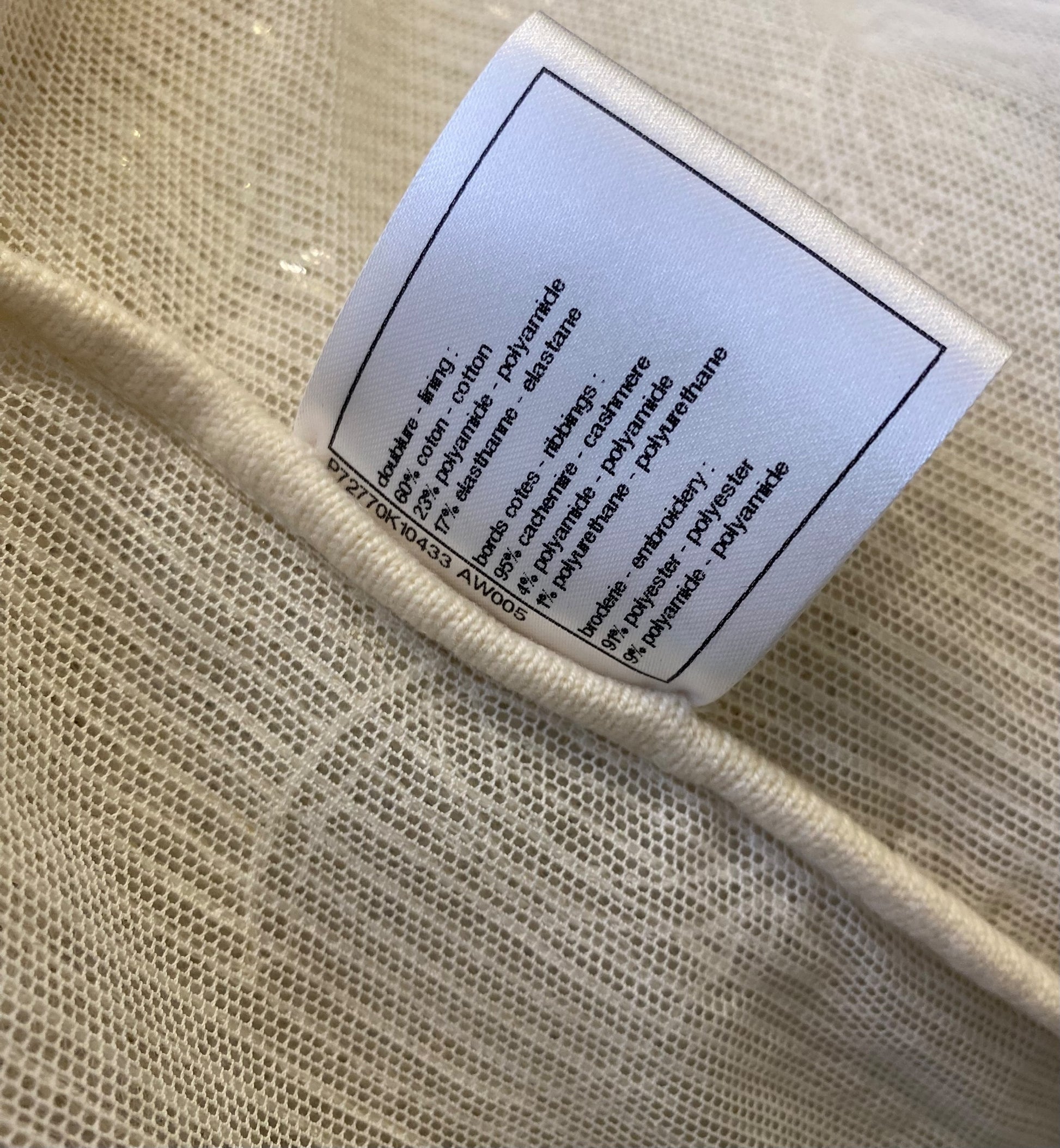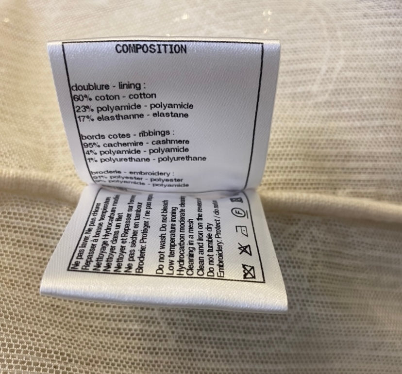 This will Light Up Any Room with its Sparky iridescent ALL over CC Logos, 10 CC Crystal Enamel Buttons, 4 Large Patch Pockets Still Sewn Shut. Super Soft Cream Cashmere Trim. Can be worn as a Vest, Mini Dress, or Cardigan. So Gorgeous and Versatile.