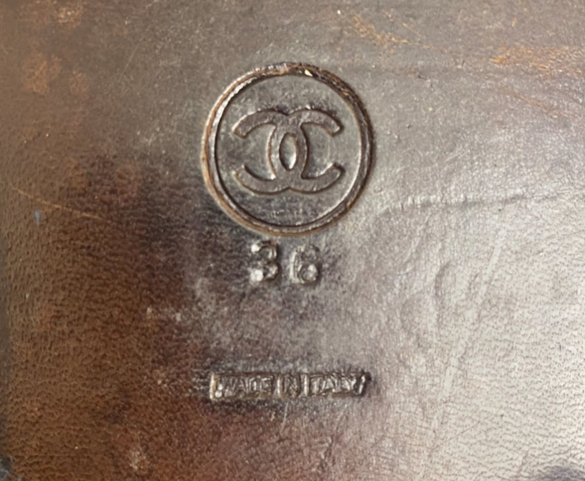 Rare Vintage Chanel 90s Claudia Schiffer Black Leather CC Riding Boots EU 36 (fits 37)