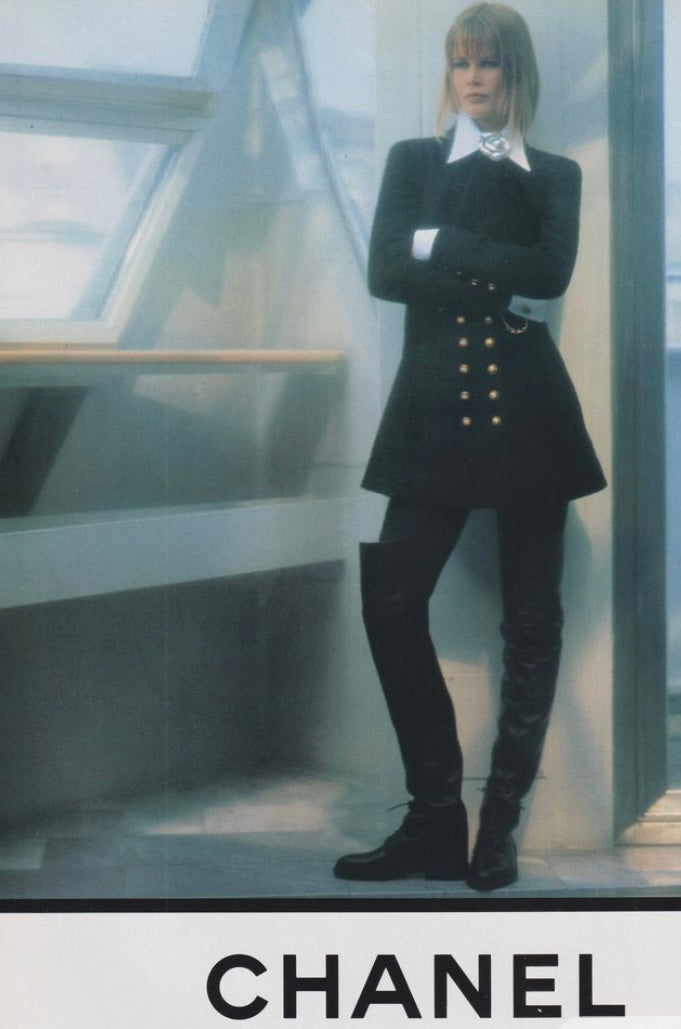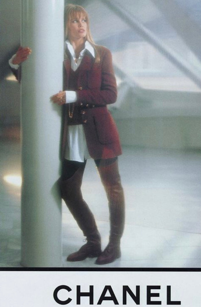 Collectors Item Alert! Chanel Over The Knee, Thigh High Riding Boots. From the 1990 AW Autumn Winter Karl Lagerfeld Collection, as seen on the 1990’s Claudia Schiffer editorial and Campaign Ad.